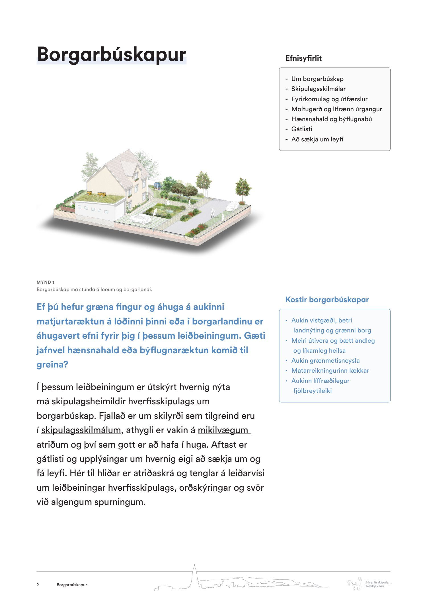 Hverfisskipulag, leiðeiningar - Borgarbúskapur