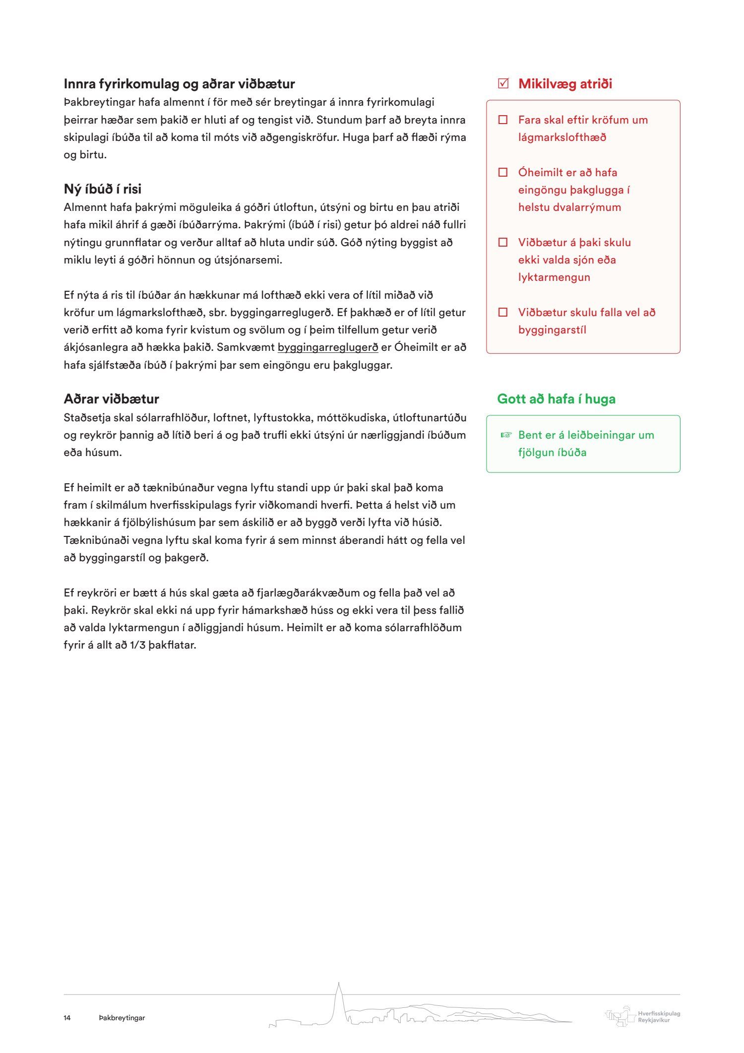 Hverfisskipulag, leiðeiningar - Þakbreytingar