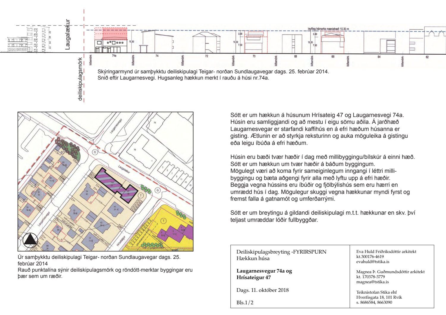 Lögð fram fyrirspurn Magneu Þóru Guðmundsdóttur dags. 15. október 2018 um hækkun á húsunum nr. 47 við Hrísateig og 74A við Laugarnesvegi um tvær hæðir, samkvæmt tillögu