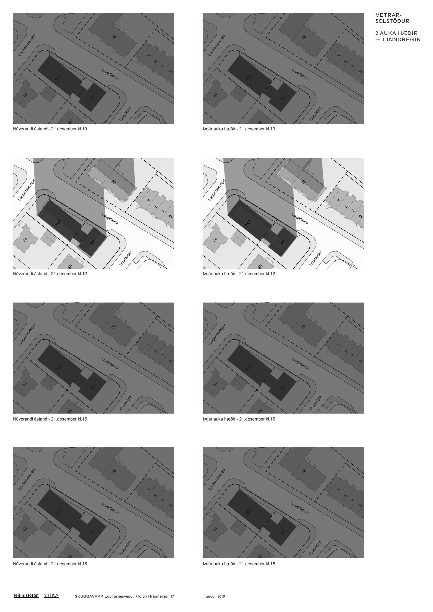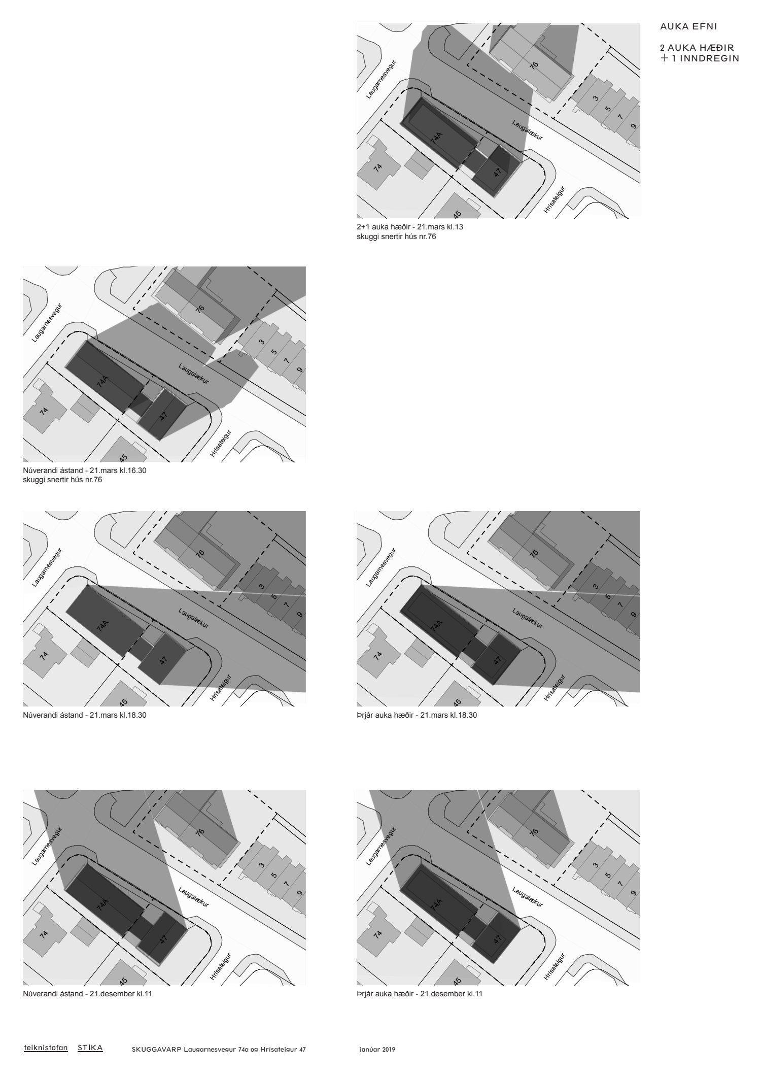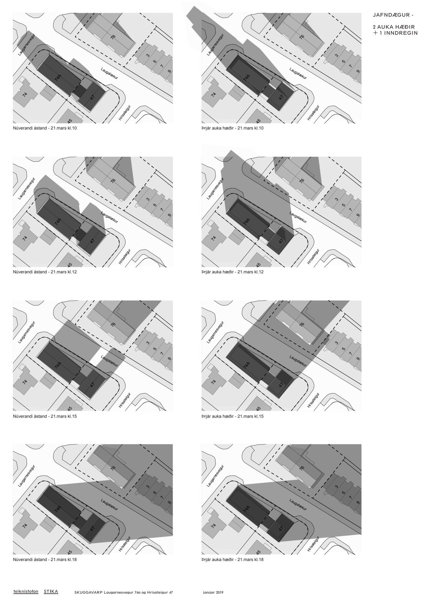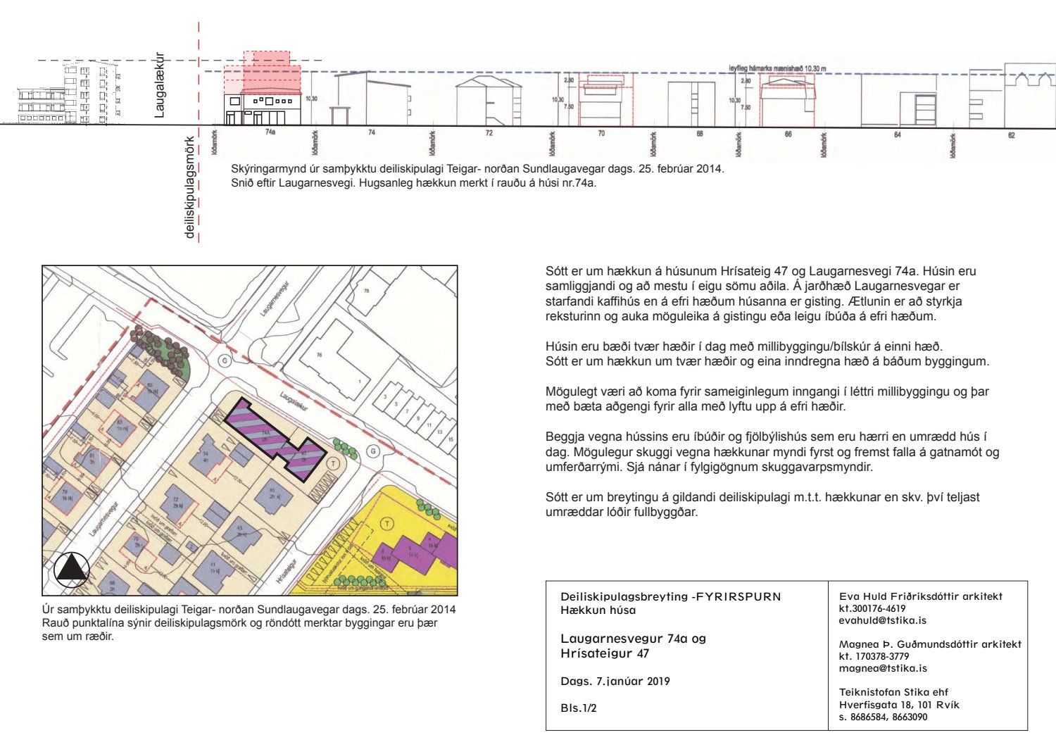 dags. 7. janúar 2019 og skuggavarpi dags. janúar 2019 um hækkun húsanna um tvær hæðir og eina inndregna hæð. Einnig er lögð fram umsögn skipulagsfulltrúa dags. 1. febrúar 2019.