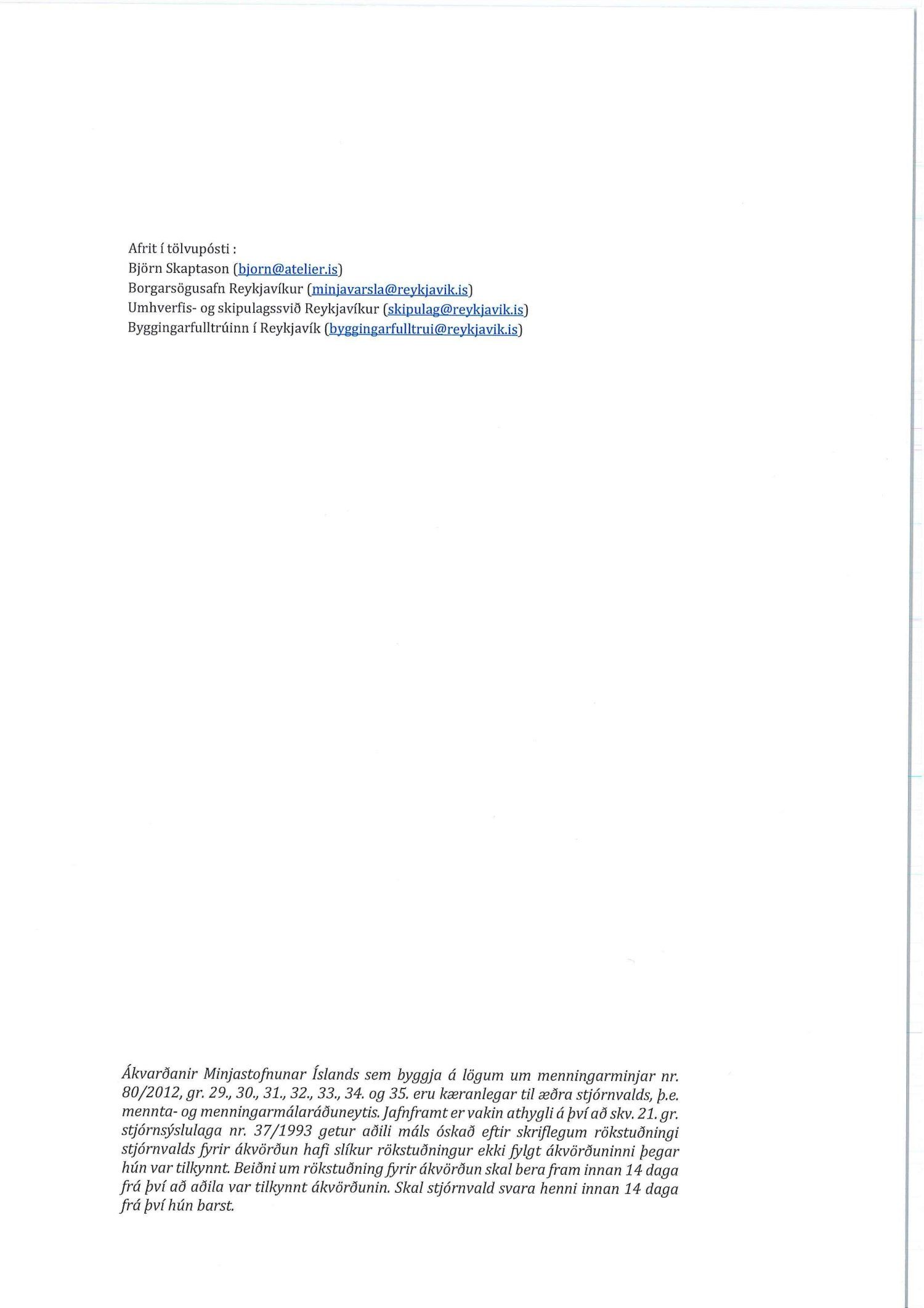 dags. 24. október 2018. Einnig er lögð fram umsögn Minjastofnunar Íslands dags. 19. júní 2018.