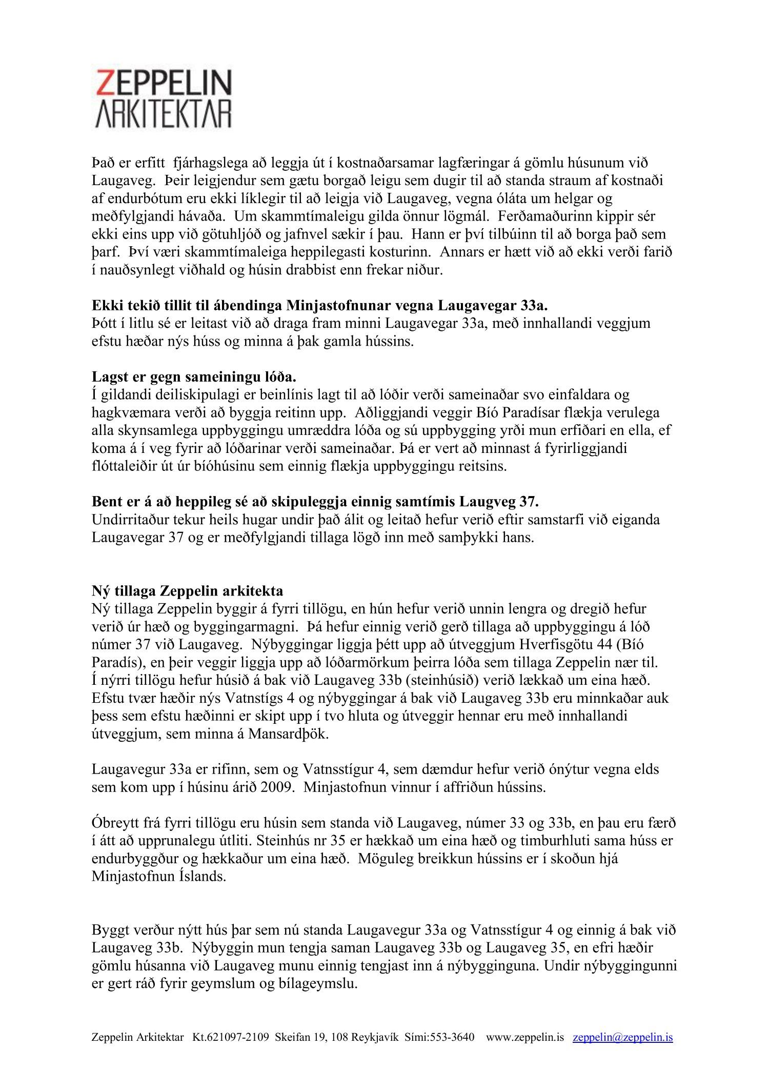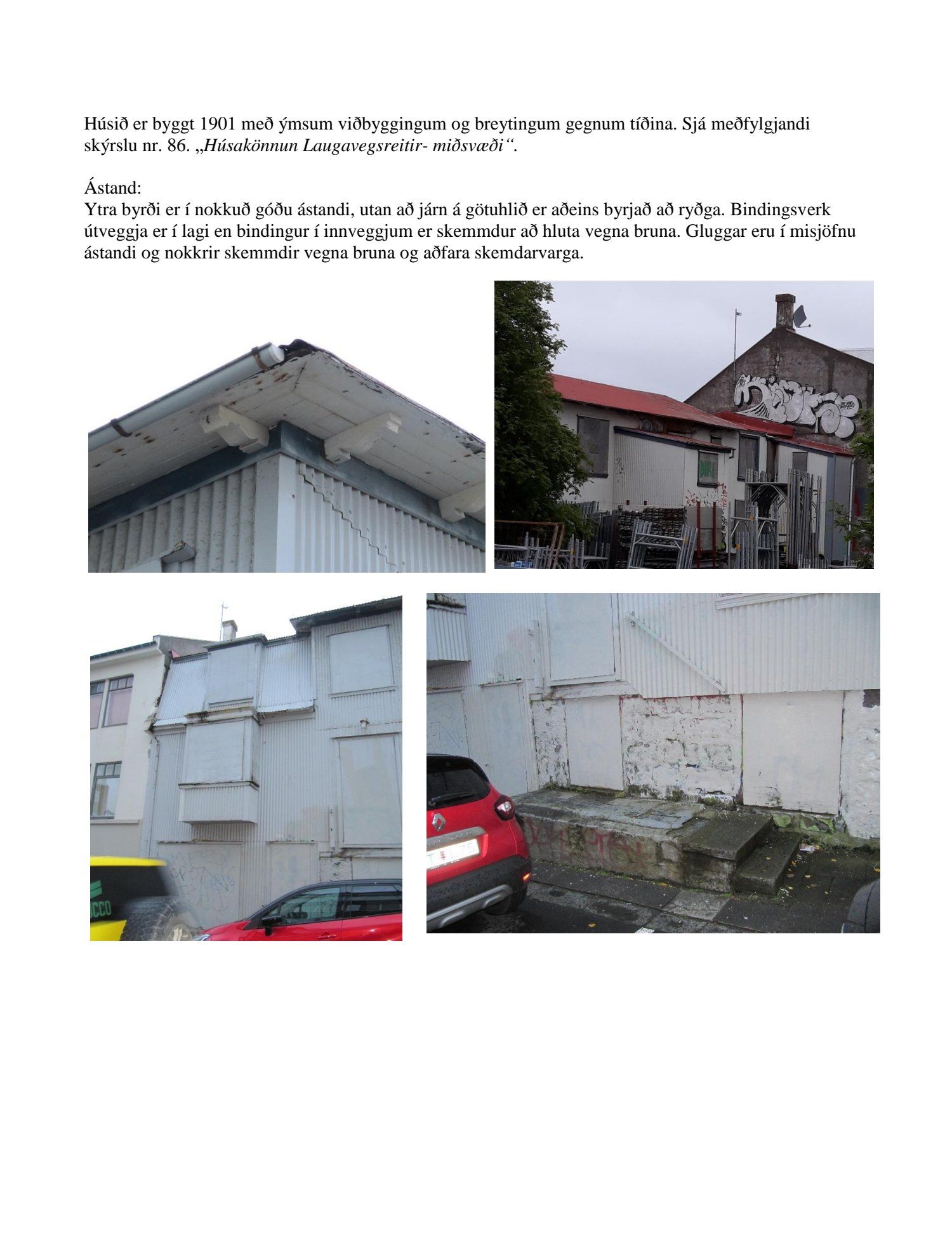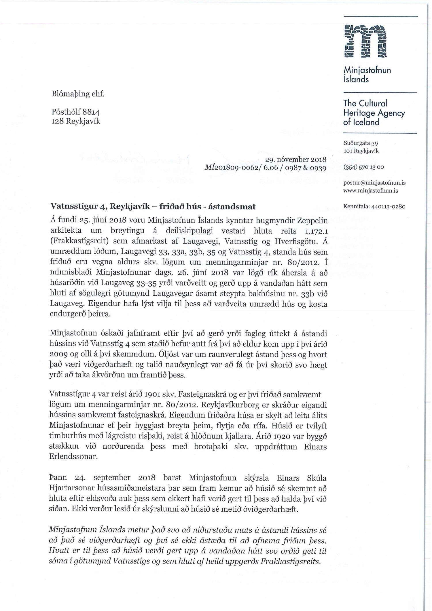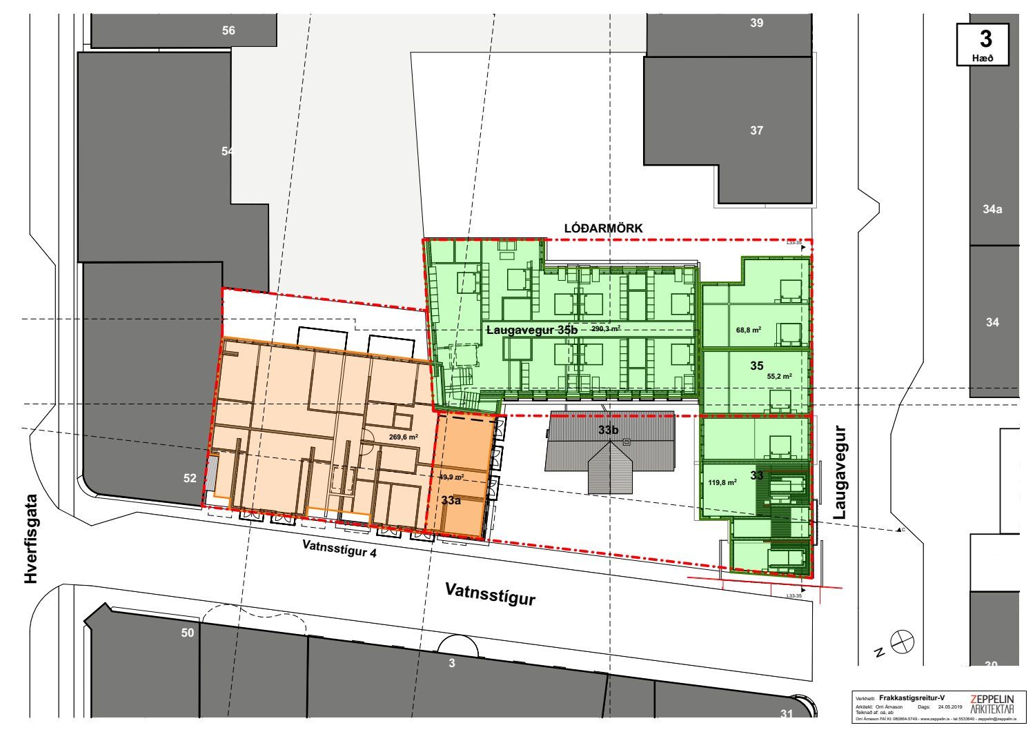dags. 13. nóvember 2018 ásamt greinargerð dags. 9. nóvember 2018 um breytingu á deiliskipulagi reits 1.172.1, Frakkastígsreits, vegna lóðanna nr. 33, 33A, 33B, 35 og 37 við Laugaveg og 4 við Vatnsstíg sem felst í að hús að Laugavegi 33 og 33B verði færð í átt að upprunalegu útliti, hús að Laugavegi 35 verði hækkað um eina hæð og timburhluti sama húss verði endurbyggður og hækkaður um eina hæð, hús að Laugavegi 33A og Vatnsstígi 4 verði rifin og ný byggð í þeirra stað, uppbyggingu að Laugavegi 37 o.fl., samkvæmt tillögu