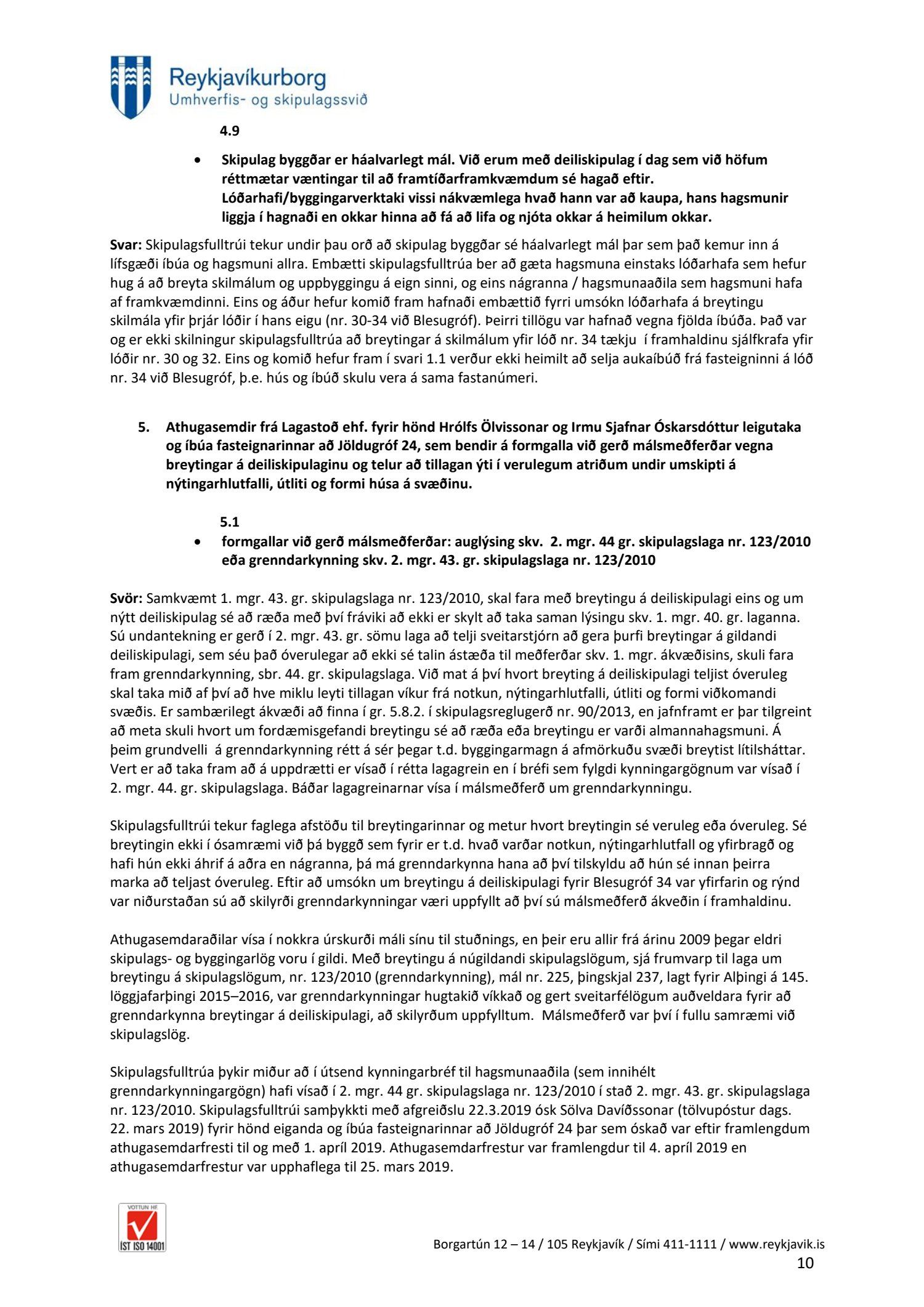 Samþykkt sbr. 1.mgr. 42 gr. skipulagslaga nr. 123/2010, með þeim breytingum sem koma fram í umsögn skipulagsfulltrúa dags. 1. nóvember 2019, með fjórum atkvæðum fulltrúa Pírata, fulltrúa Viðreisnar og fulltrúa Samfylkingarinnar. Fulltrúar Sjálfstæðisflokksins sitja hjá.