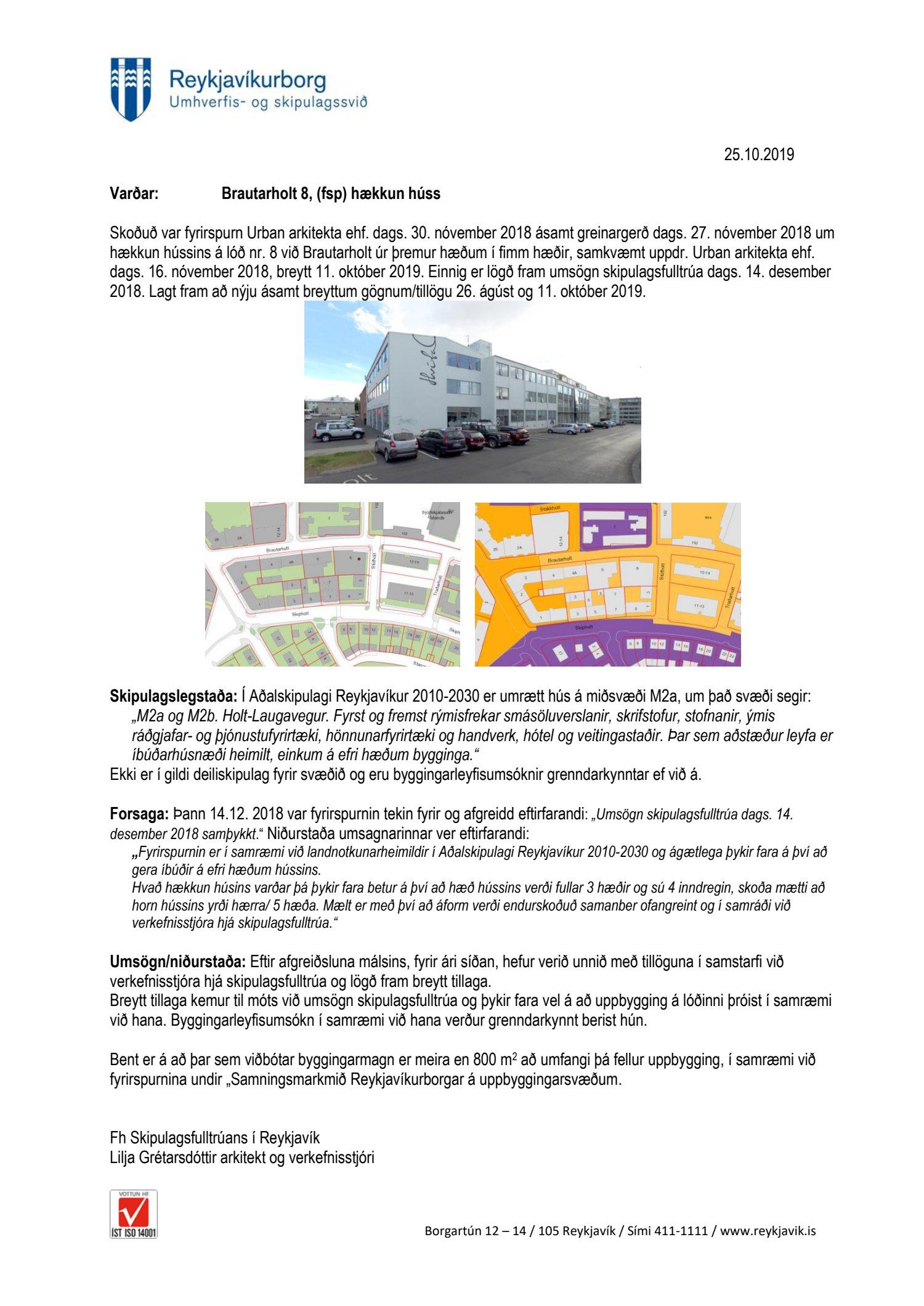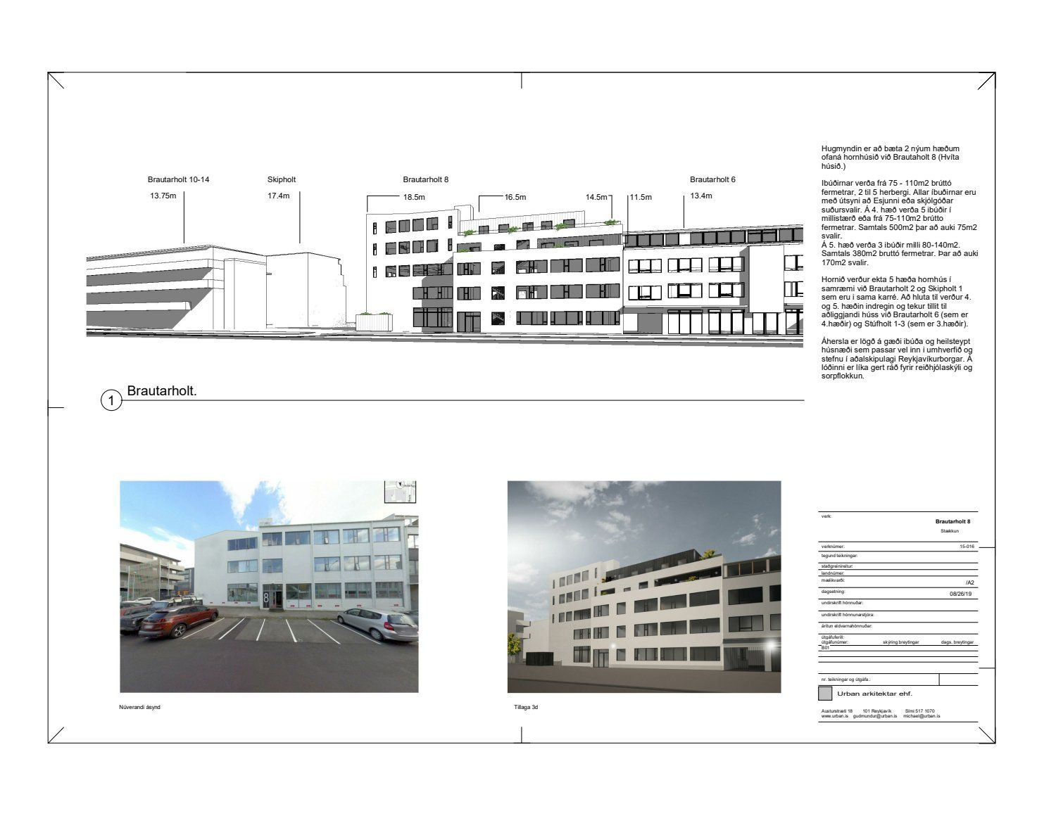 dags. 30. nóvember 2018 ásamt greinargerð dags. 27. nóvember 2018 um hækkun hússins á lóð nr. 8 við Brautarholt úr þremur hæðum í fimm hæðir, samkvæmt uppdr.