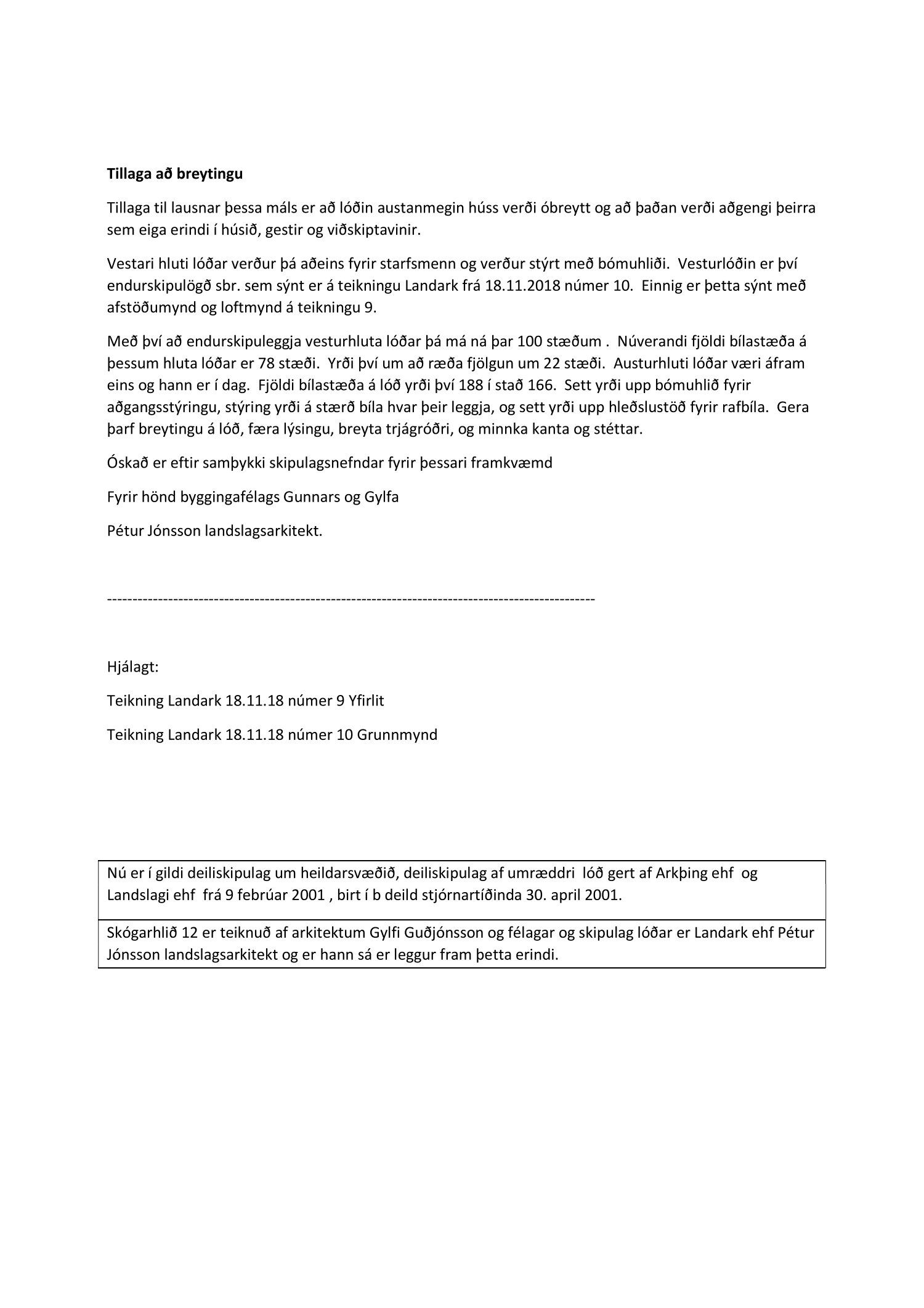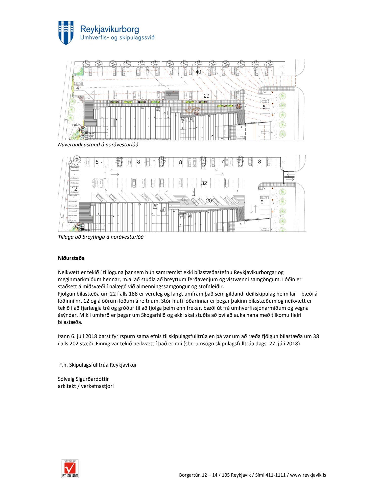 Fulltrúar Sjálfstæðisflokksins Eyþór Laxdal Arnalds, Hildur Björnsdóttir og Valgerður Sigurðardóttir sitja hjá við afgreiðslu málsins og bóka: „Lóðin er stór og ætti að geta annað bílastæðum vel. Ljóst er að eitthvað skortir upp á samtal milli borgarinnar og húseigenda. Aðgangsstýring og samgöngustefna gætu verið hluti af lausninni.”