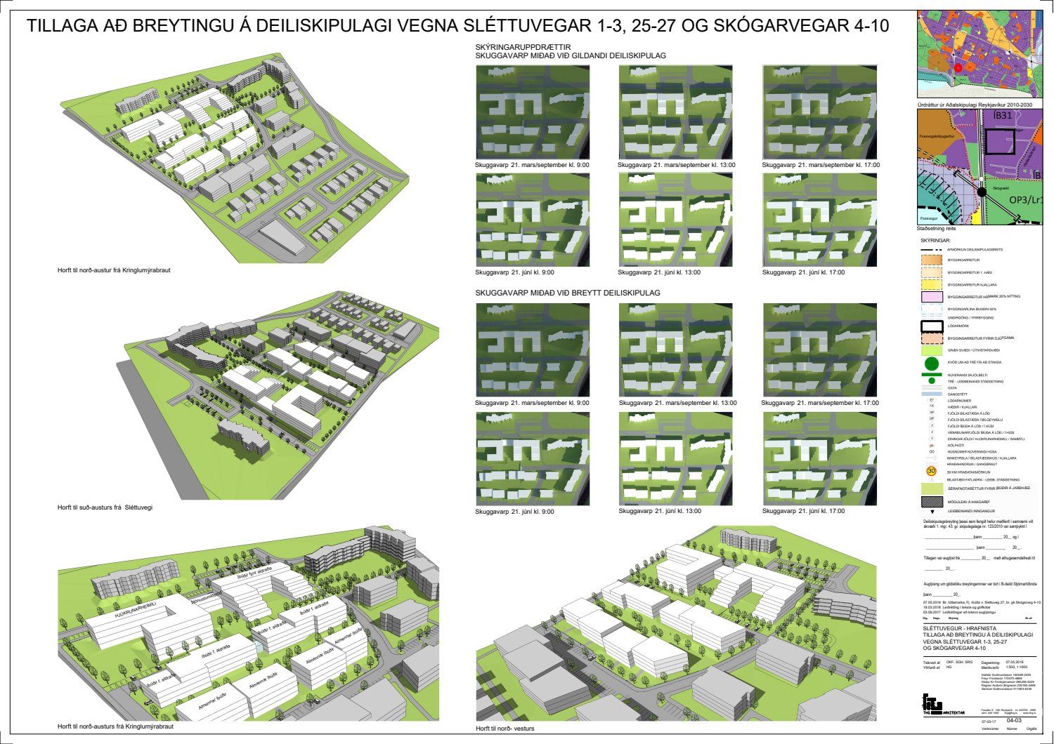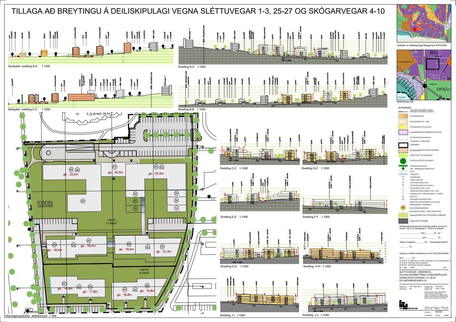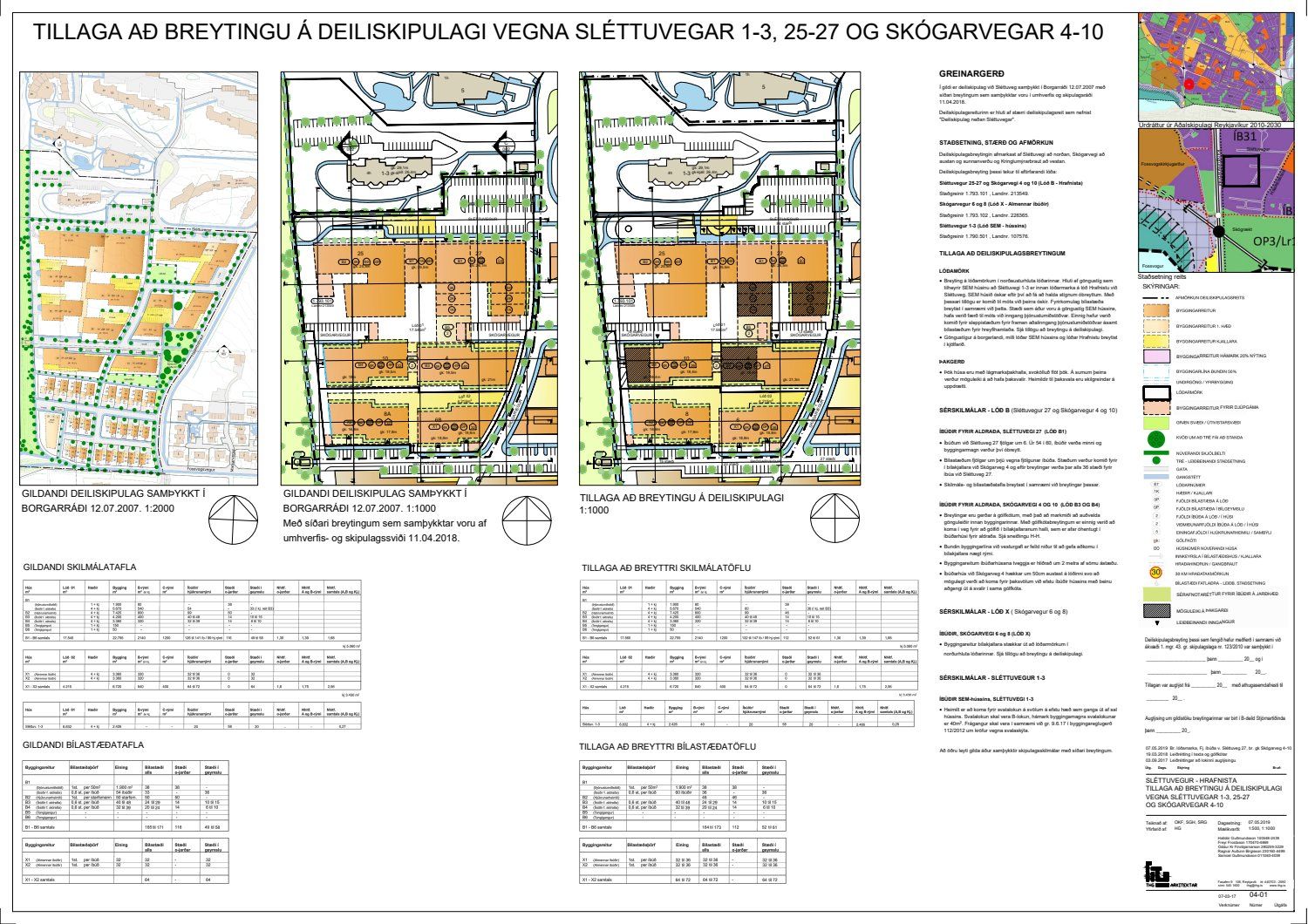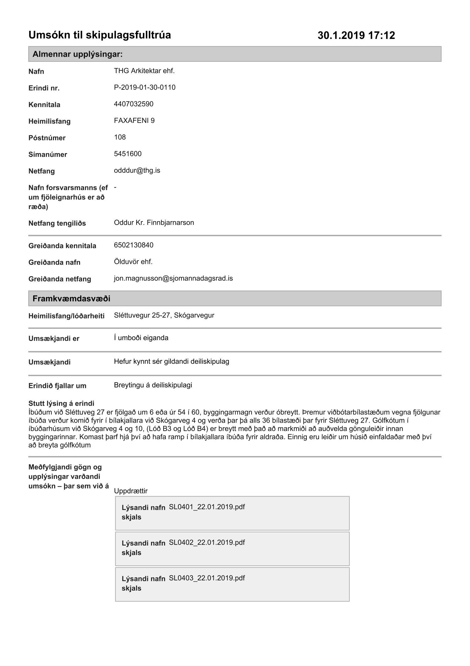 dags. 30. janúar 2019 varðandi breytingu á deiliskipulagi fyrir lóðina nr. 25-27 við Sléttuveg og 4-10 við Skógarveg. Í breytingunni felst m.a. fjölgun íbúða við Sléttuveg 27 um 6 eða úr 54 í 60, breyting á gólfkóta í íbúðarhúsum við Skógarveg 4 og 10, bundin byggingarlína við vesturgafl er felld niður, breyting á lóðamörkum vegna göngustígs og breyting á fyrirkomulagi bílastæða samkvæmt uppdr.