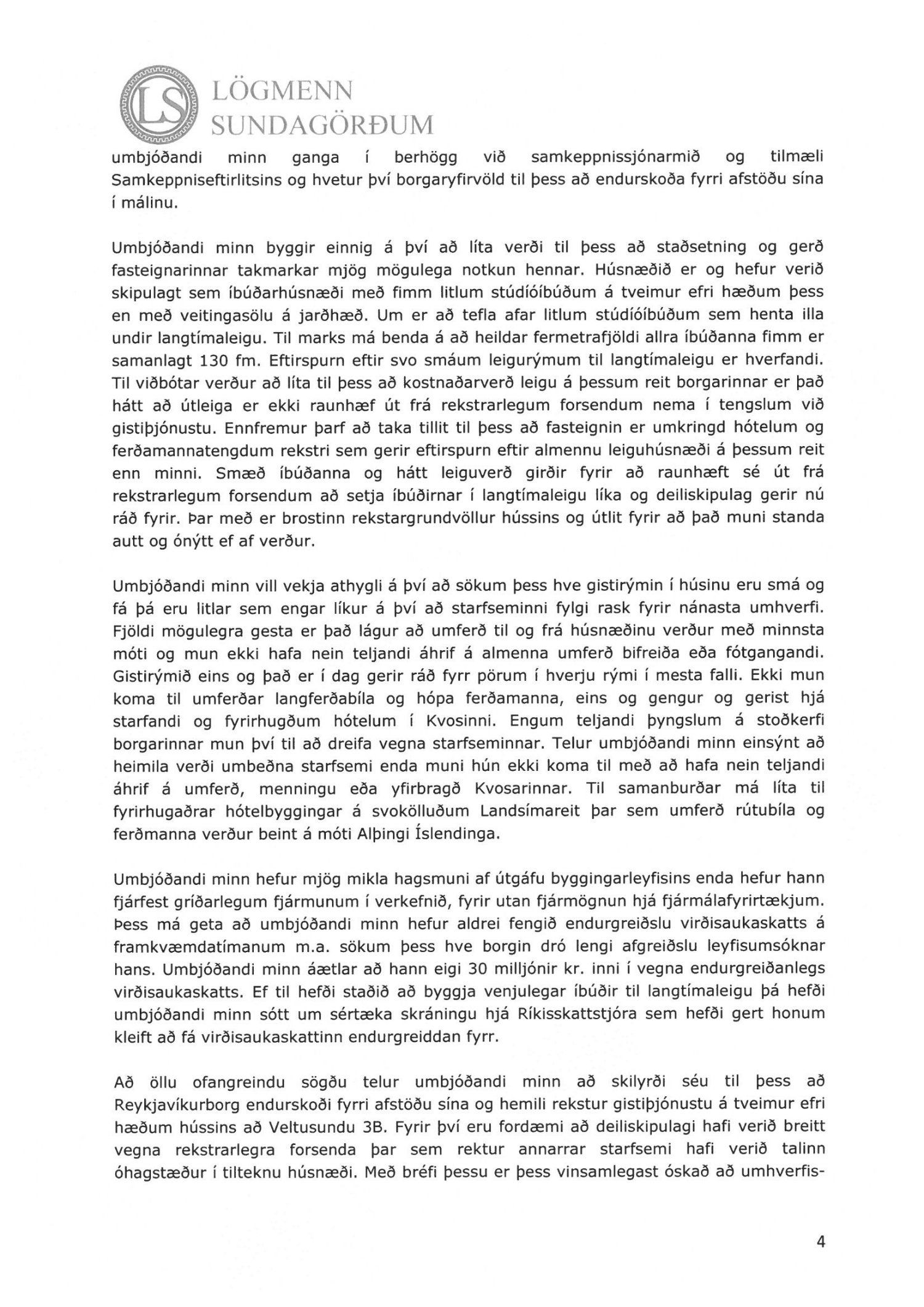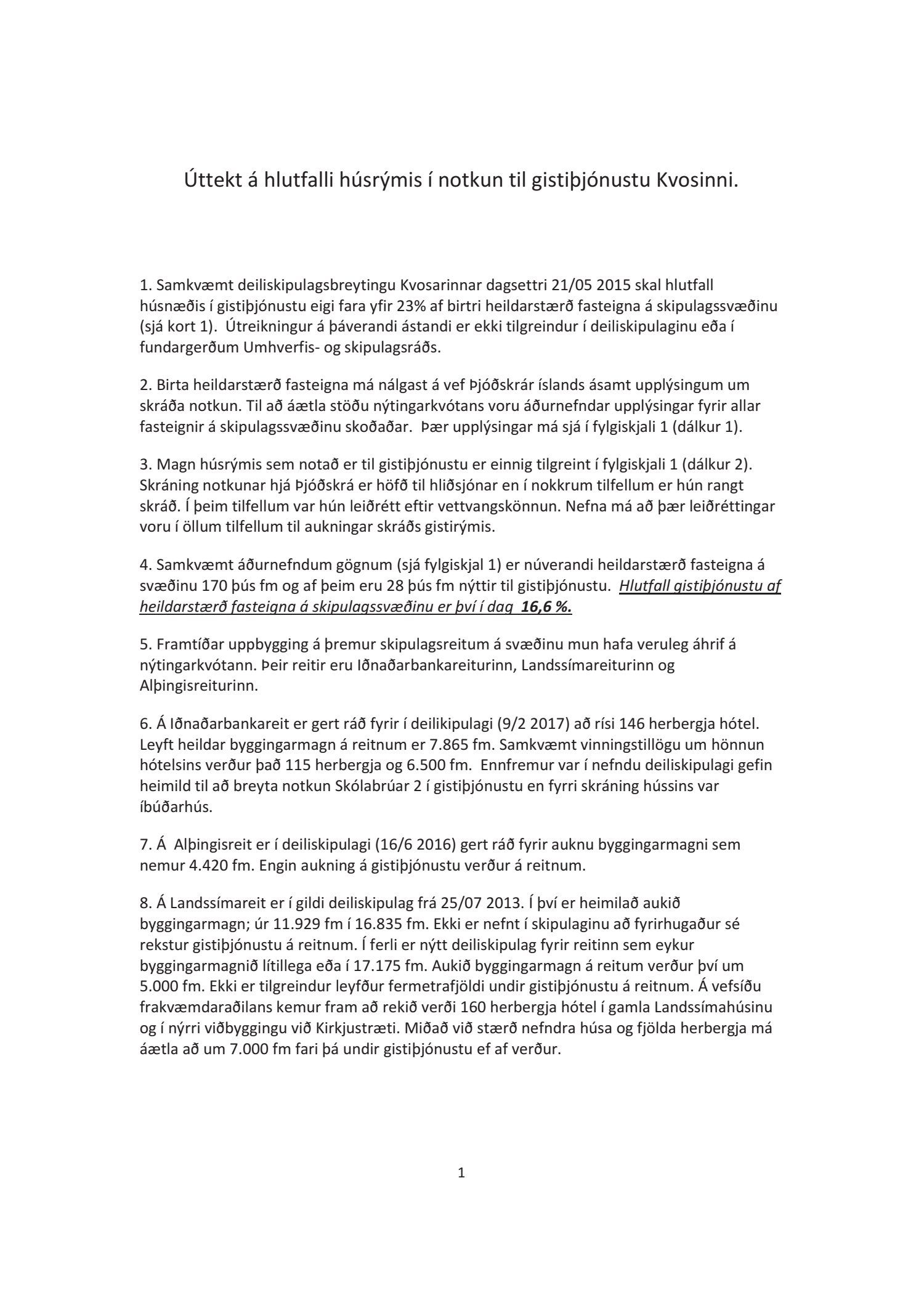 Fulltrúar Samfylkingarinnar, Viðreisnar og Pírata bóka: „Umhverfis og skipulagsráð samþykkti í byrjun árs 2015 ákvæði um að hámark hótel- og gistirýmis í Kvosinni mætti ekki vera meira en 23% af fermetrafjölda húsanna á svæðinu. Það stuðlar að nauðsynlegum fyrirsjáanleika fyrir íbúa, uppbyggingaraðila og atvinnulíf. Mikilvægt er að borgaryfirvöld haldi þeirri stefnu sem þarna var tekin. Við teljum mikilvægara að standa vörð um íbúðir fyrir þá sem hér búa og starfa en að fjölga hótel og gistirýmum.“