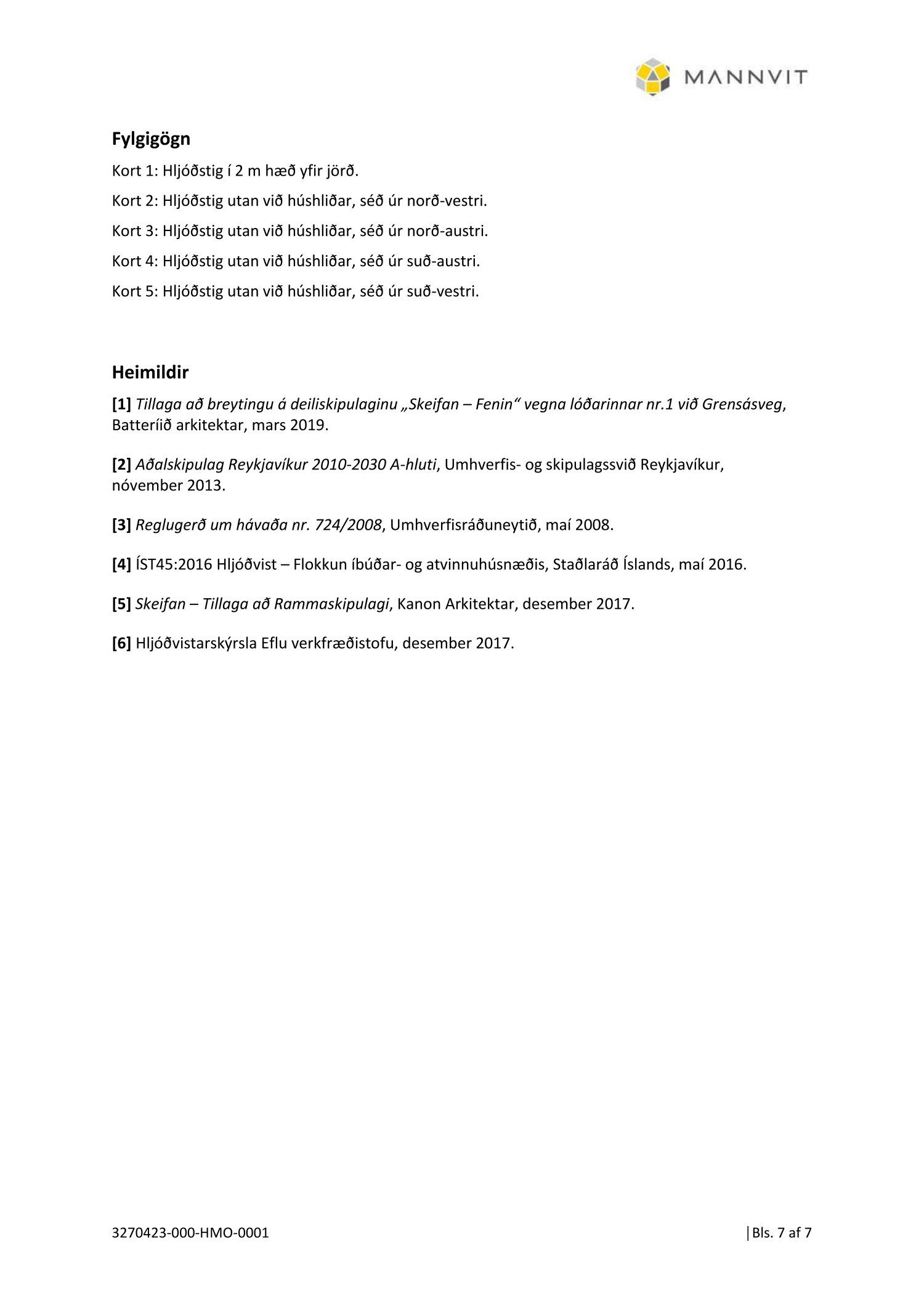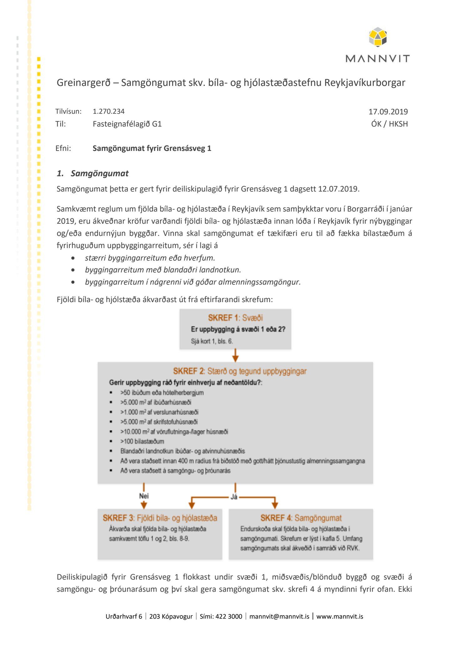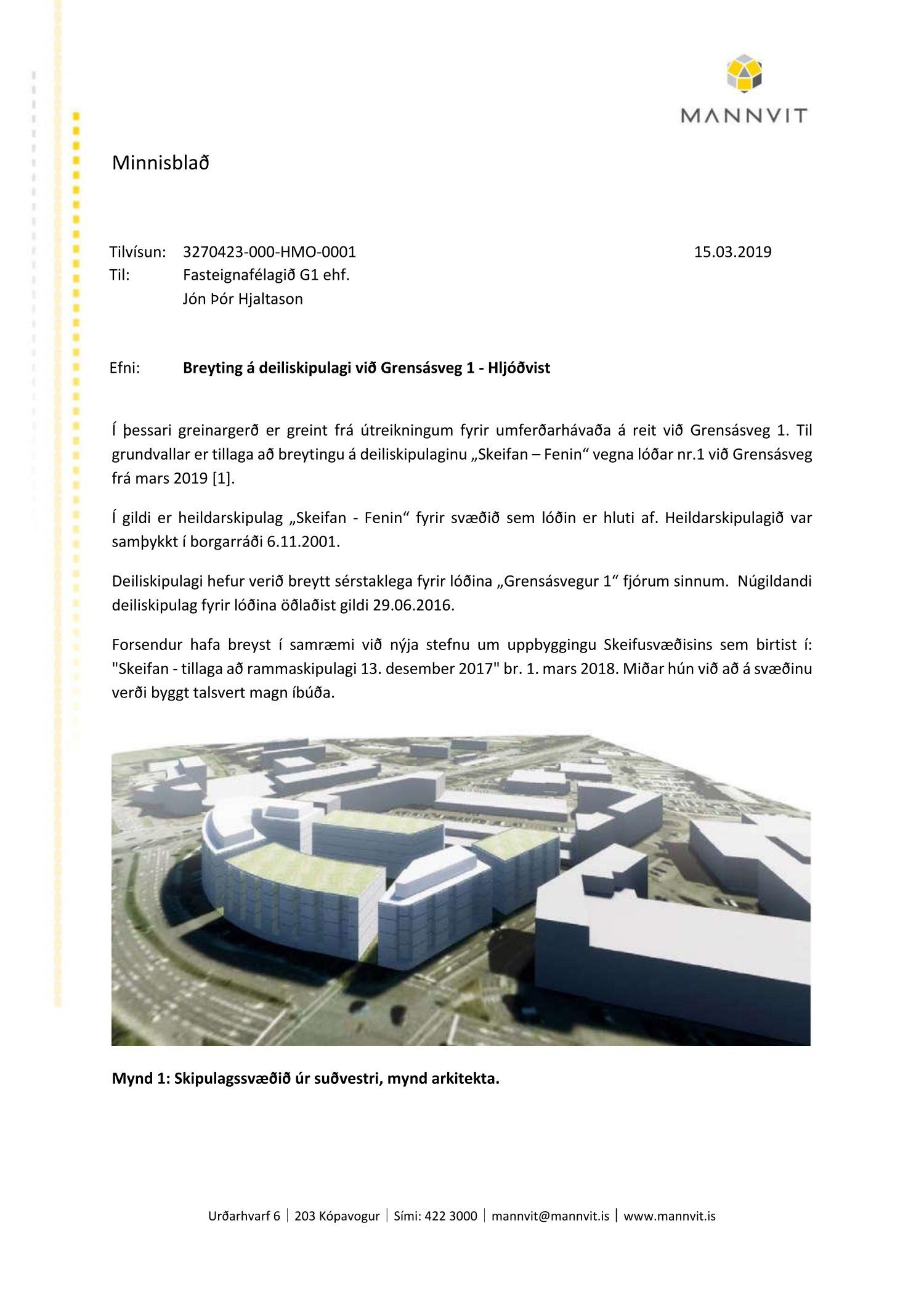 dags. 22. mars 2019, síðast breytt 20.09.2019. Einnig er lagt fram minnisblað Mannvits dags. 15. mars 2019 um hljóðvist og Greinargerð-Samgöngumat Mannvits dags 17. september 2019.