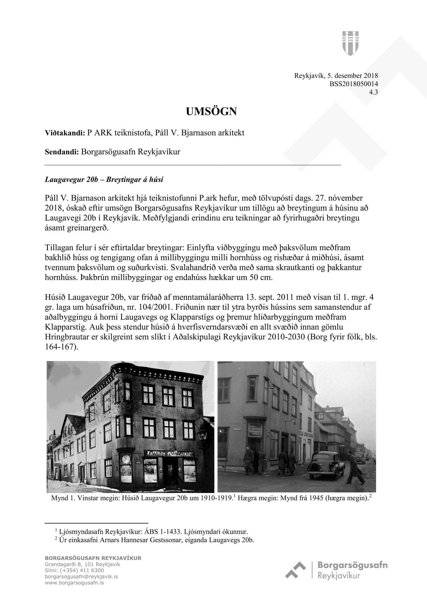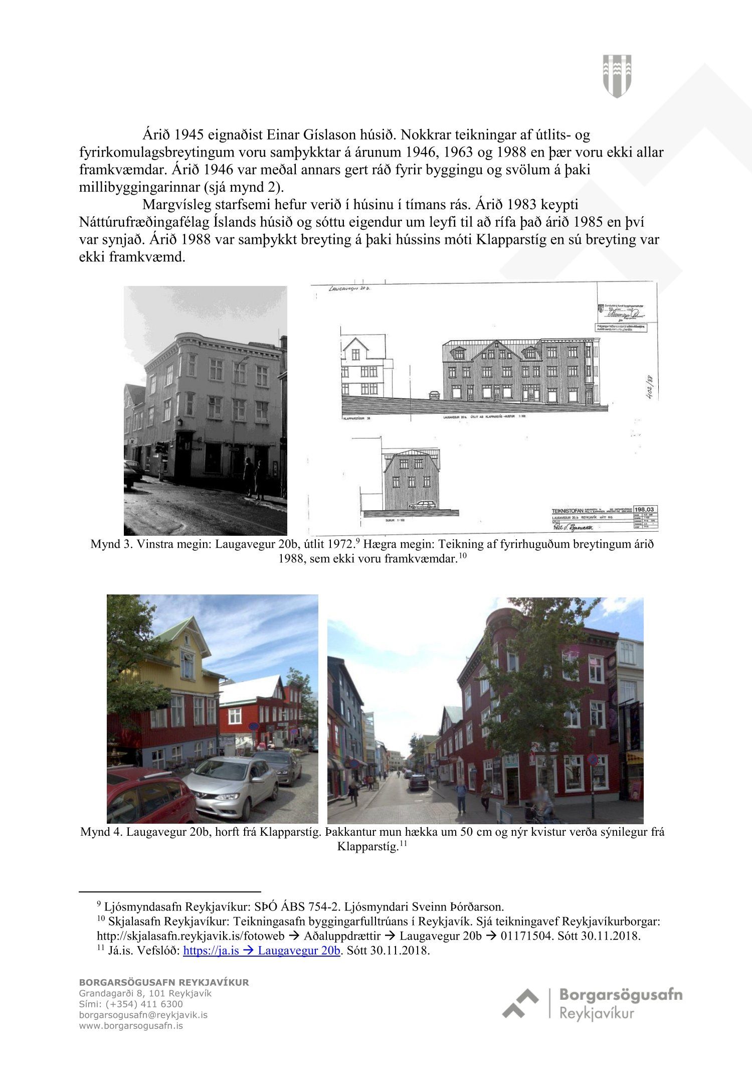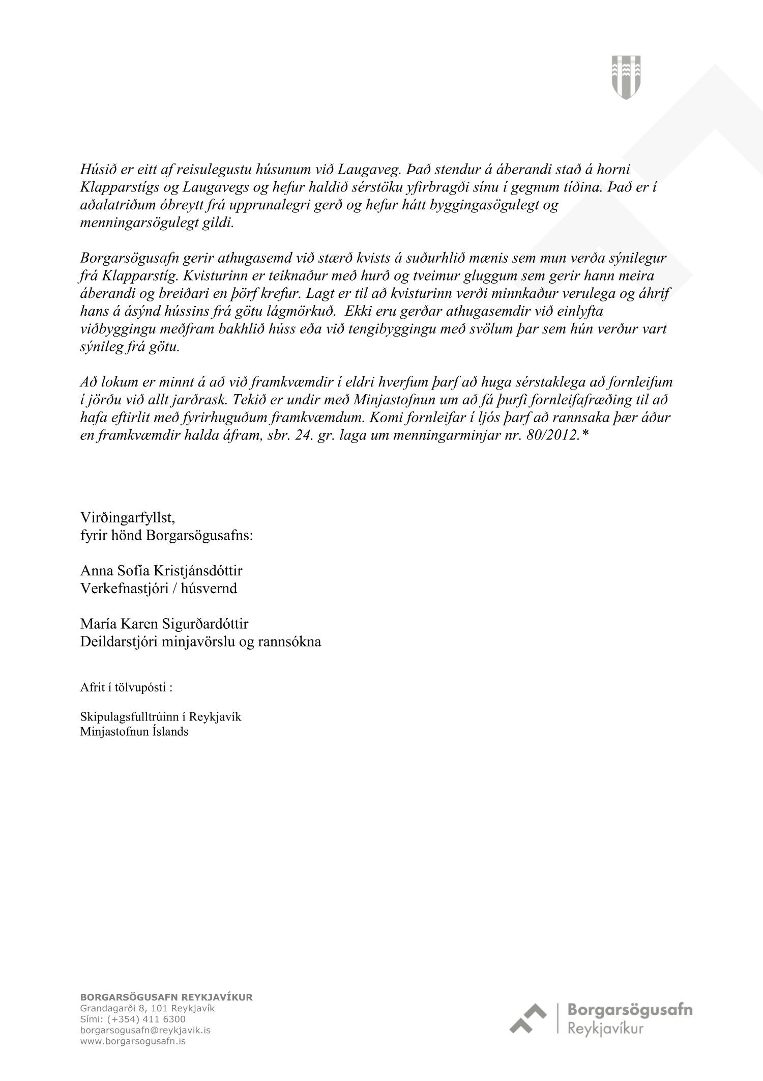 dags. 22. mars 2019. Einnig eru lagðar fram umsagnir Minjastofnunar Íslands dags. 12. nóvember 2018 og 25. mars 2019 og umsögn Borgarsögusafns Reykjavíkur dags. 5. desember 2018.