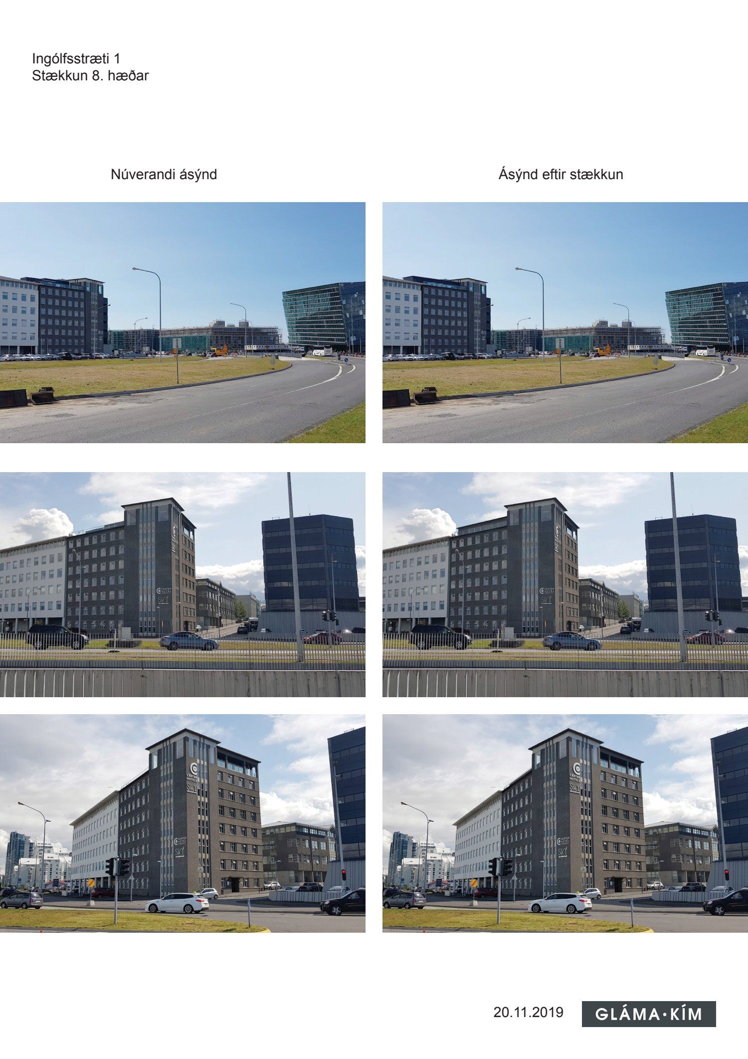 /Glámu-Kím dags. 20. nóvember 2019. Einnig er lögð fram skýringarmynd dags. 20. nóvember 2019 og aðaluppdr. dags. 13. september 2019 sem sýnir stækkun efstu hæðar.