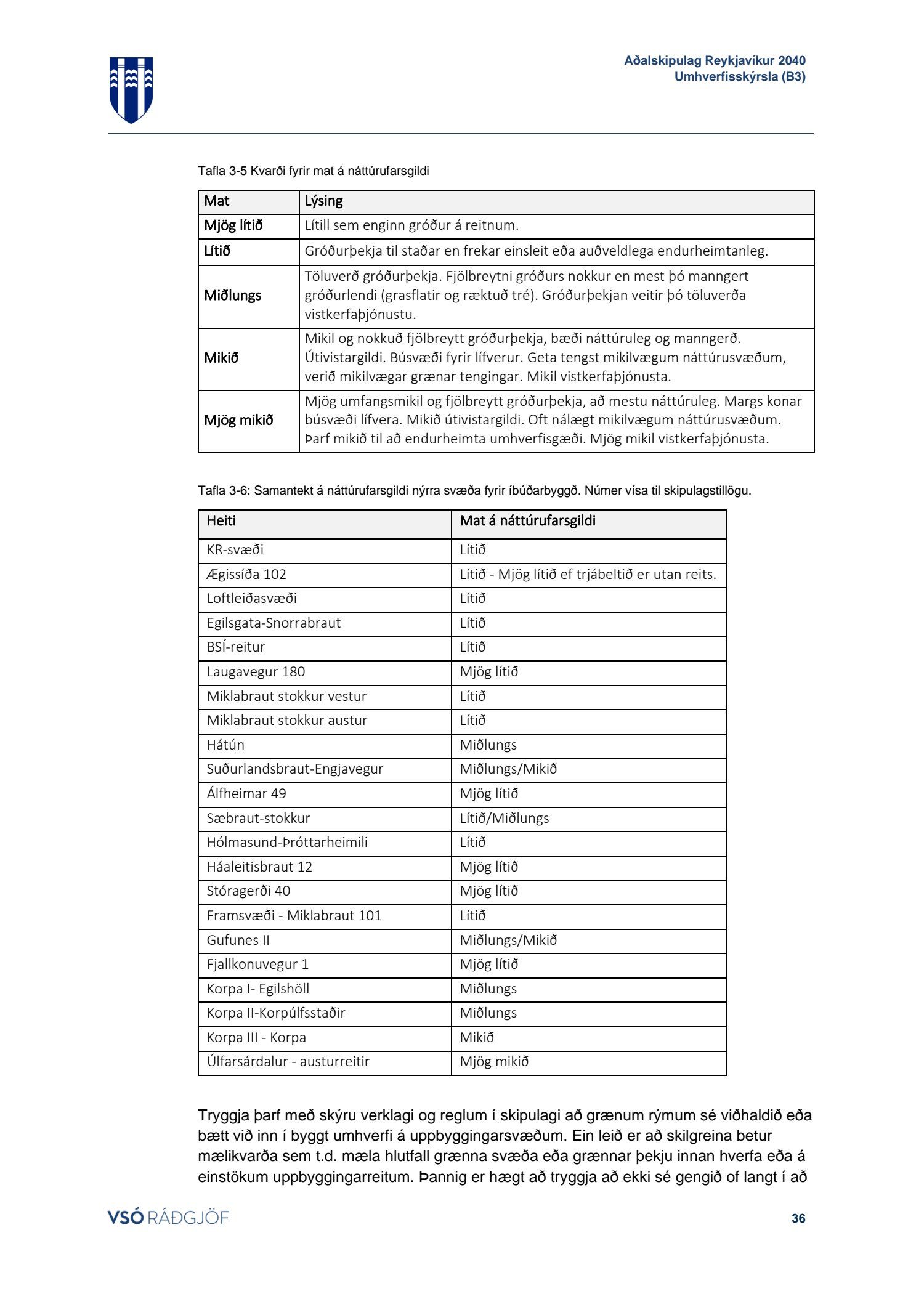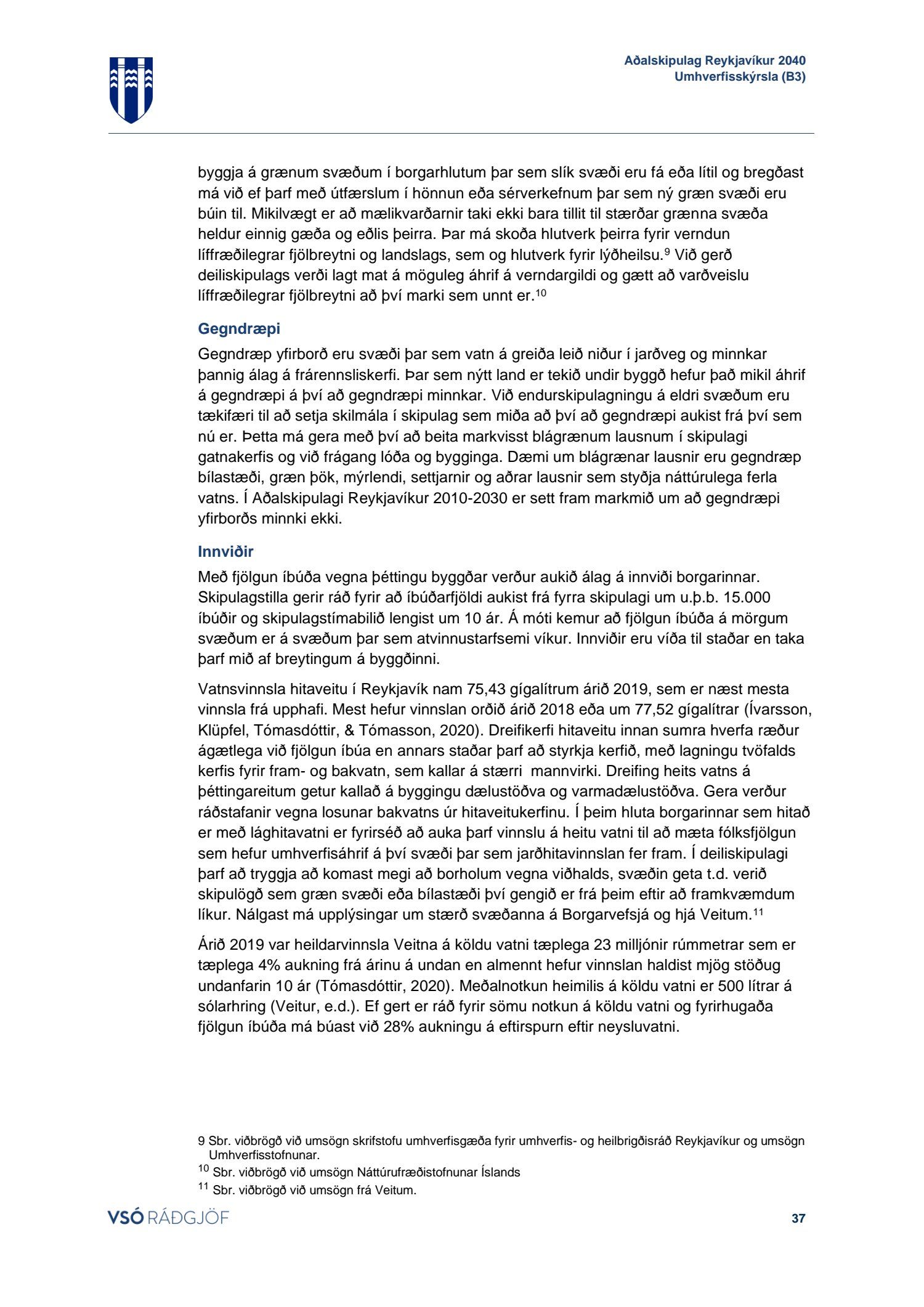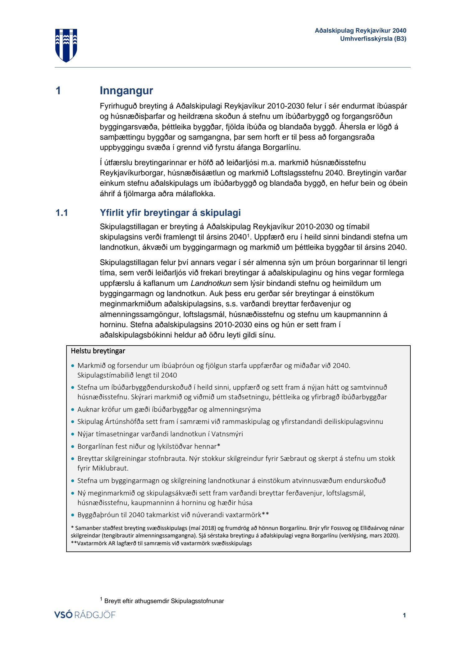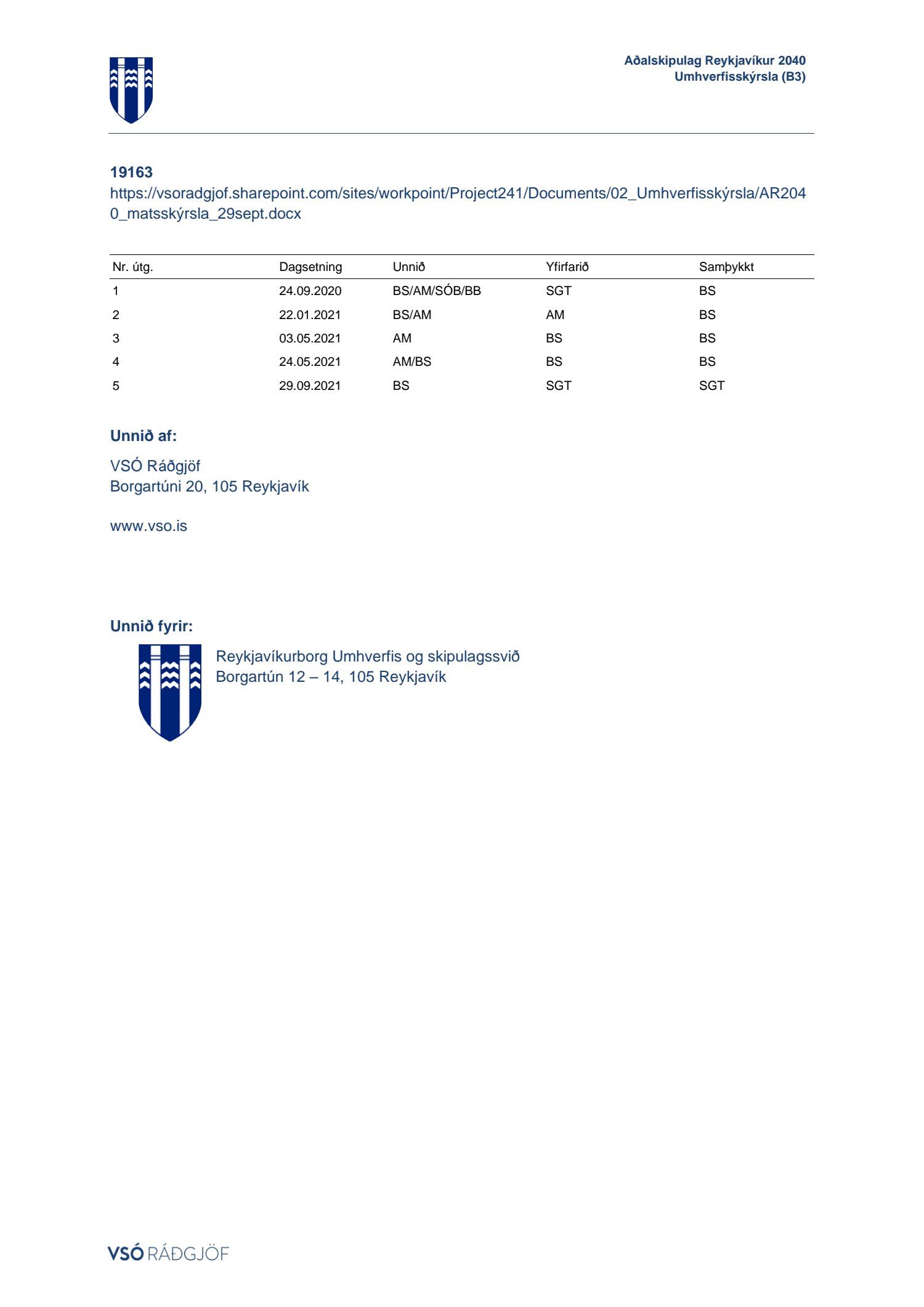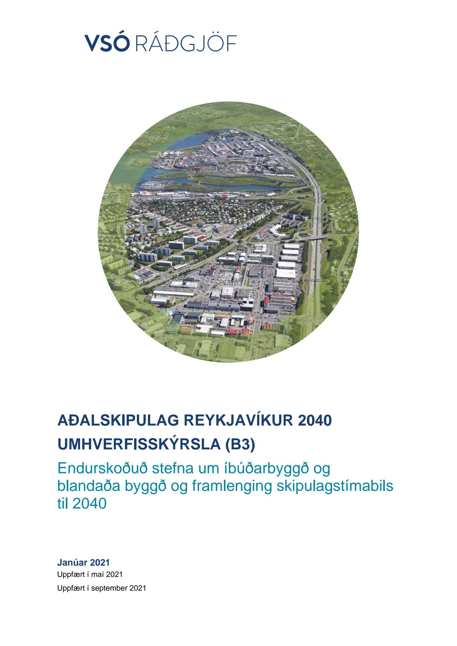 4. Umhverfisskýrsla: Aðalskipulag Reykjavíkur 2040. Endurskoðuð stefna um íbúðarbyggð og blandaða byggð og framlenging skipulagstímabils til 2040 (B3), maí 2021, VSÓ-ráðgjöf, uppfærð september 2021.