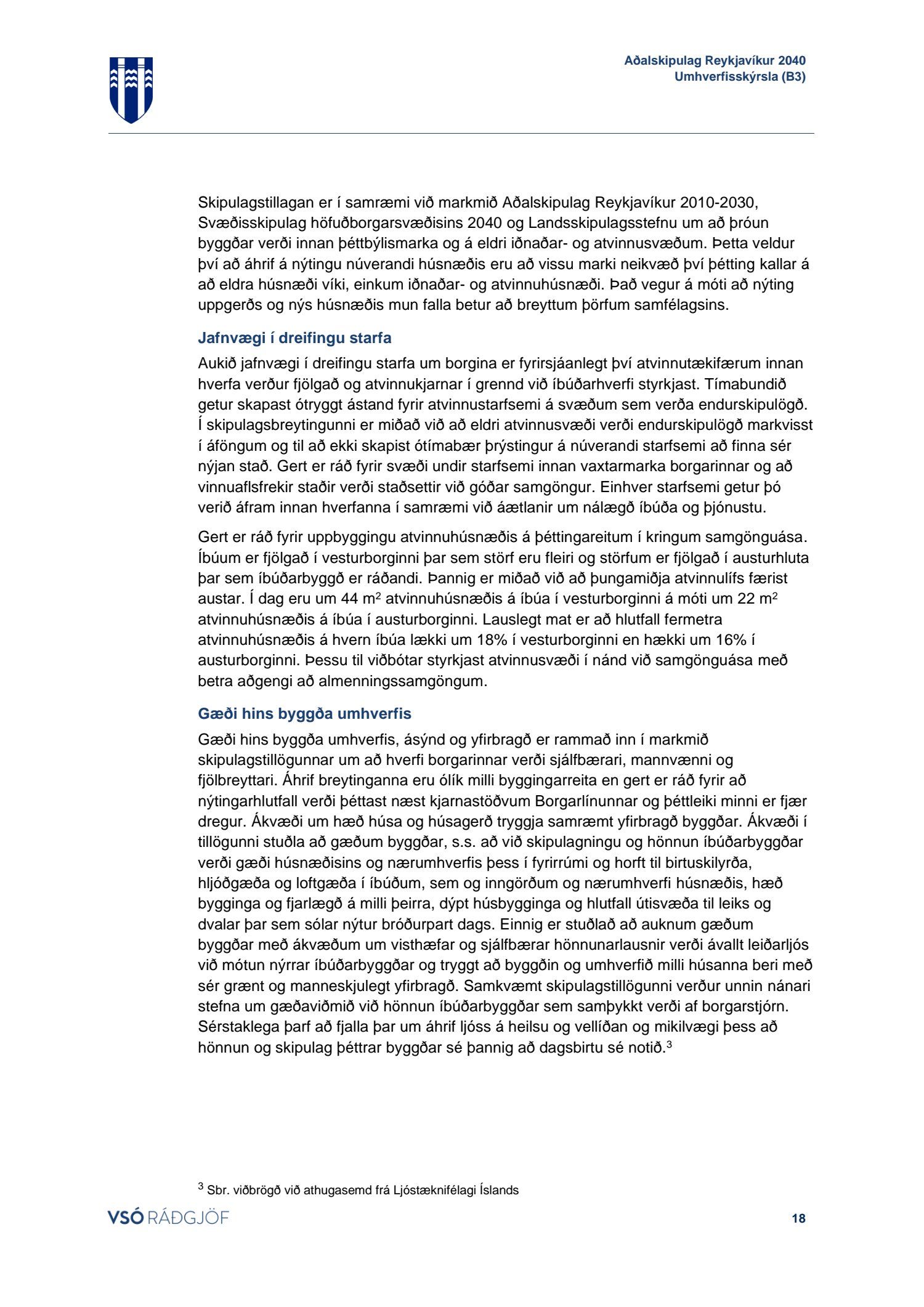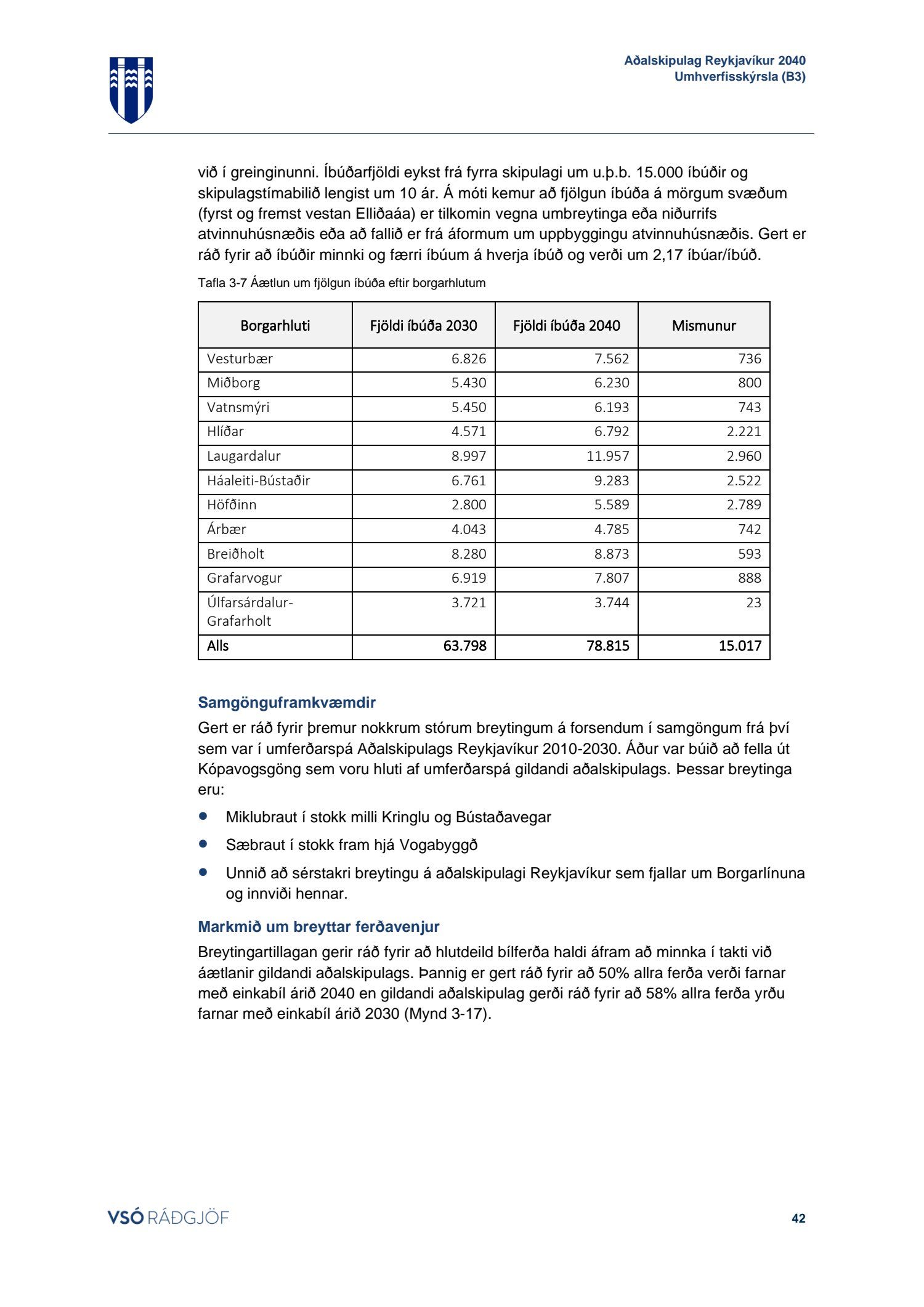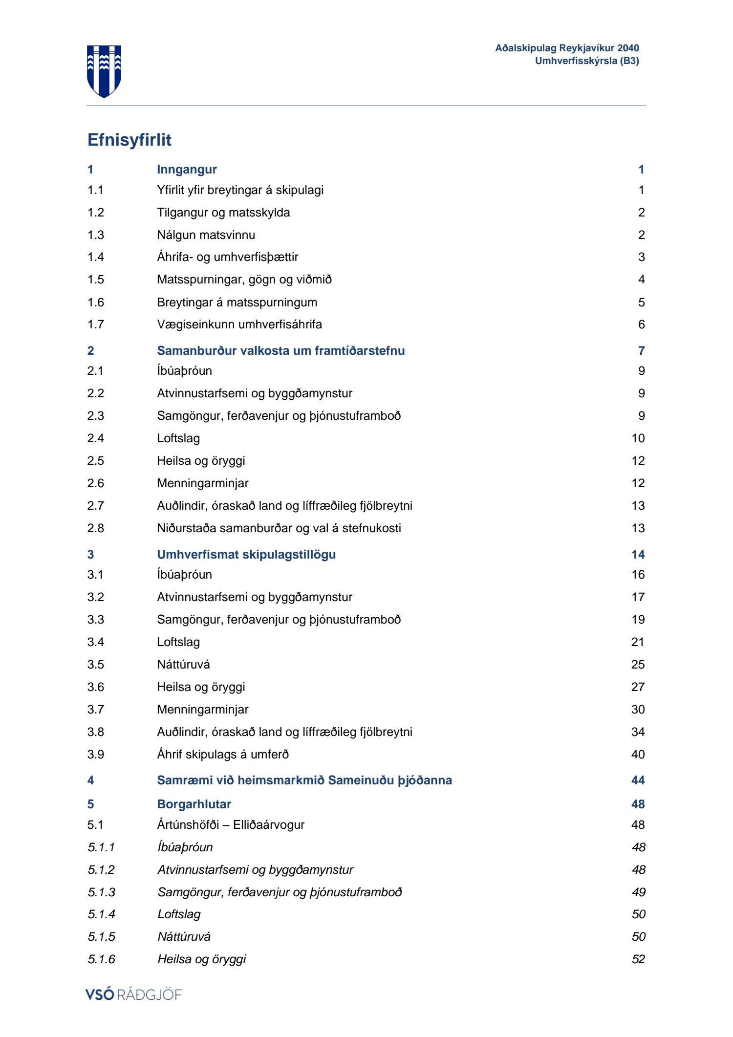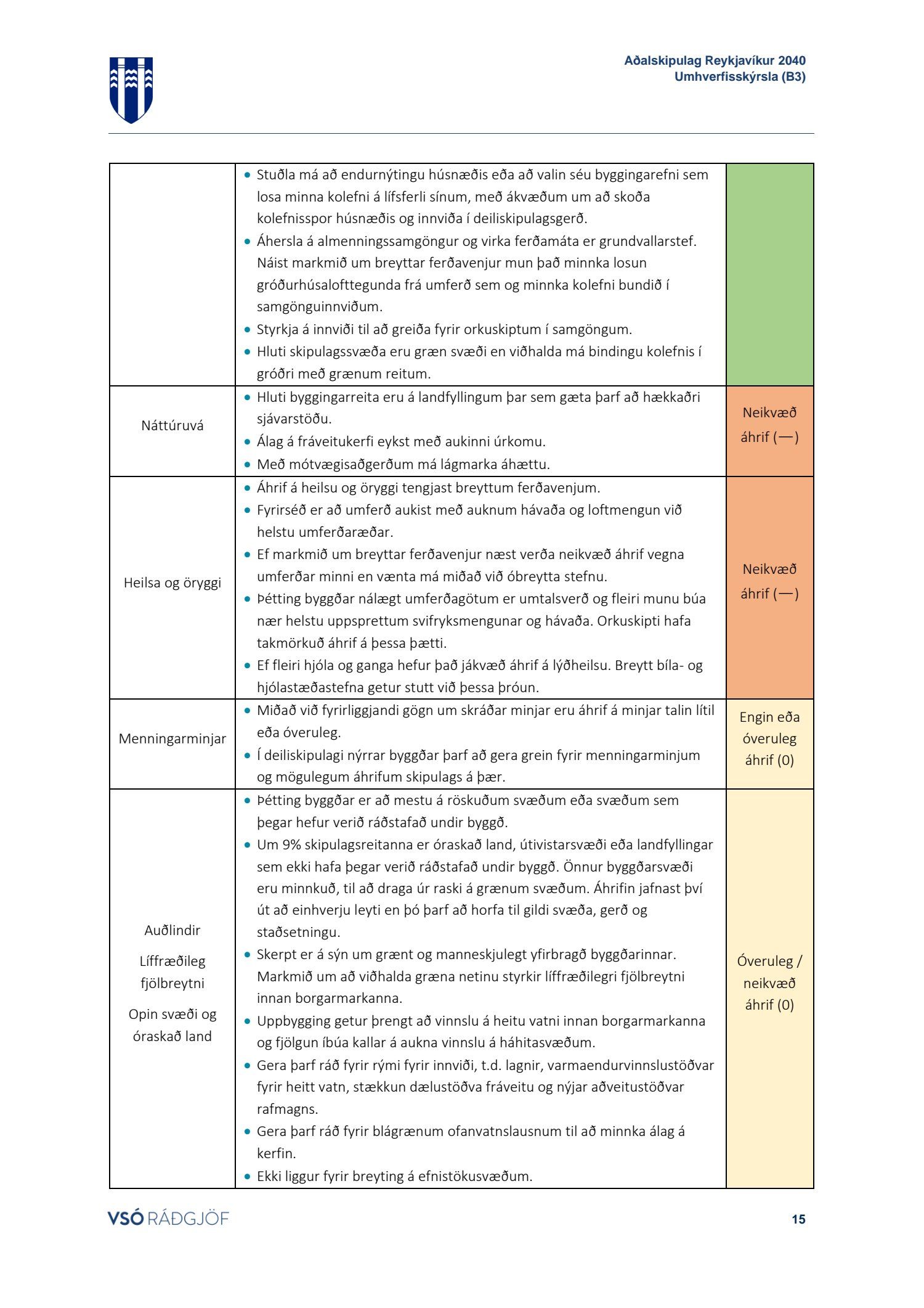 4. Umhverfisskýrsla: Aðalskipulag Reykjavíkur 2040. Endurskoðuð stefna um íbúðarbyggð og blandaða byggð og framlenging skipulagstímabils til 2040 (B3), maí 2021, VSÓ-ráðgjöf, uppfærð september 2021.