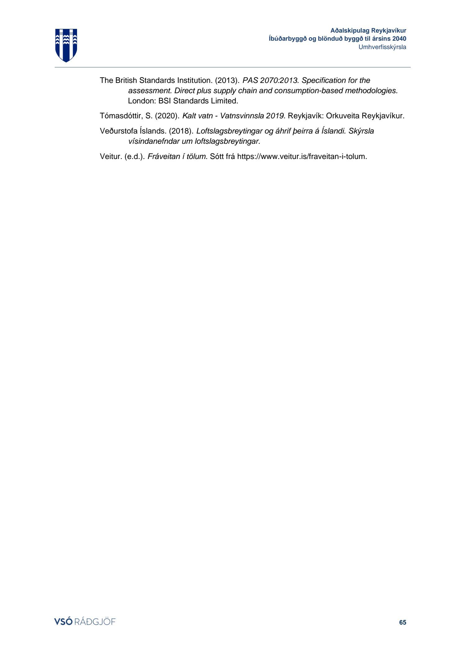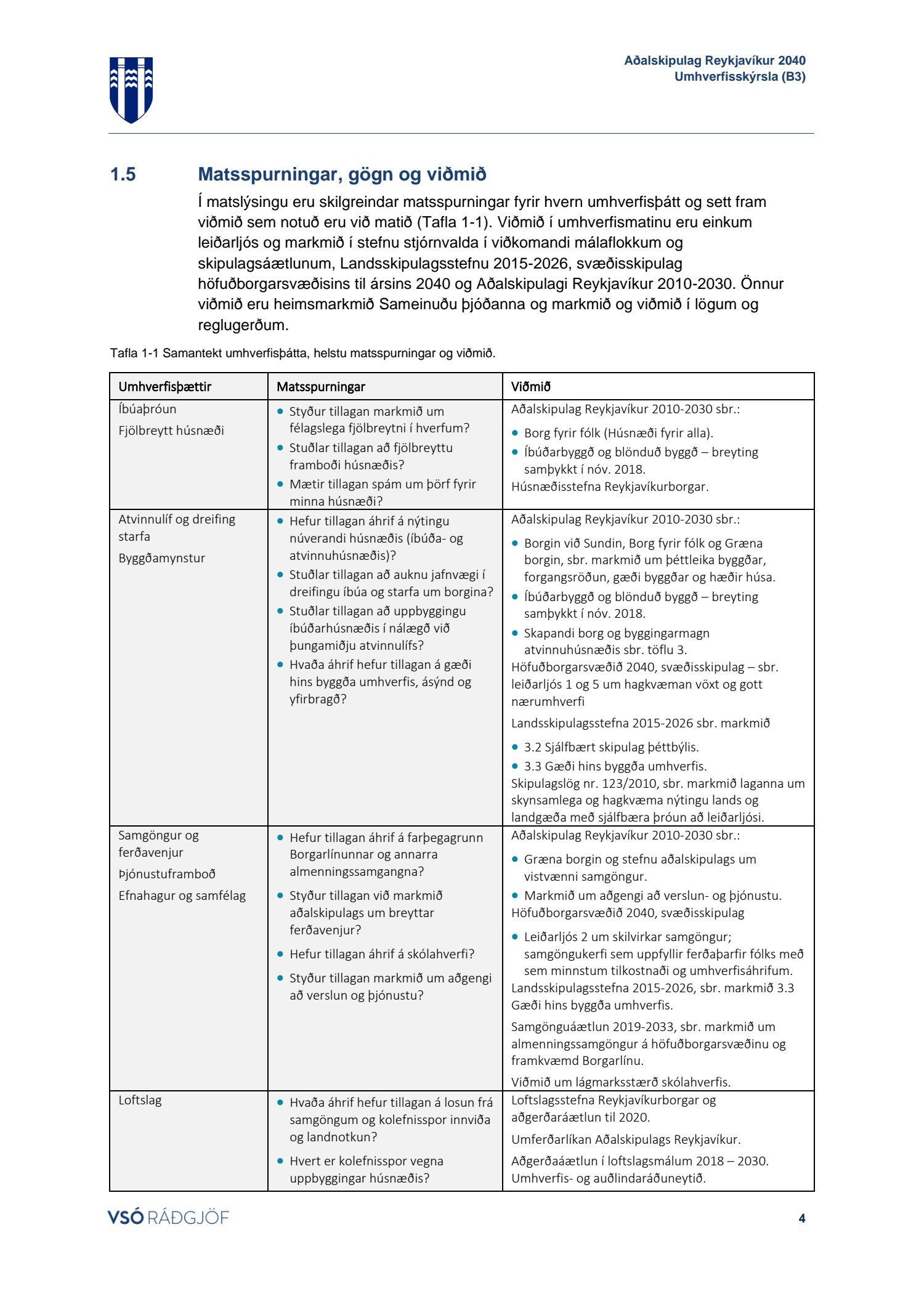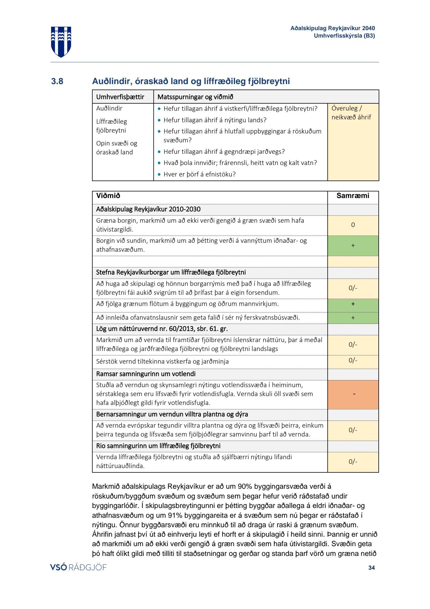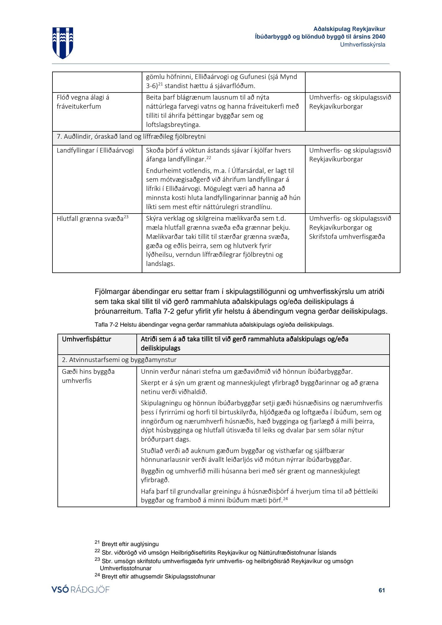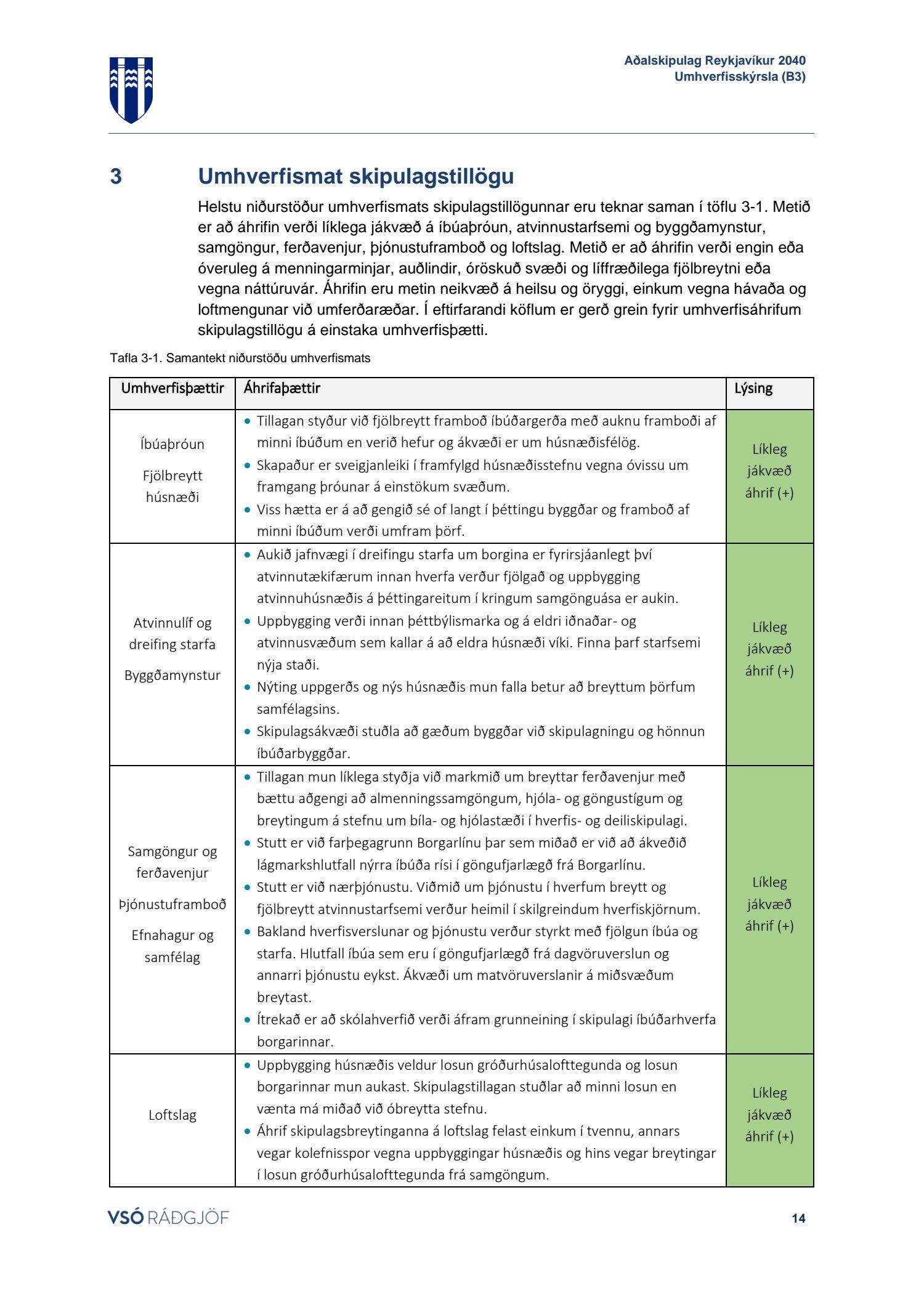 4. Umhverfisskýrsla: Aðalskipulag Reykjavíkur 2040. Endurskoðuð stefna um íbúðarbyggð og blandaða byggð og framlenging skipulagstímabils til 2040 (B3), maí 2021, VSÓ-ráðgjöf, uppfærð september 2021.