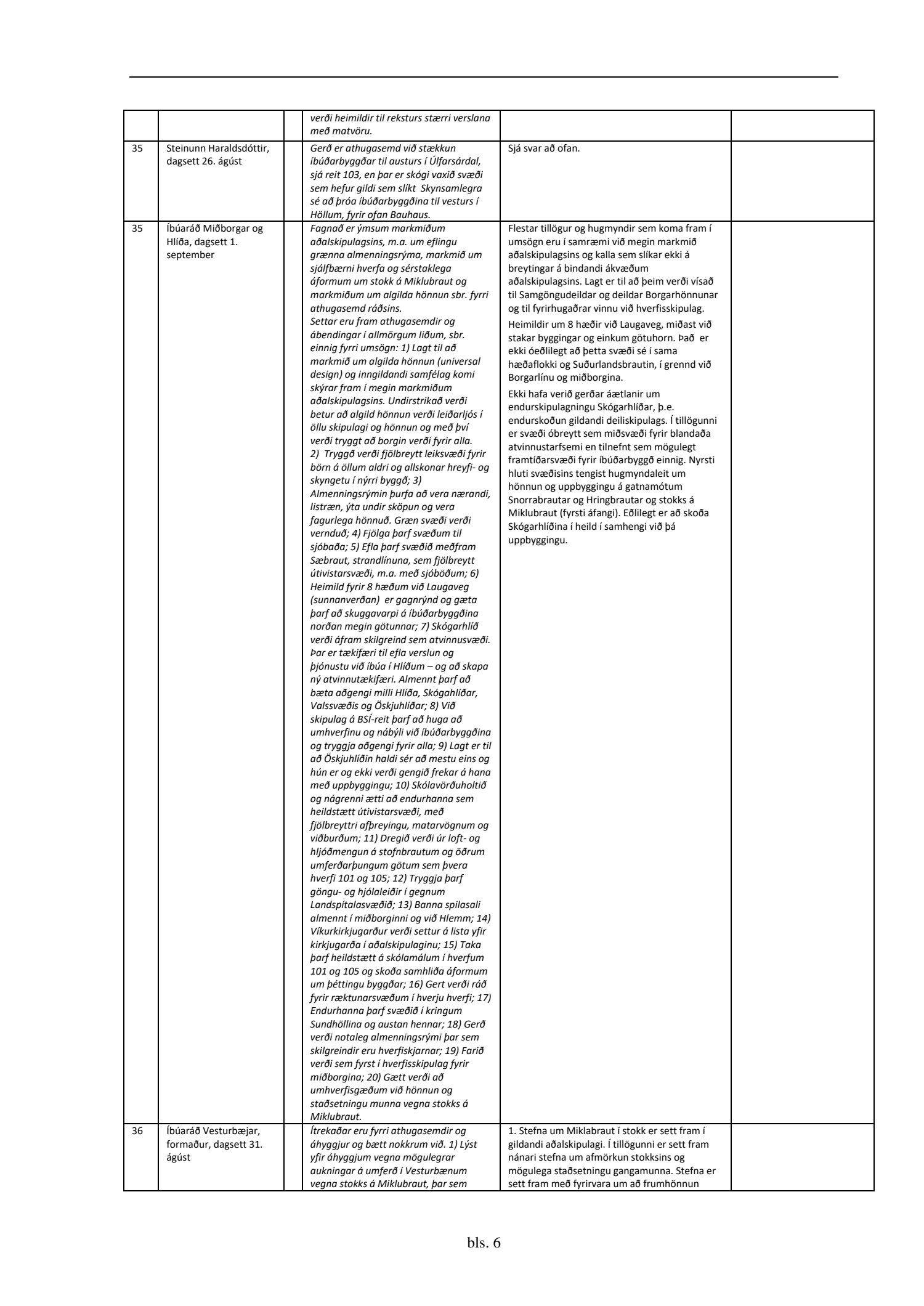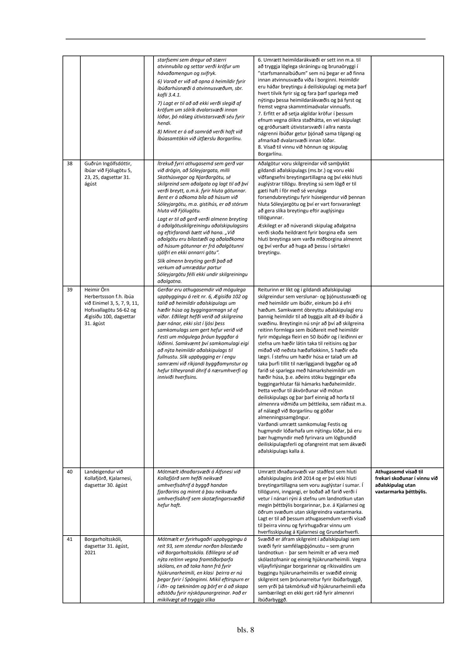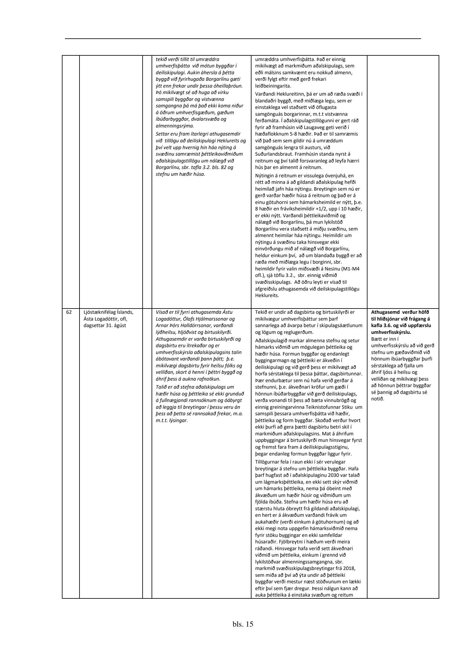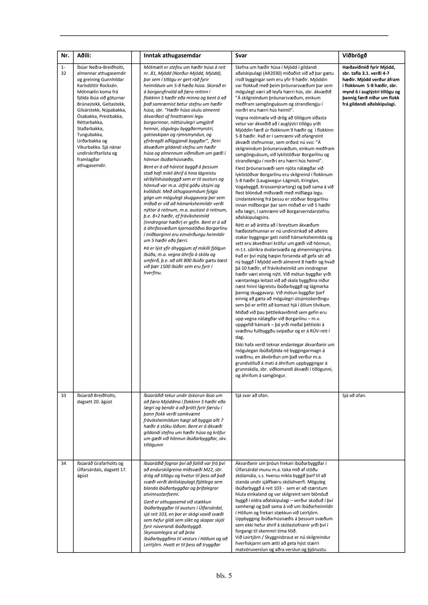 9. Yfirlit athugasemda og svör við þeim - umsögn Umhverfis- og skipulagssviðs, dagsett 4. október 2021.