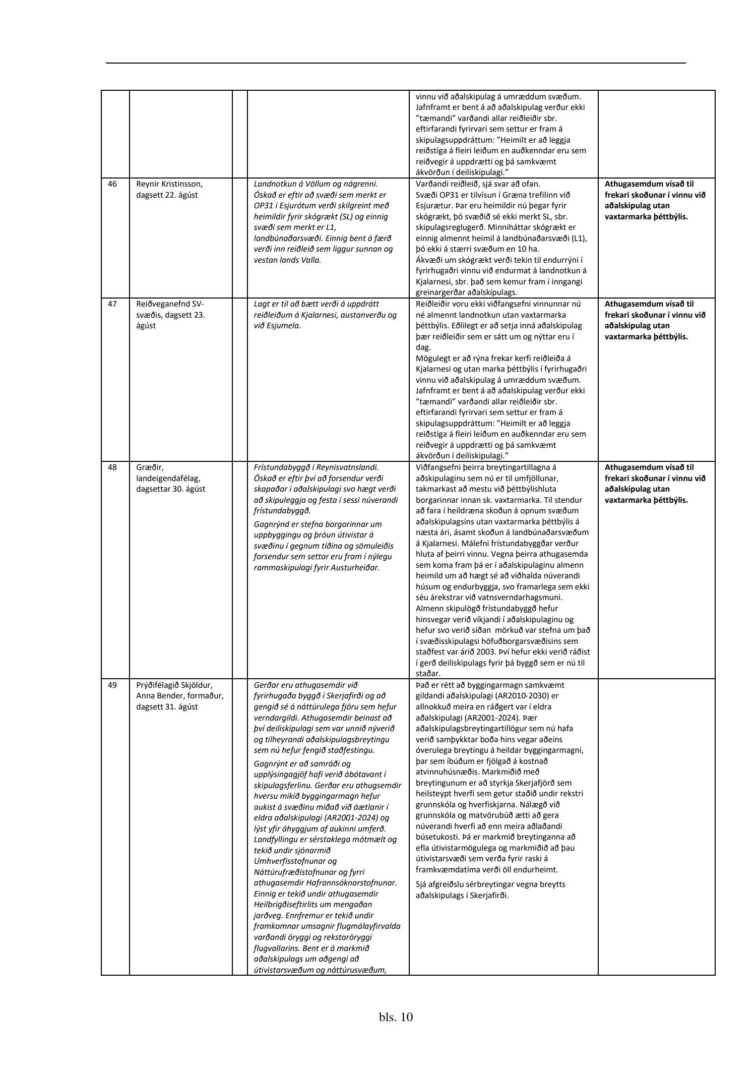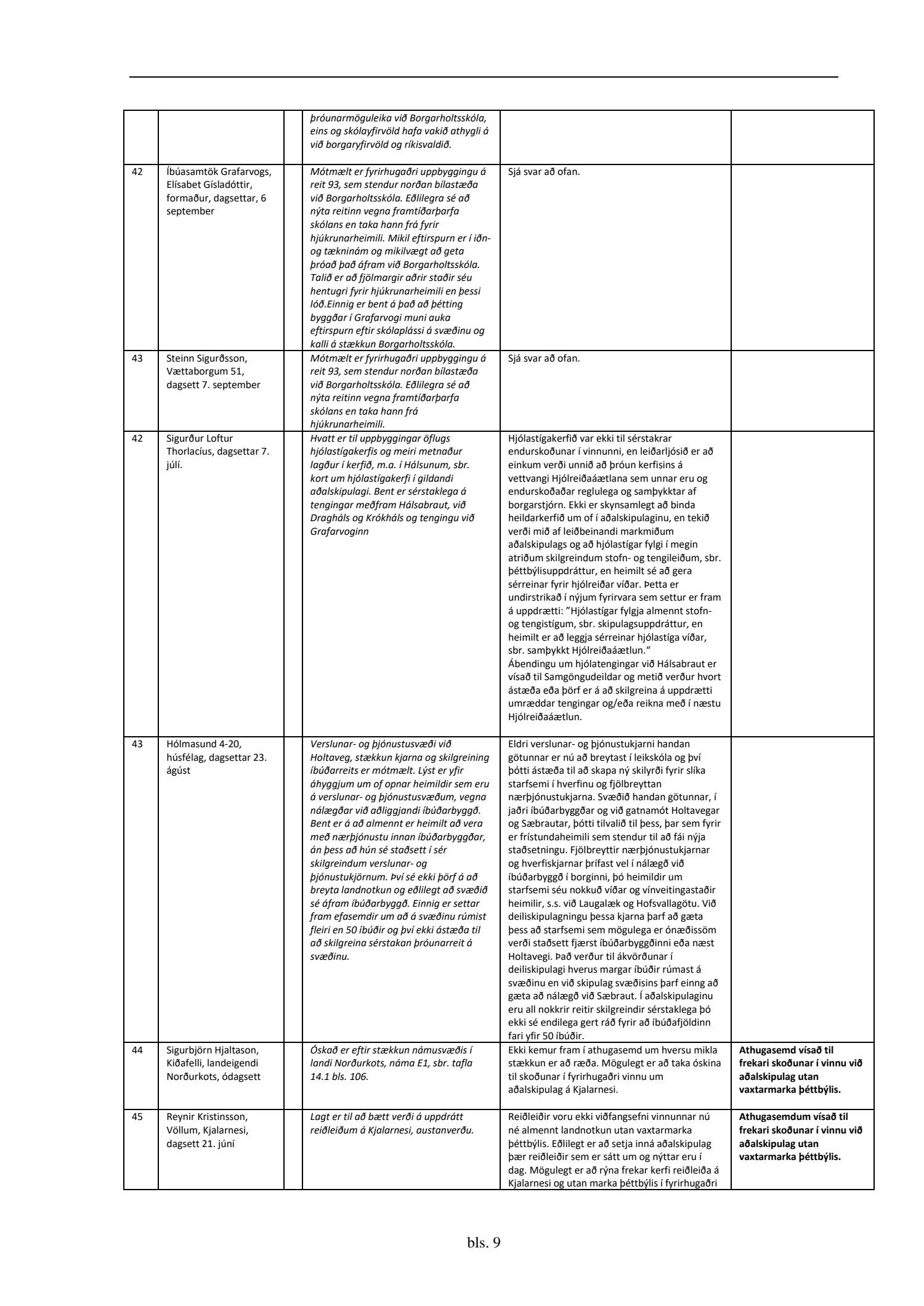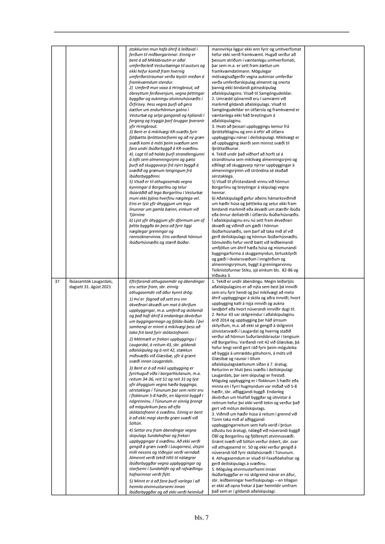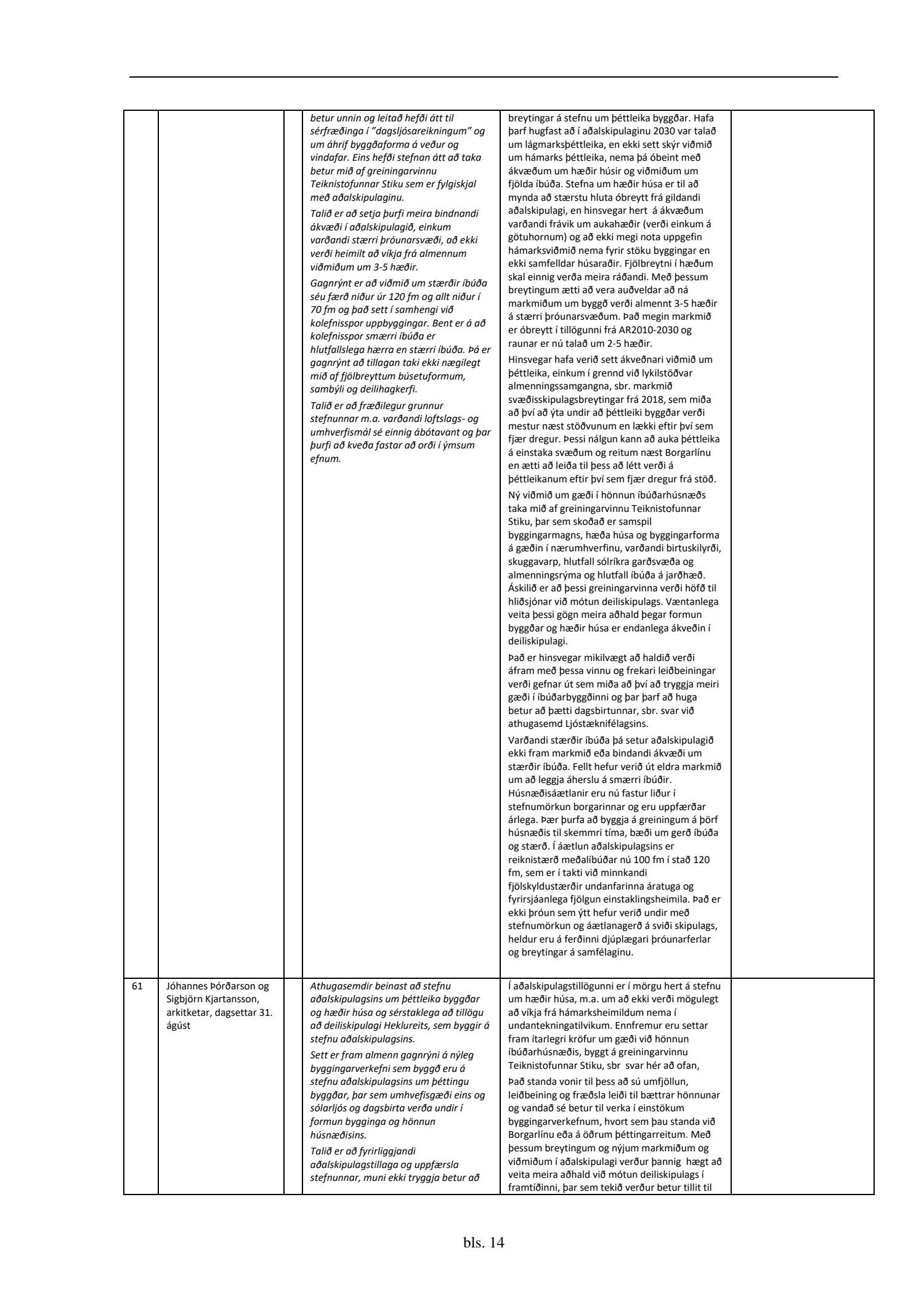 9. Yfirlit athugasemda og svör við þeim - umsögn Umhverfis- og skipulagssviðs, dagsett 4. október 2021.