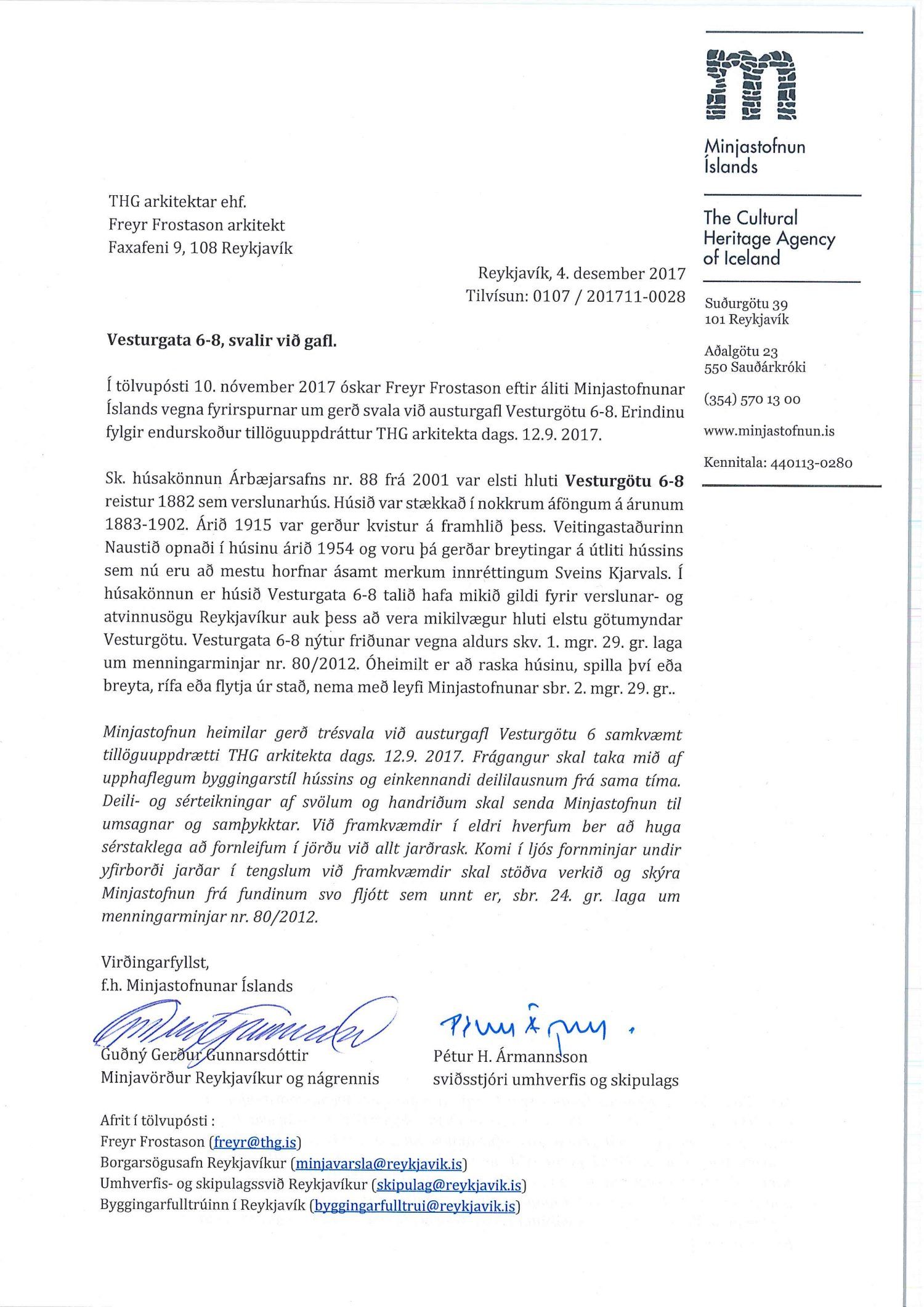 dags. 24. október 2019. Einnig er lögð fram umsögn Minjastofnunar Íslands dags. 4. desember 2017.