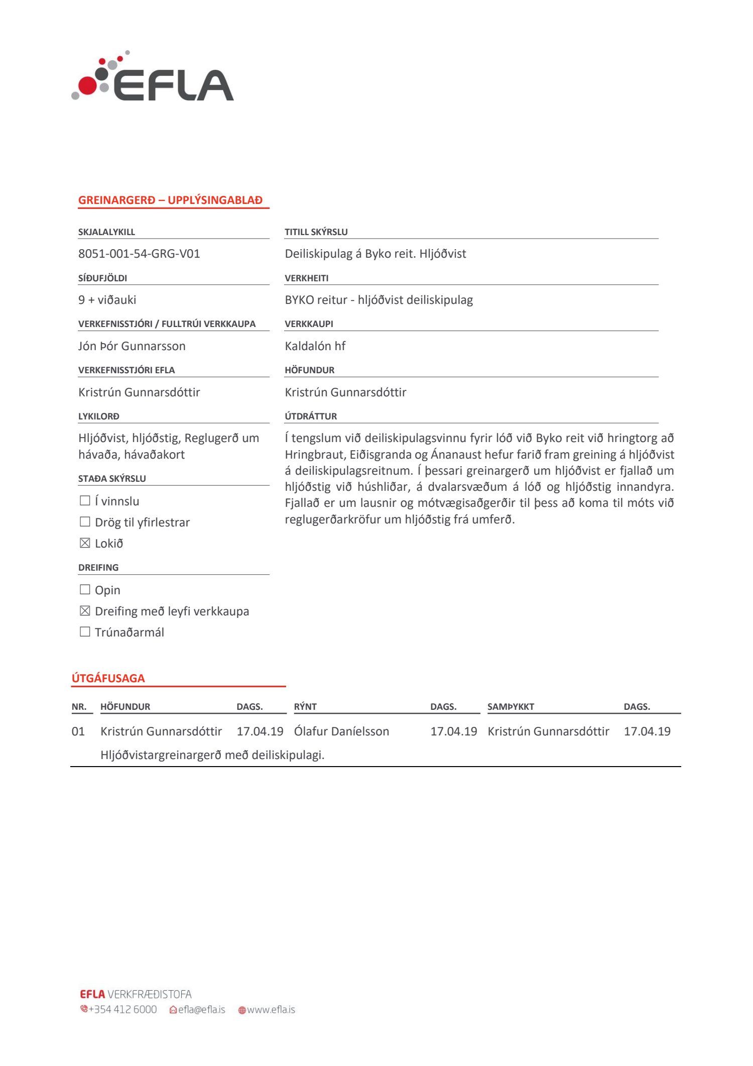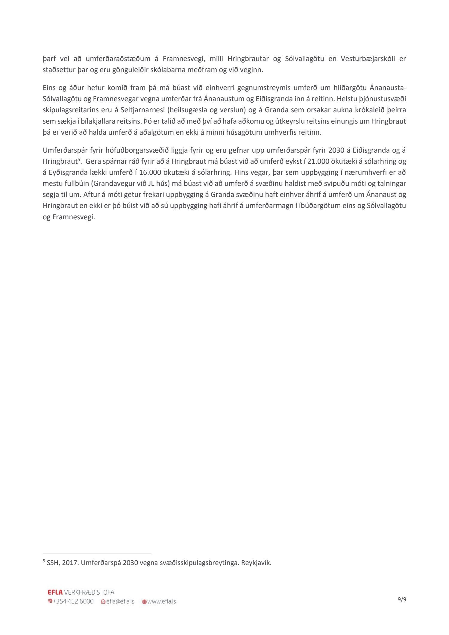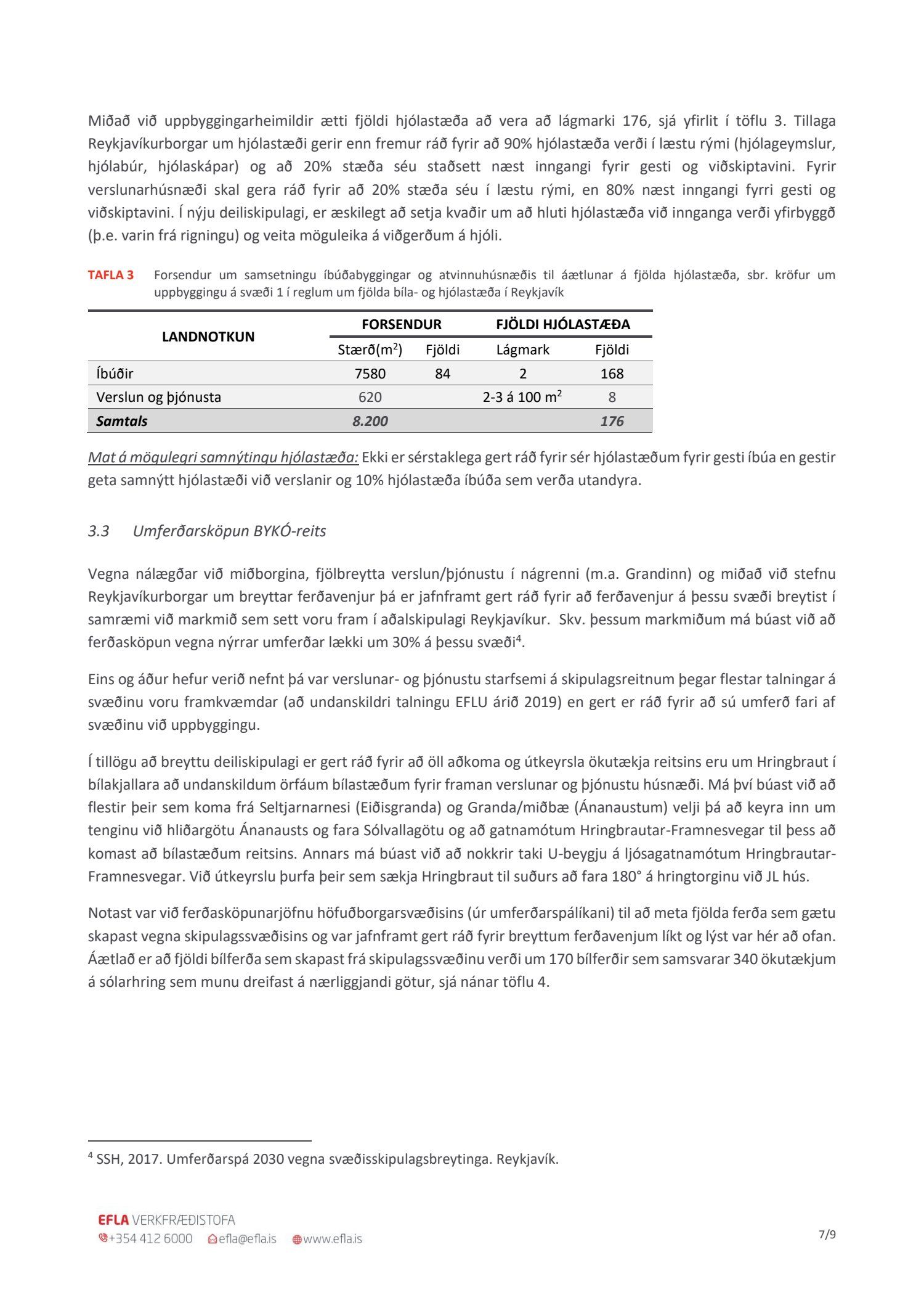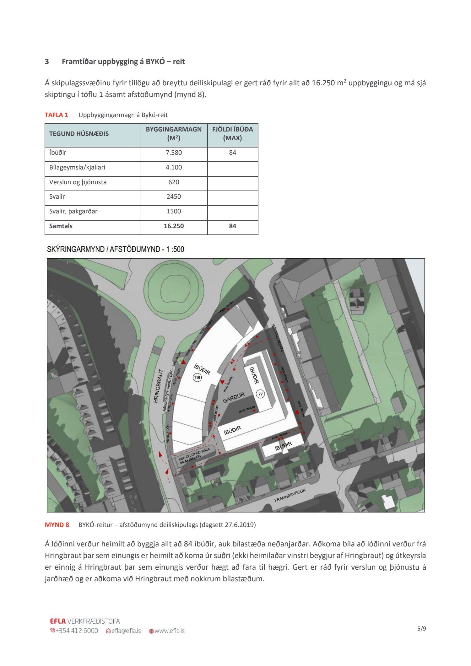 dags 27. júní 2019, br. 26. febrúar 2020. Einnig er lögð fram hljóðsvistarskýrsla Eflu dags. 17. apríl 2019 og minnisblað EFLU dags. 7. ágúst 2019 um áhrif á samgöngur. Tillagan var auglýst frá 10. september 2019 til og með 31. október 2019. Eftirtaldir aðilar sendu athugasemdir: Ólafur Hauksson dags. 22. september 2019, Sigríður Erla Jóhönnudóttir dags. 22. október 2019, Erla Björk Baldursdóttir dags. 22. október 2019, Margrét Einarsdóttir skólastjóri f.h. skólaráðs Vesturbæjarskóla dags. 29. október 2019 og Íbúasamtök Vesturbæjar dags. 31. október 2019. Einnig er lögð fram umsögn Vegagerðarinnar dags. 2. desember 2019 og umsögn skipulagsfulltrúa dags. 10. janúar 2020.