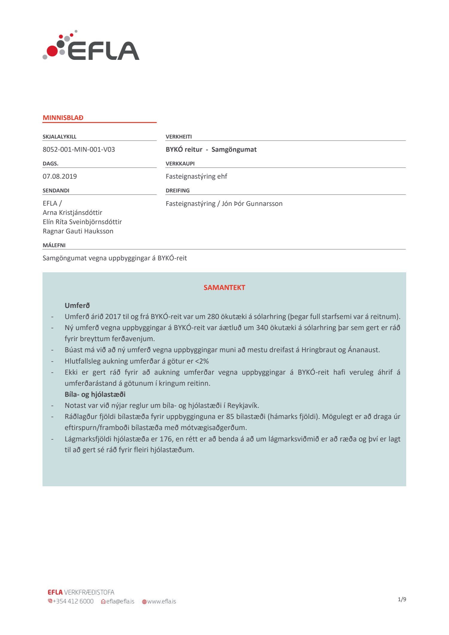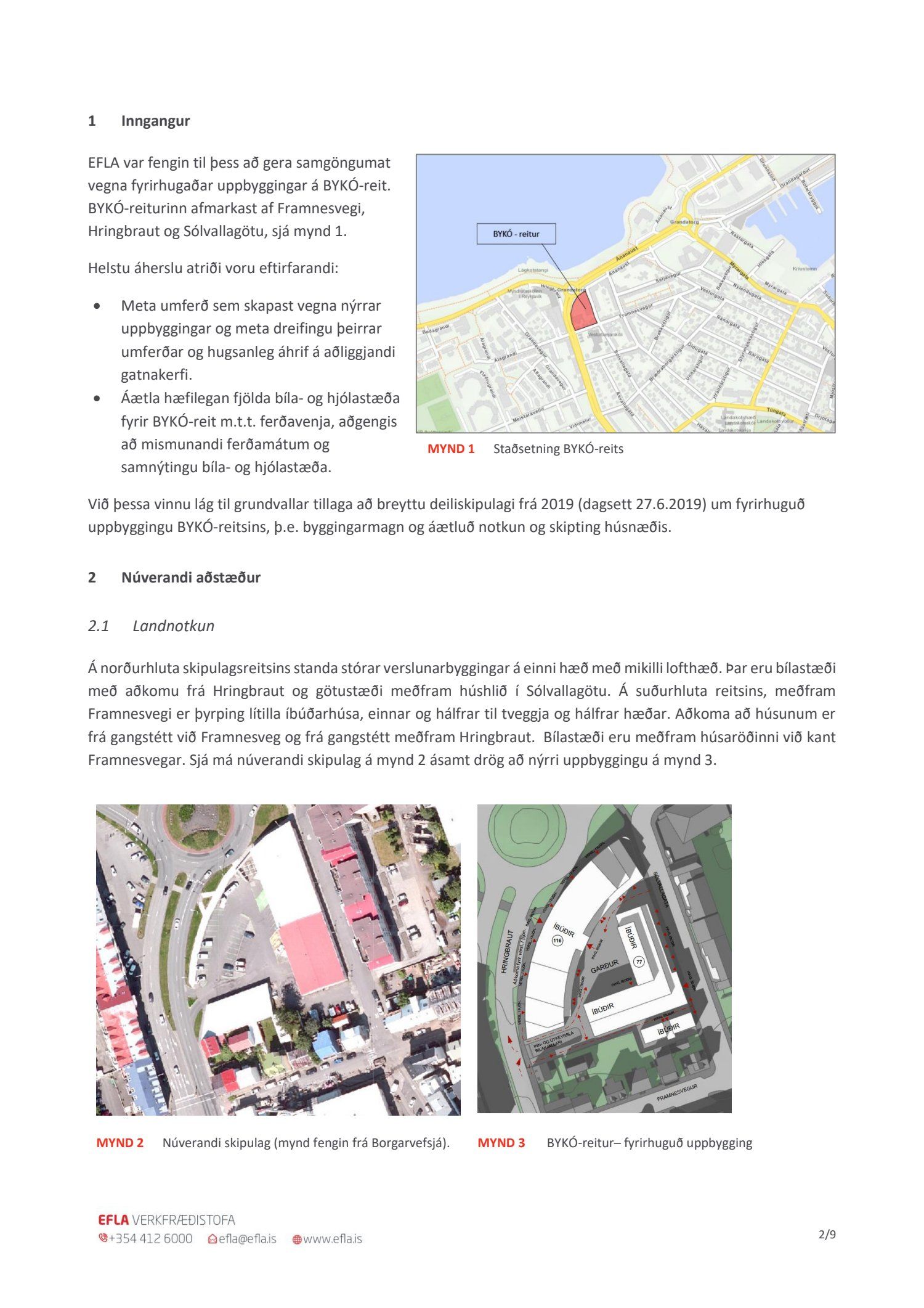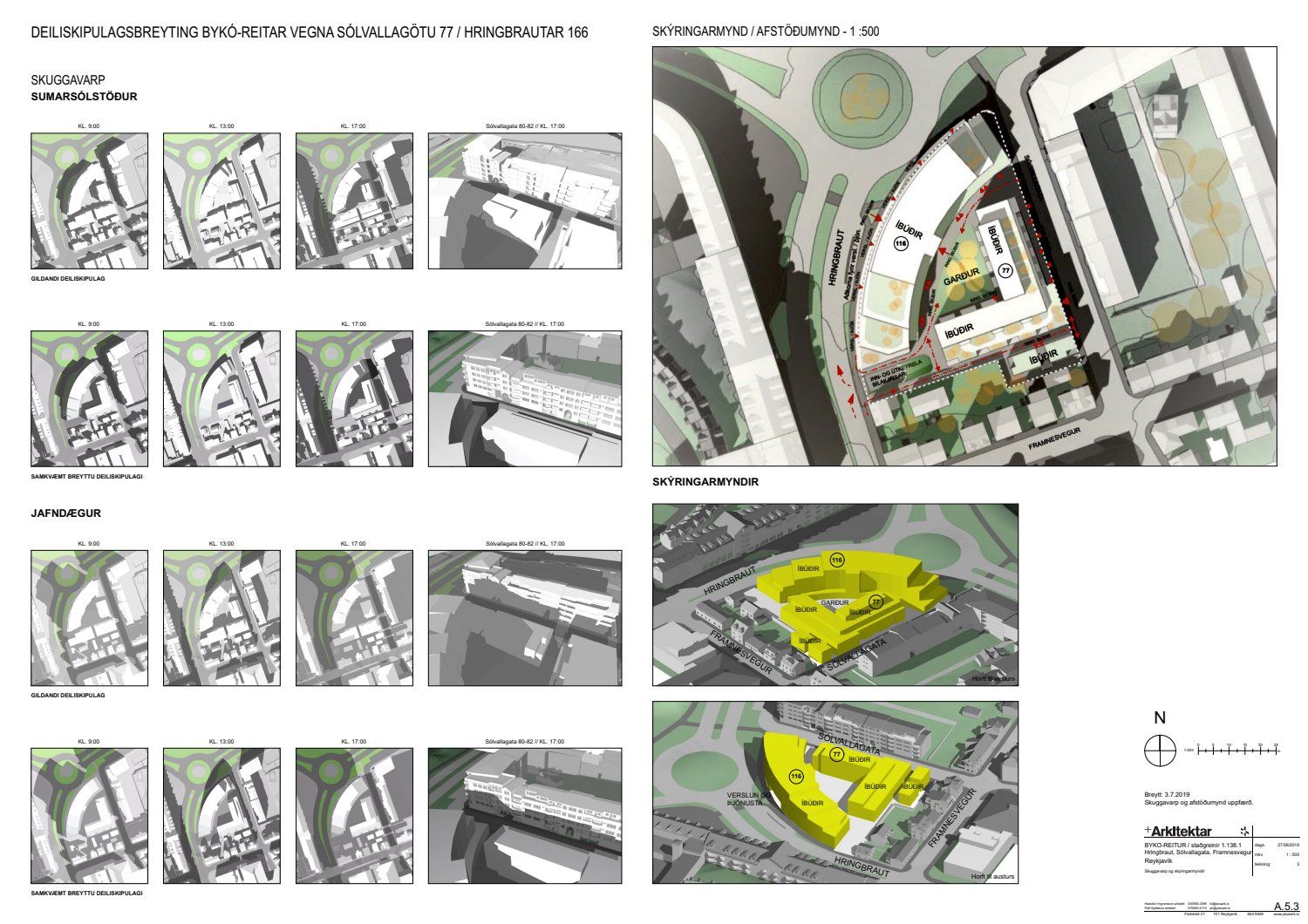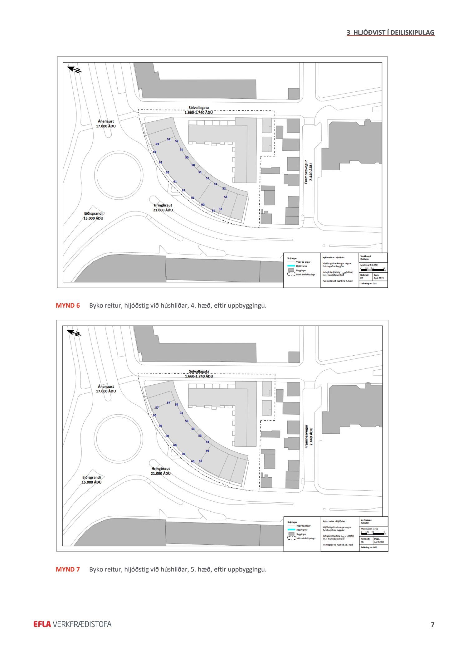 dags 27. júní 2019. Ennfremur lagðar fram skýringamyndir og skuggavarp, dags. 27.júní 2019., breytt 3. júlí 2019 ásamt greinargerð, Hljóðvistarskýrsla EFLU dags. 17.apríl 2019 og minnisblað EFLU dags. 7.ágsúst 2019 um áhrif á samgöngur.
