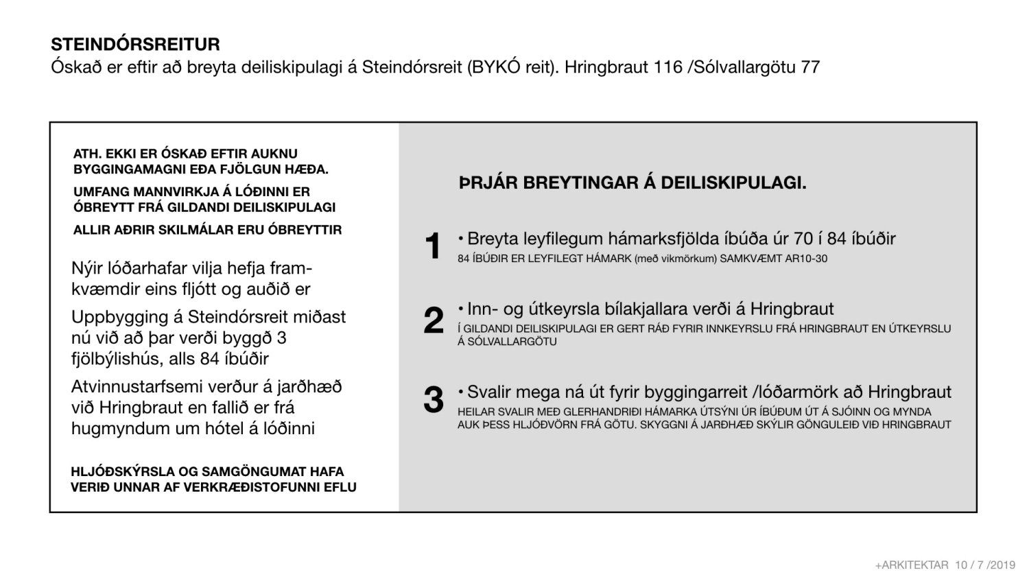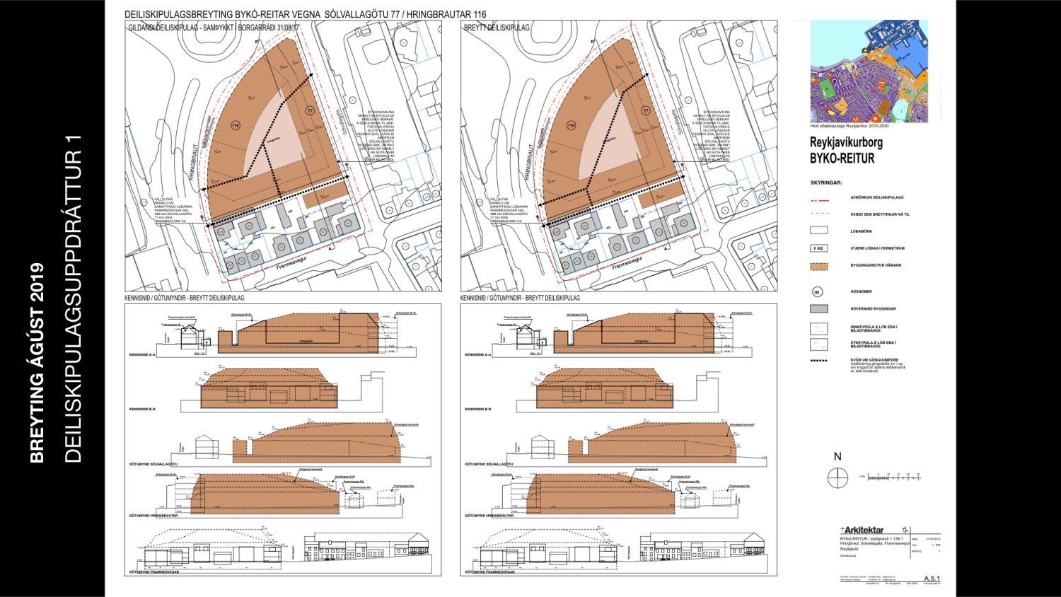 dags 27. júní 2019 varðandi breytingu á deiliskipulagi Byko reitar á lóðinni nr. 77 við Sólvallagötu og nr. 116 við Hringbraut. Breytingin felst í hækkun hámarksfjölda íbúða úr 70 íbúðum í 84, inn- og útkeyrsla í bílakjallara heimiluð frá Hringbraut en engin útkeyrsla við Sólvallagötu, svalir megi ná út fyrir lóðarmörk byggingu sem stendur við Hringbraut samkvæmt greinagerð