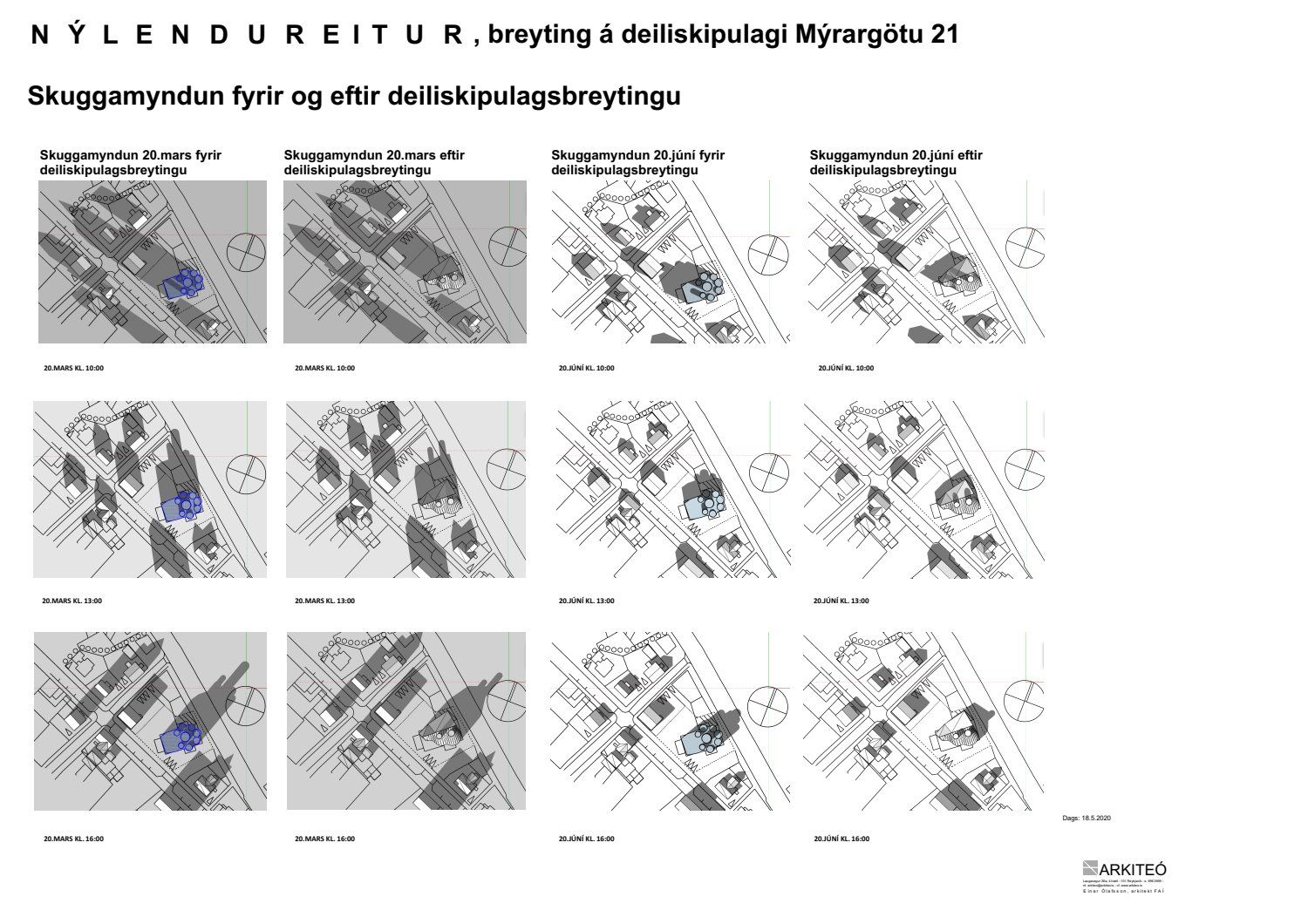 Lögð fram umsókn Einars Ólafssonar, dags. 18. júlí 2019, varðandi breytingu á deiliskipulagi Nýlendureits, reits 1.131, vegna lóðarinnar nr. 21-23 við Mýrargötu. Í breytingunni felst að minnka umfang og hæðir kirkjunnar ásamt því að kirkjuturnar eru lækkaðir. Turnunum fækkar úr 5 í 2, hámarkshæð hærri turns minnkar úr 22 metrum niður í 18 metra og minni turns úr 17. metrum niður í 15 metra og umfang kirkjunnar minnkar, samkvæmt deiliskipulags-, skuggavarps- og skýringaruppdr. Arkiteo ehf. dags. 18. maí 2020.