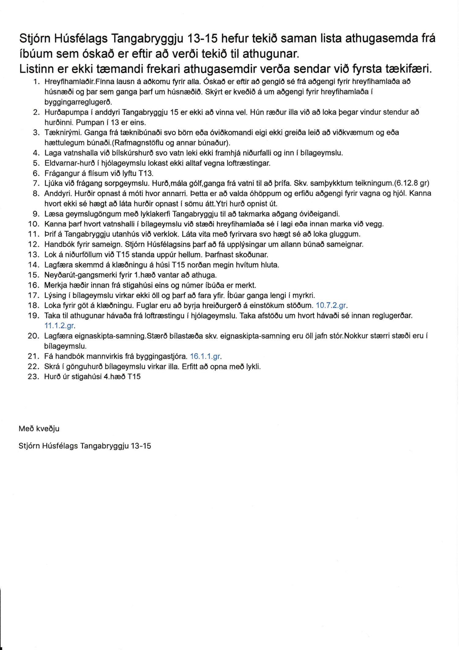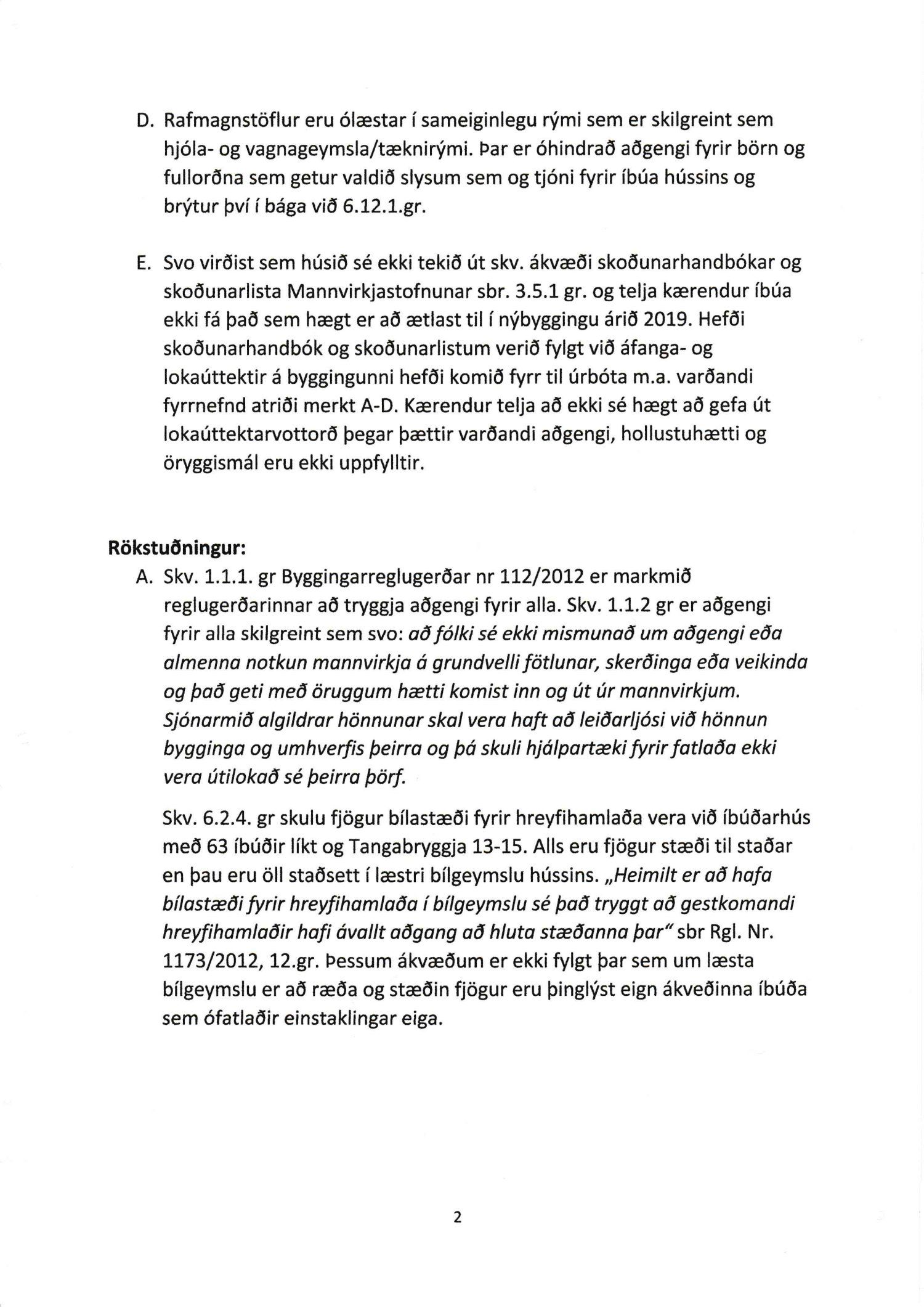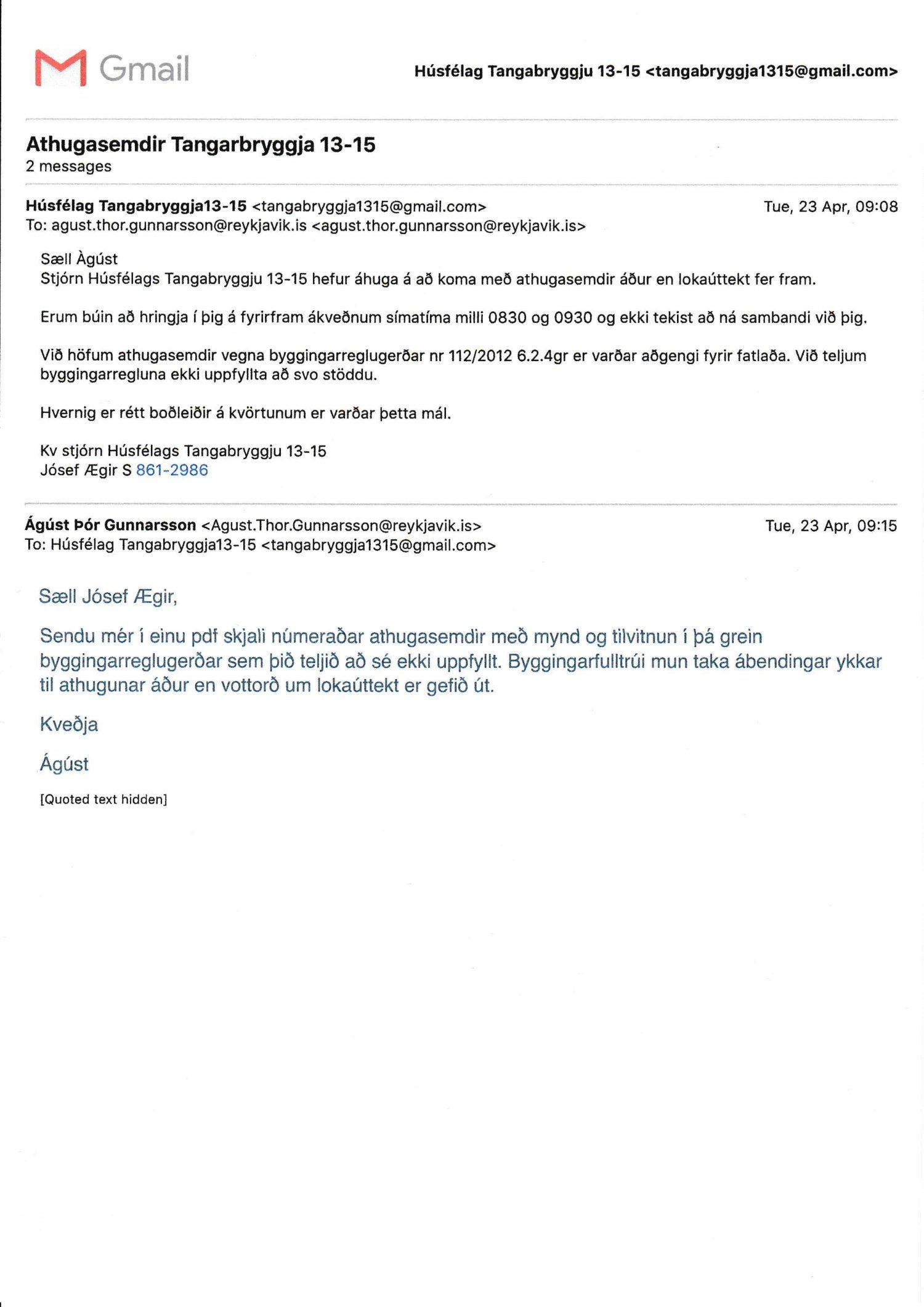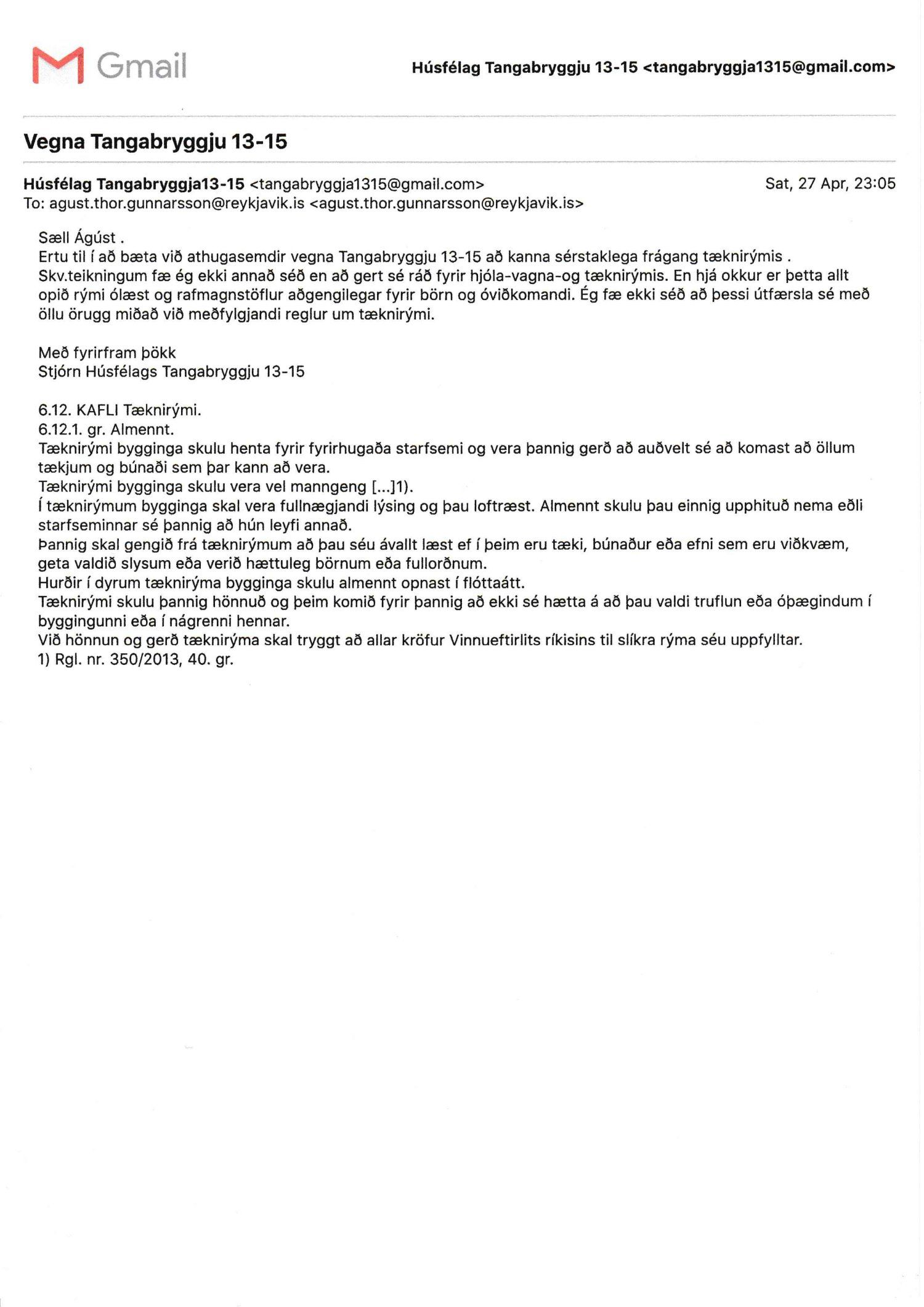 Lagt fram erindi úrskurðarnefndar umhverfis- og auðlindamála dags. 8. júlí 2019 ásamt kæru dags. 1. júlí 2019 þar sem kærð er útgáfa byggingarfulltrúa Reykjavíkur á lokaúttekt vegna Tangabryggju 13 og 15, útgefin þann 21. júní 2019.