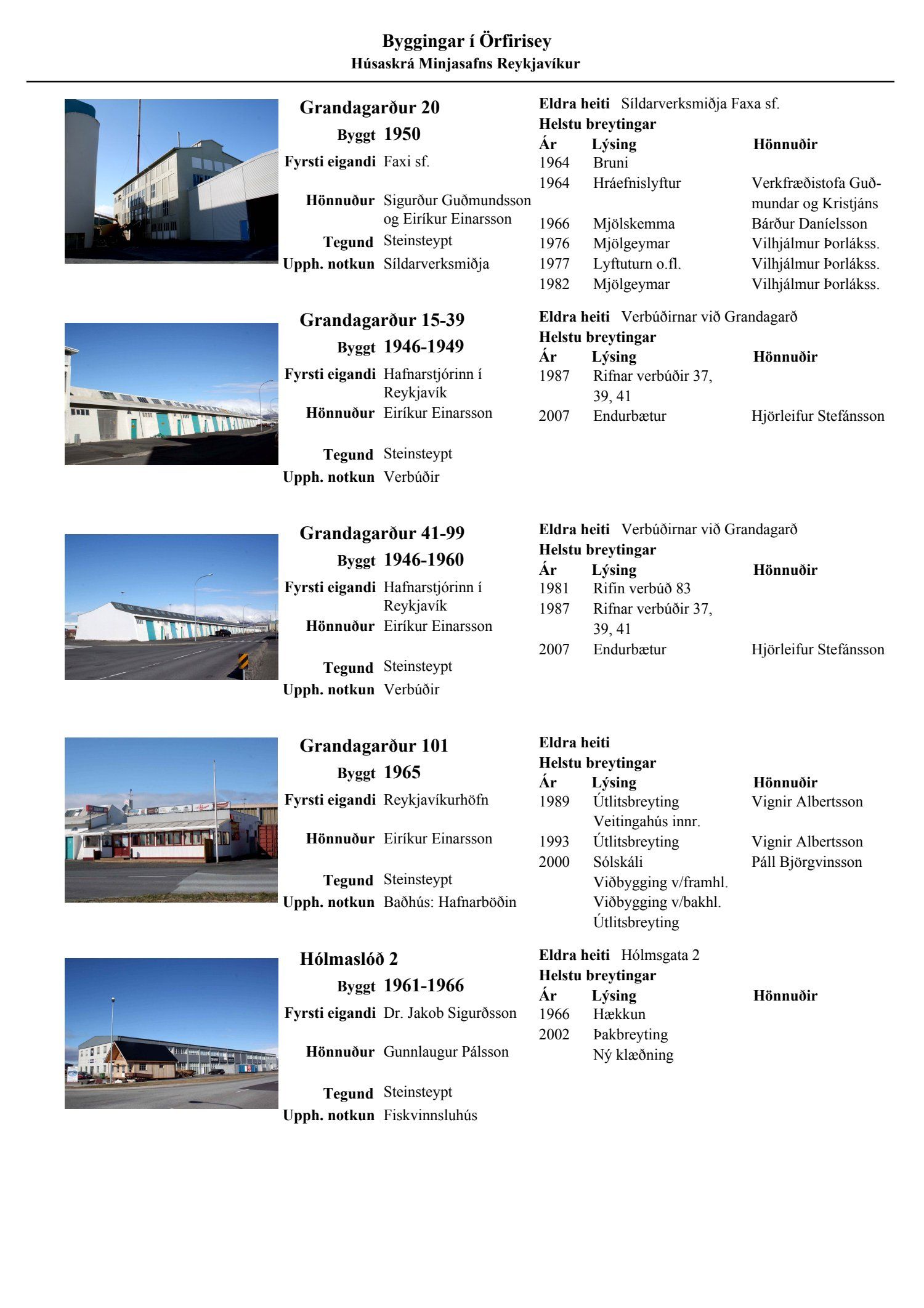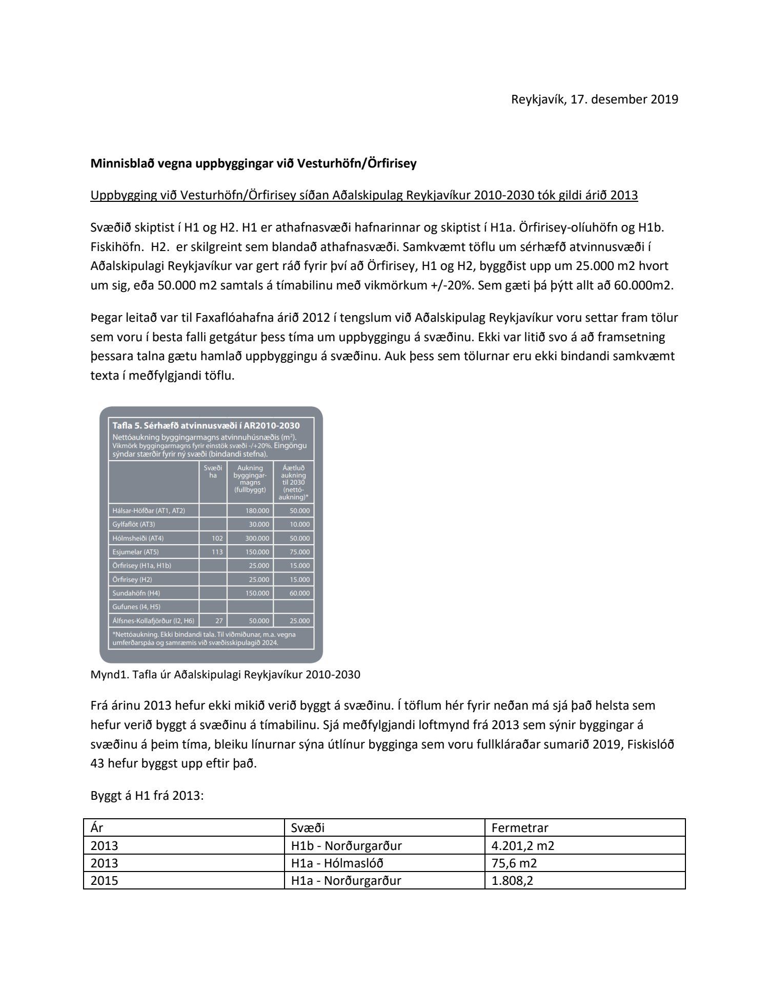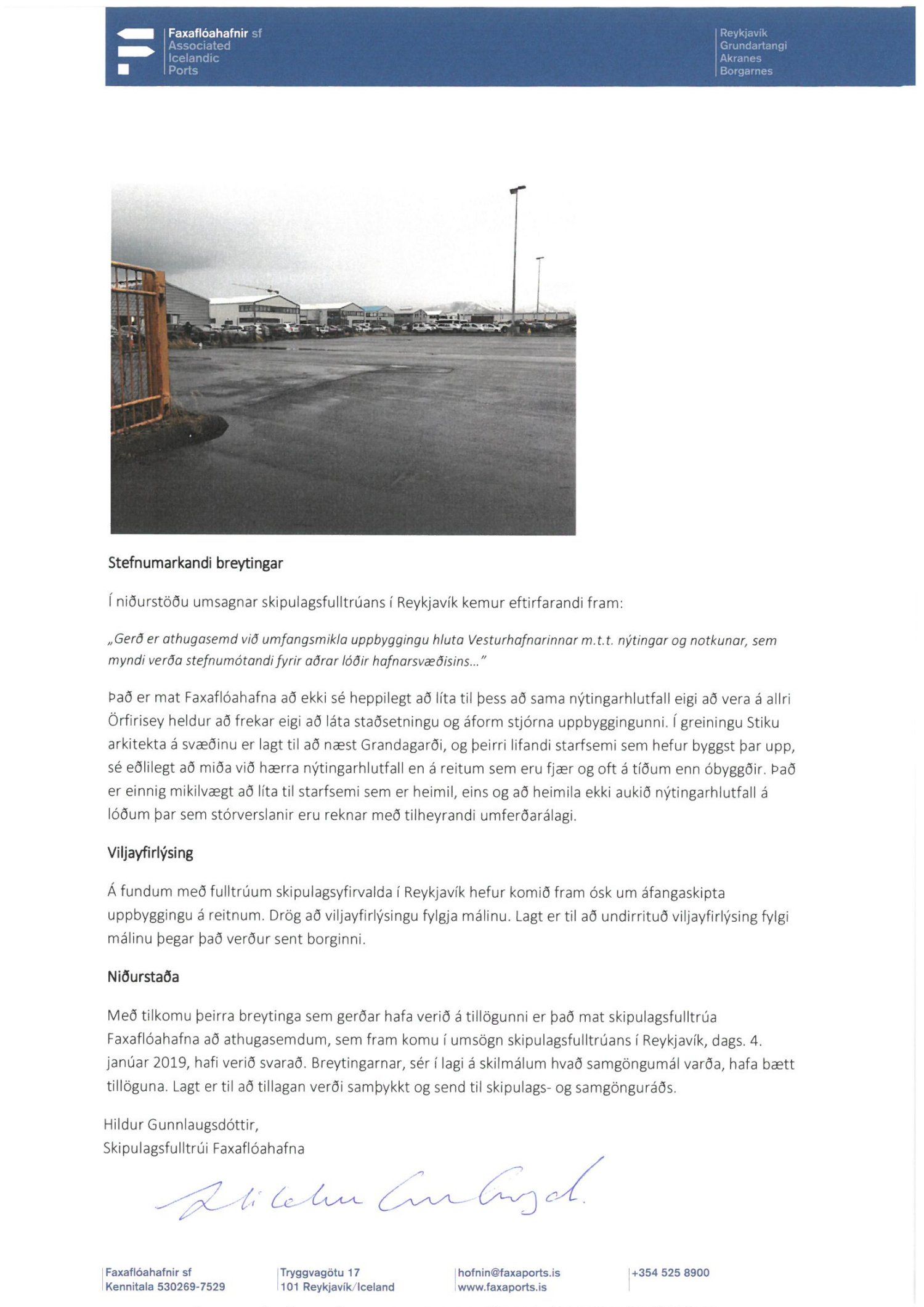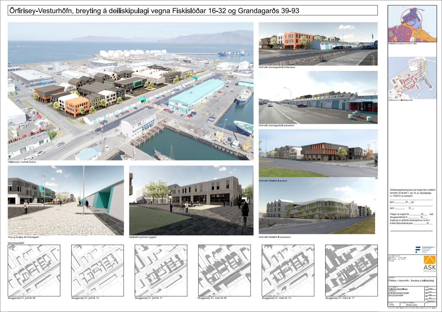 , dags. 5. september 2019, varðandi breytingu á deiliskipulagi Örfiriseyjar - Vesturhafnar vegna lóðanna nr. 16-32 við Fiskislóð og nr. 39-93 við Grandagarð. Í breytingunni felst að skipta svæðinu upp í fimm lóðir, niðurrifi eldri bygginga og byggingu nýrra og hærri húsa eða 2-4 hæðar ásamt byggingu bílastæðahúss fyrir um 300 bíla, samkvæmt uppdráttum