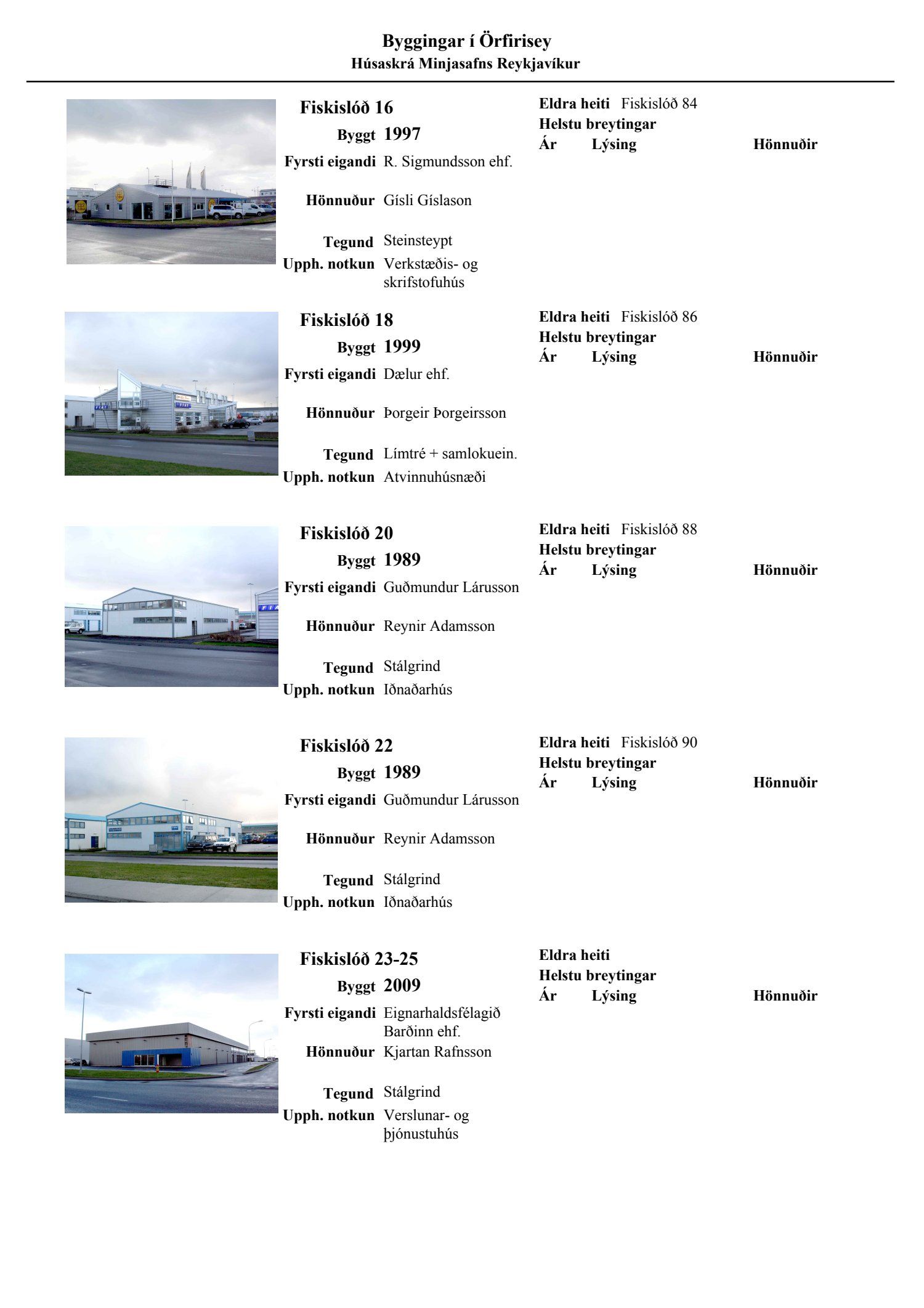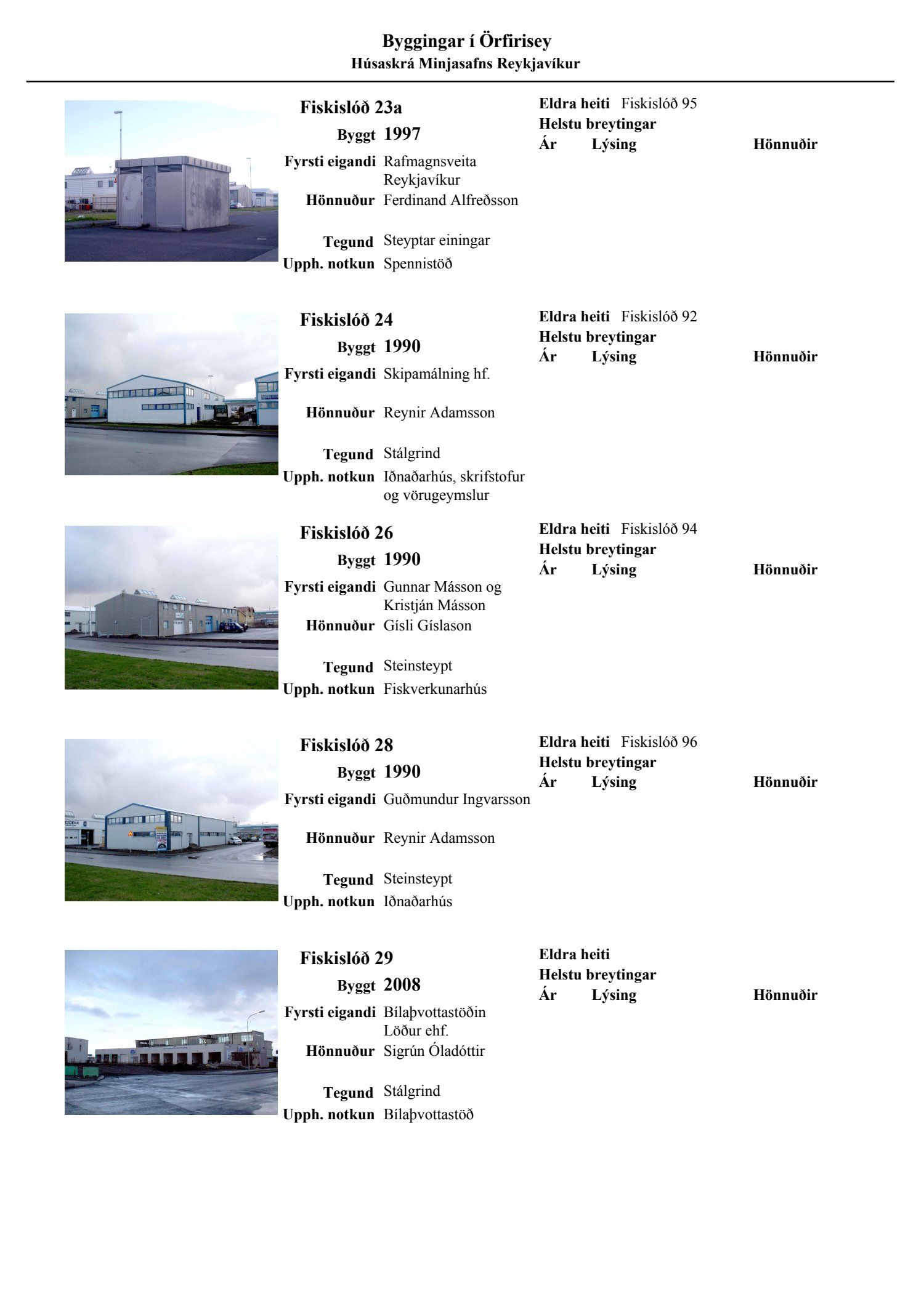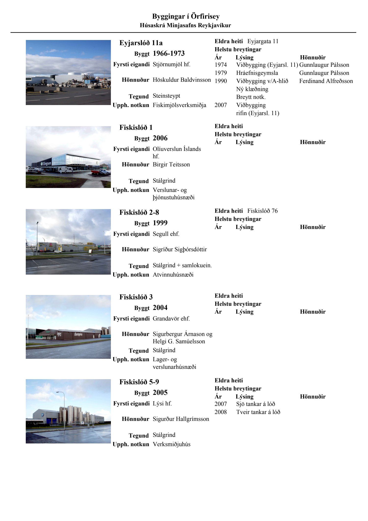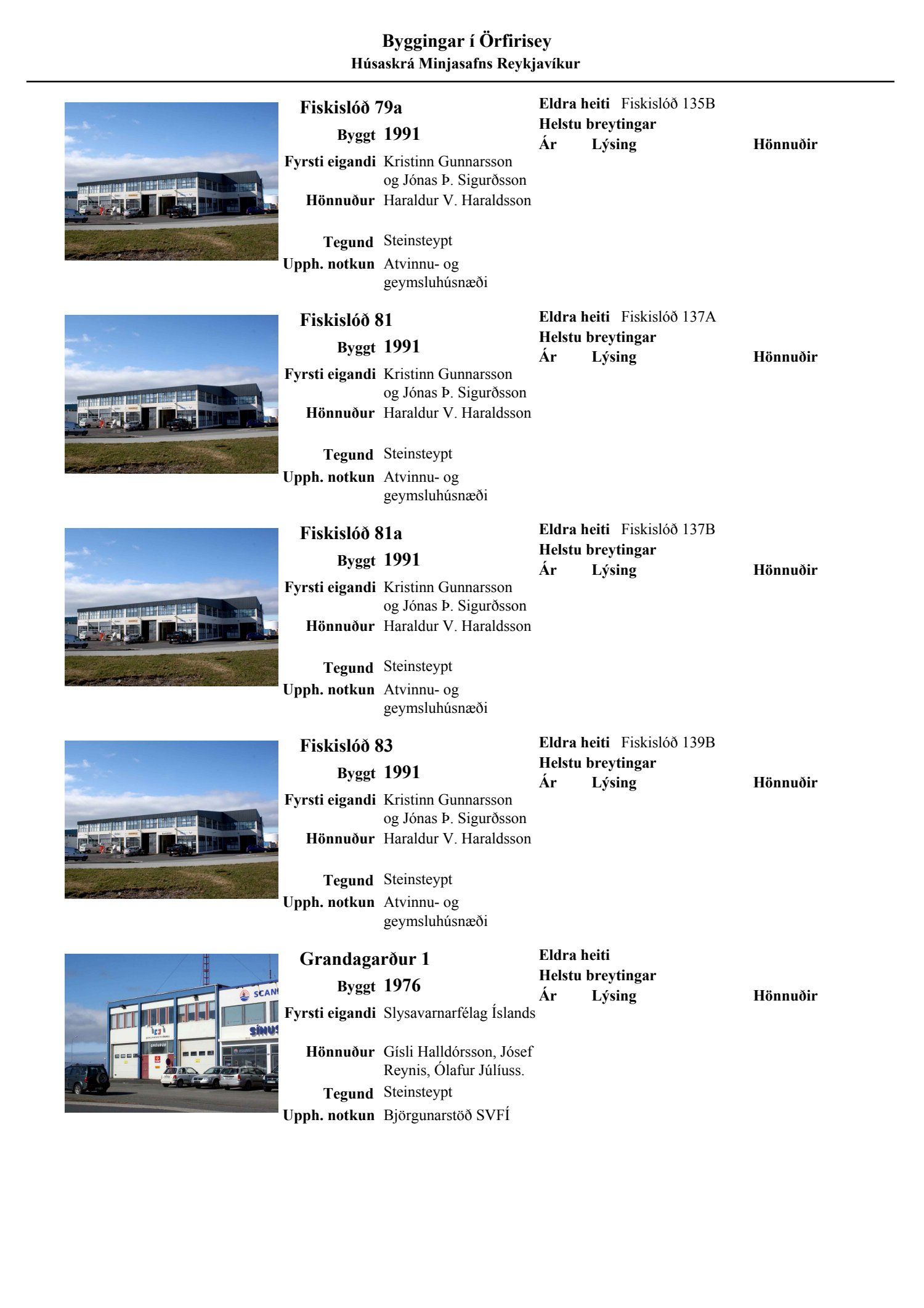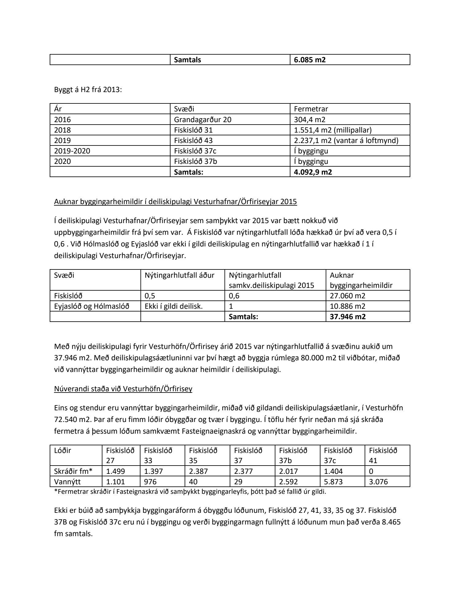 , dags. 5. september 2019, varðandi breytingu á deiliskipulagi Örfiriseyjar - Vesturhafnar vegna lóðanna nr. 16-32 við Fiskislóð og nr. 39-93 við Grandagarð. Í breytingunni felst að skipta svæðinu upp í fimm lóðir, niðurrifi eldri bygginga og byggingu nýrra og hærri húsa eða 2-4 hæðar ásamt byggingu bílastæðahúss fyrir um 300 bíla, samkvæmt uppdráttum