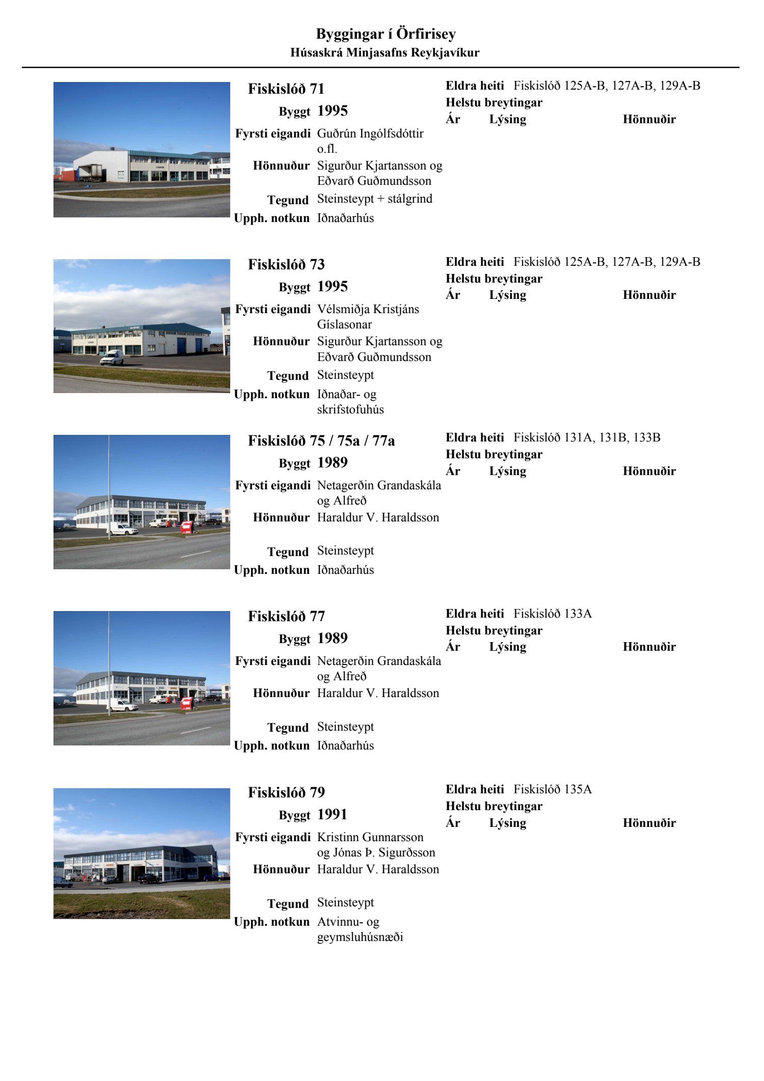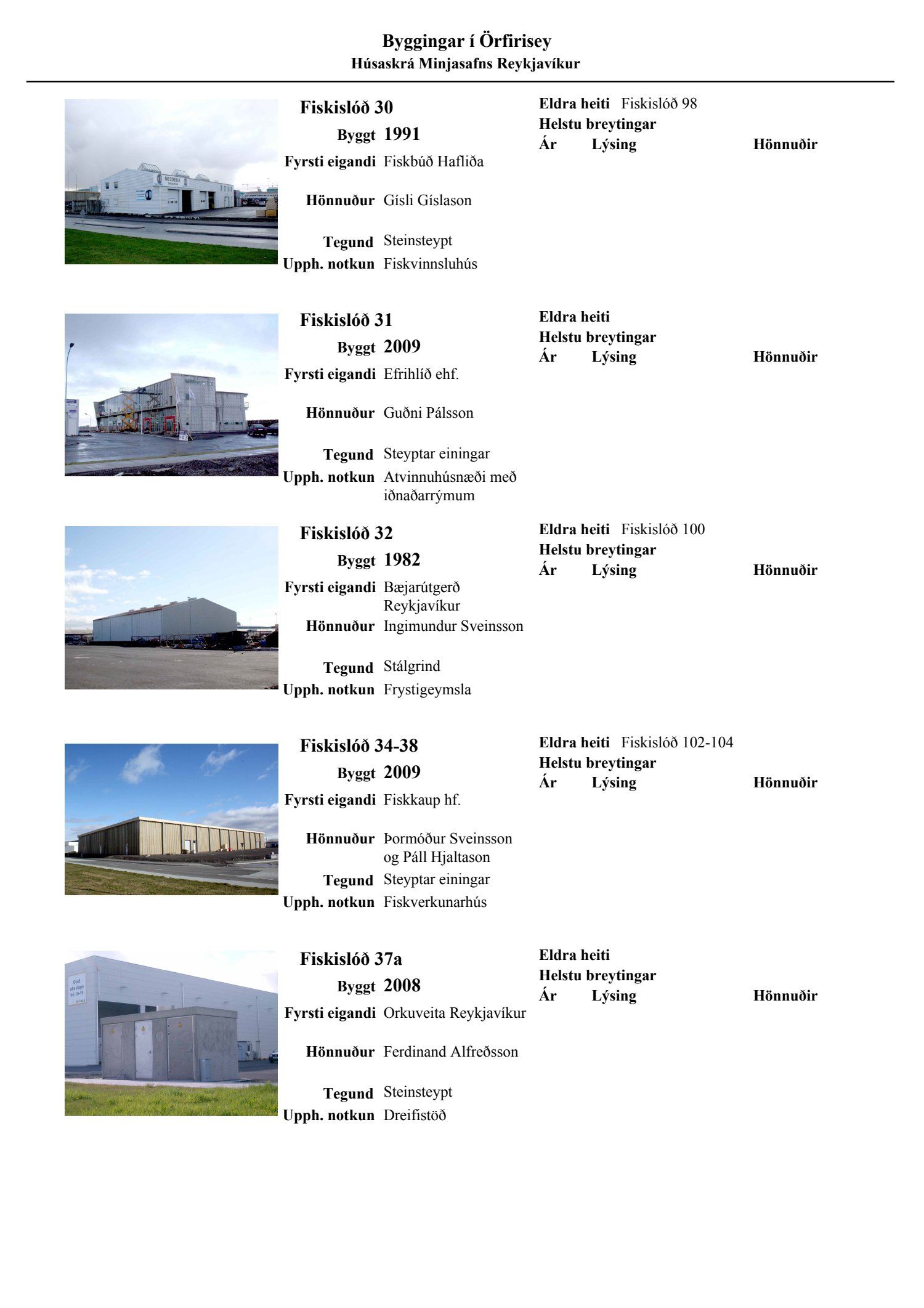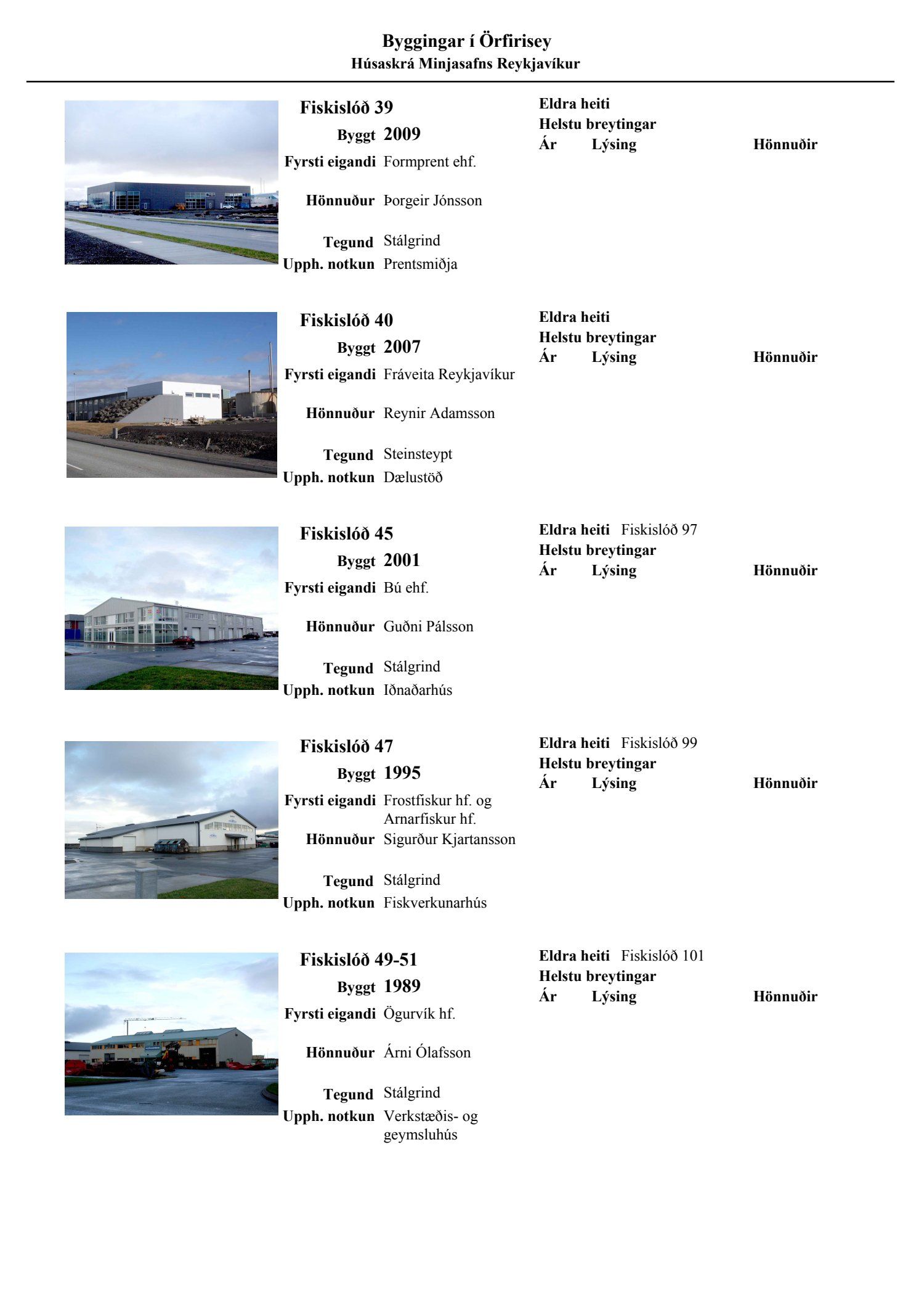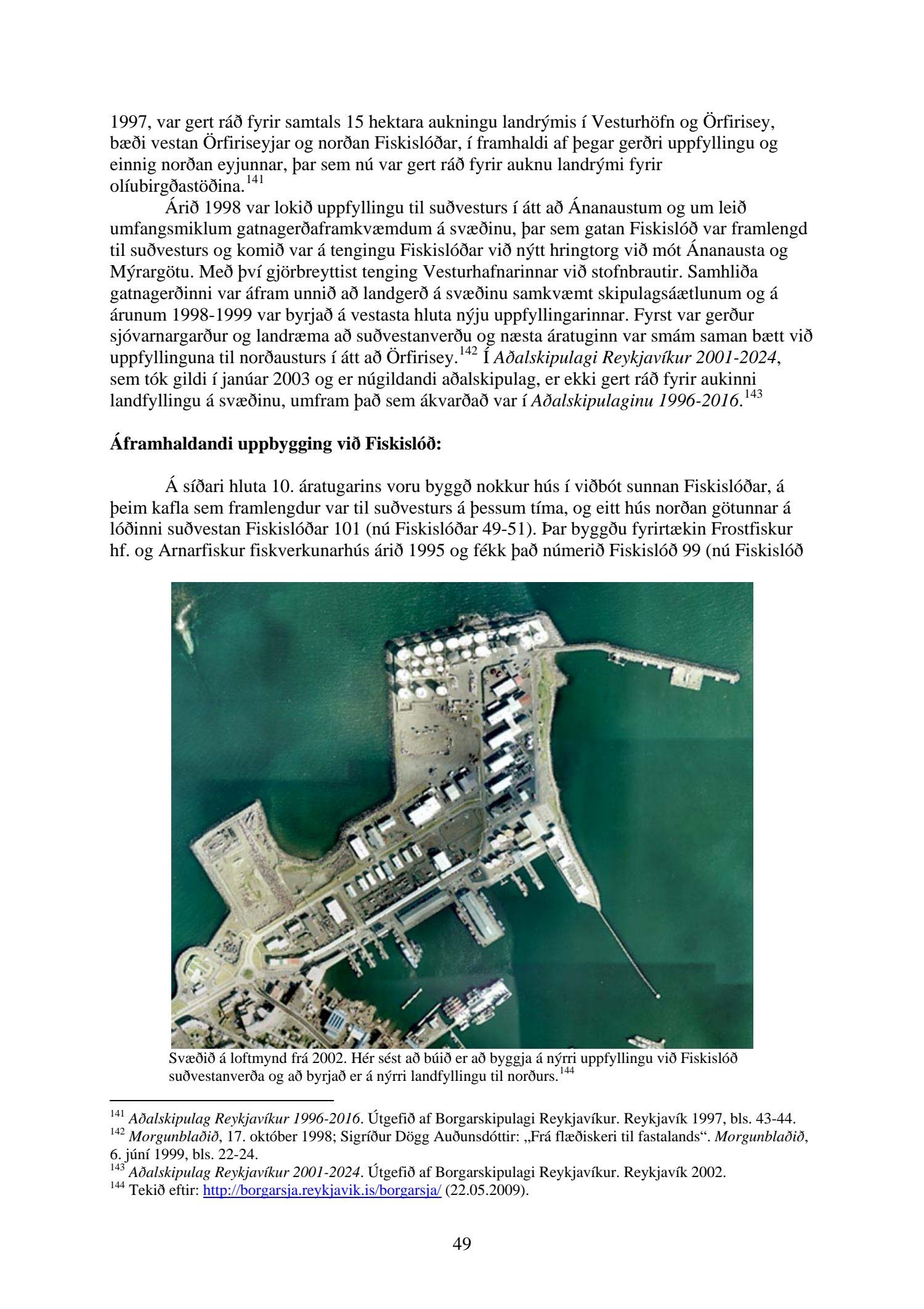, dags. 5. september 2019, varðandi breytingu á deiliskipulagi Örfiriseyjar - Vesturhafnar vegna lóðanna nr. 16-32 við Fiskislóð og nr. 39-93 við Grandagarð. Í breytingunni felst að skipta svæðinu upp í fimm lóðir, niðurrifi eldri bygginga og byggingu nýrra og hærri húsa eða 2-4 hæðar ásamt byggingu bílastæðahúss fyrir um 300 bíla, samkvæmt uppdráttum