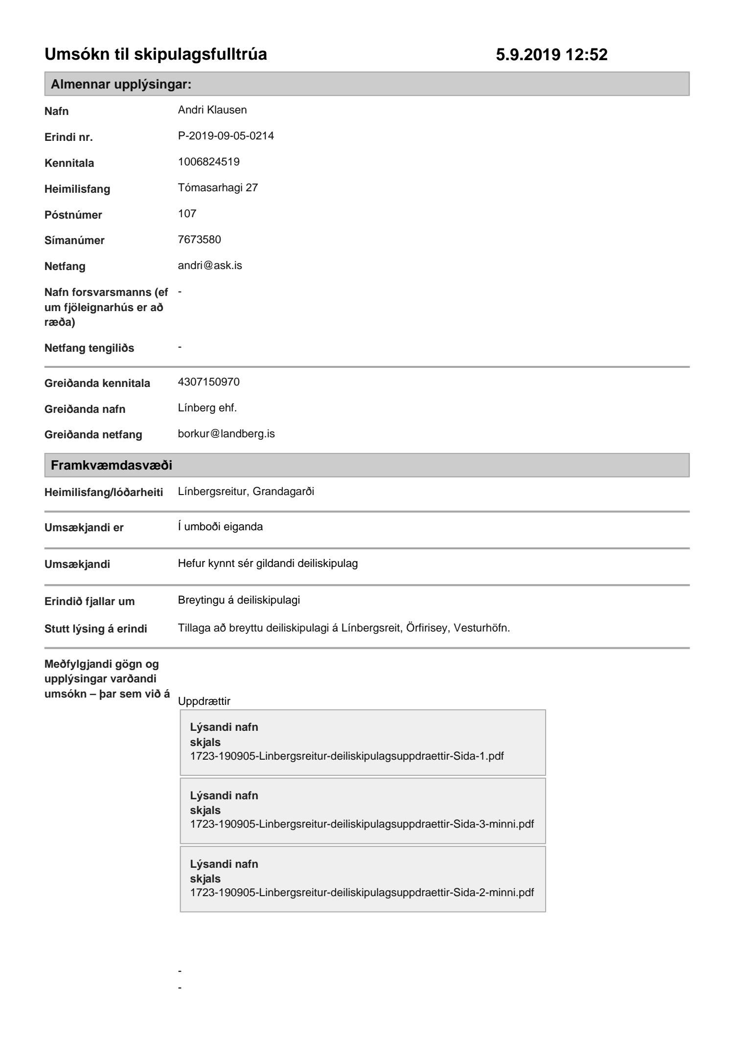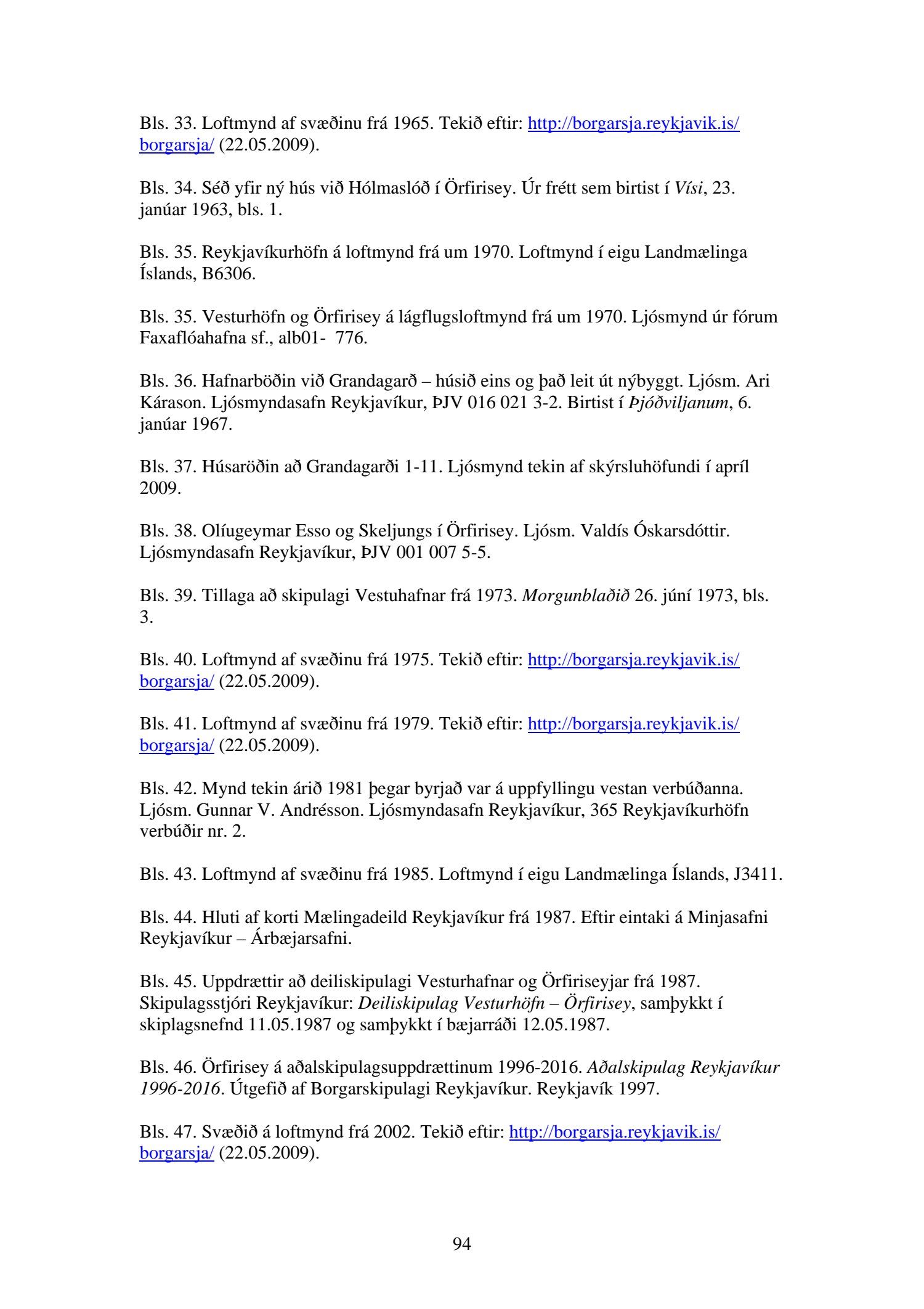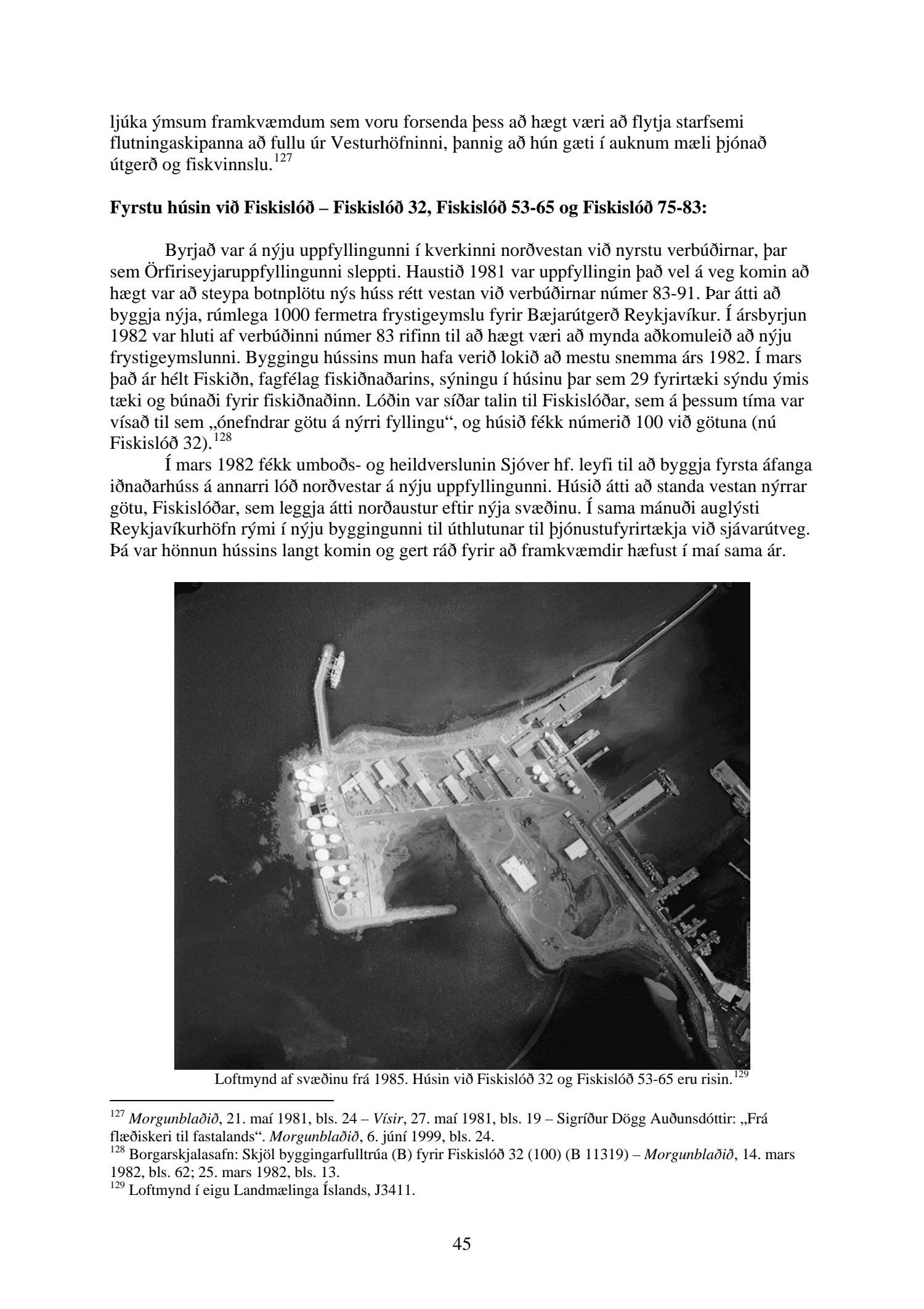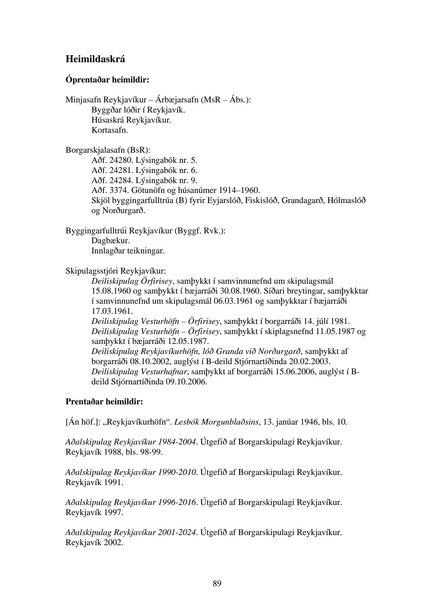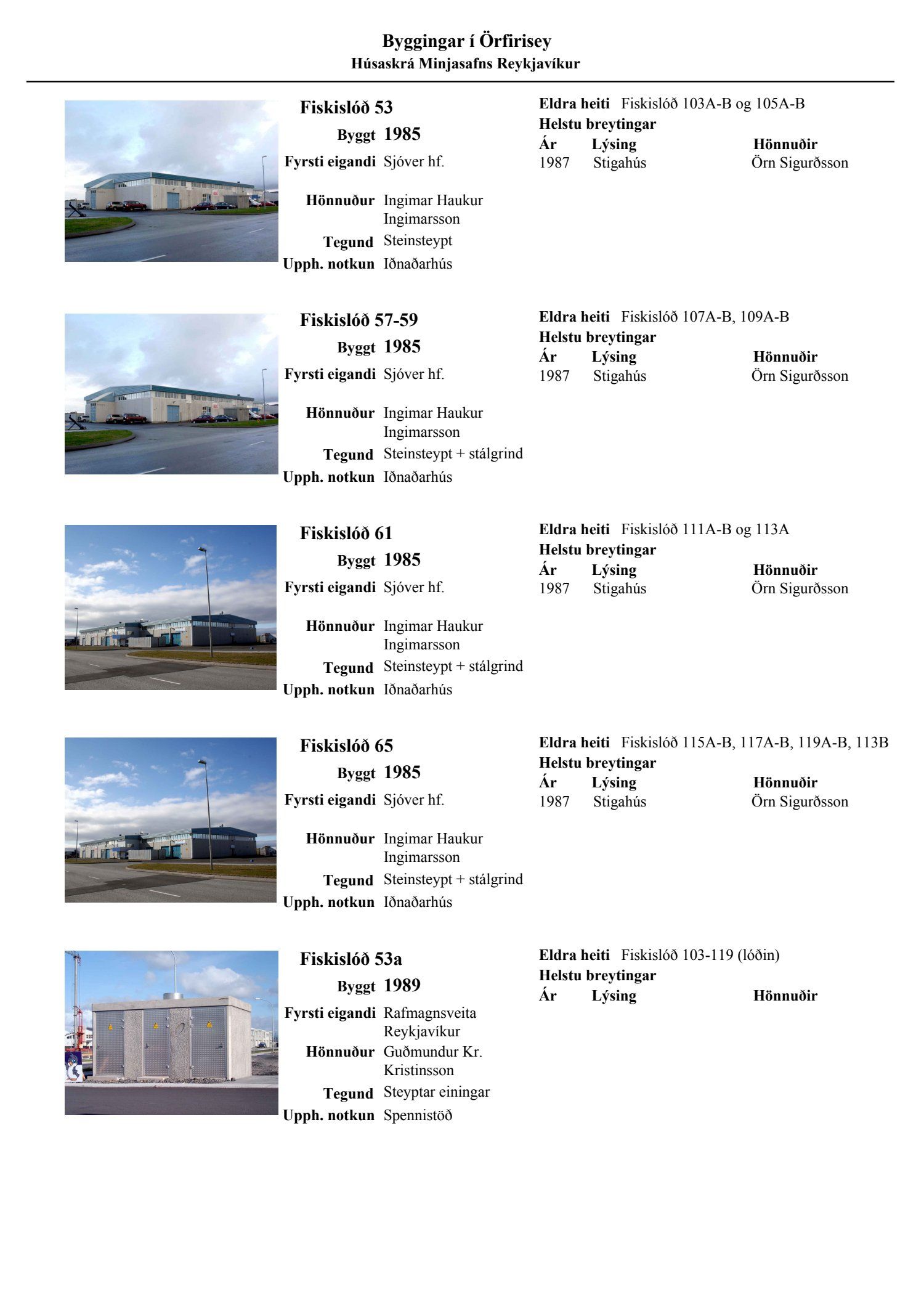 , dags. 5. september 2019, varðandi breytingu á deiliskipulagi Örfiriseyjar - Vesturhafnar vegna lóðanna nr. 16-32 við Fiskislóð og nr. 39-93 við Grandagarð. Í breytingunni felst að skipta svæðinu upp í fimm lóðir, niðurrifi eldri bygginga og byggingu nýrra og hærri húsa eða 2-4 hæðar ásamt byggingu bílastæðahúss fyrir um 300 bíla, samkvæmt uppdráttum
