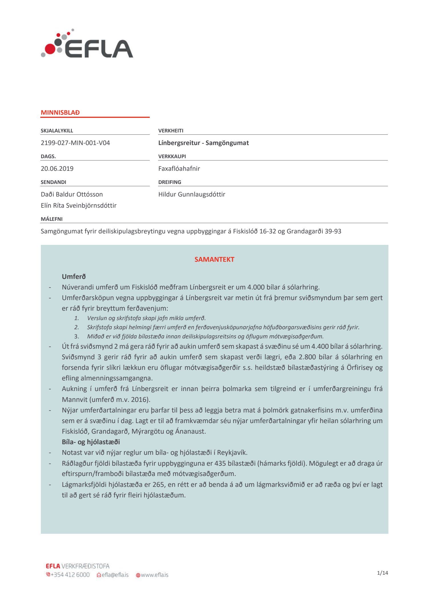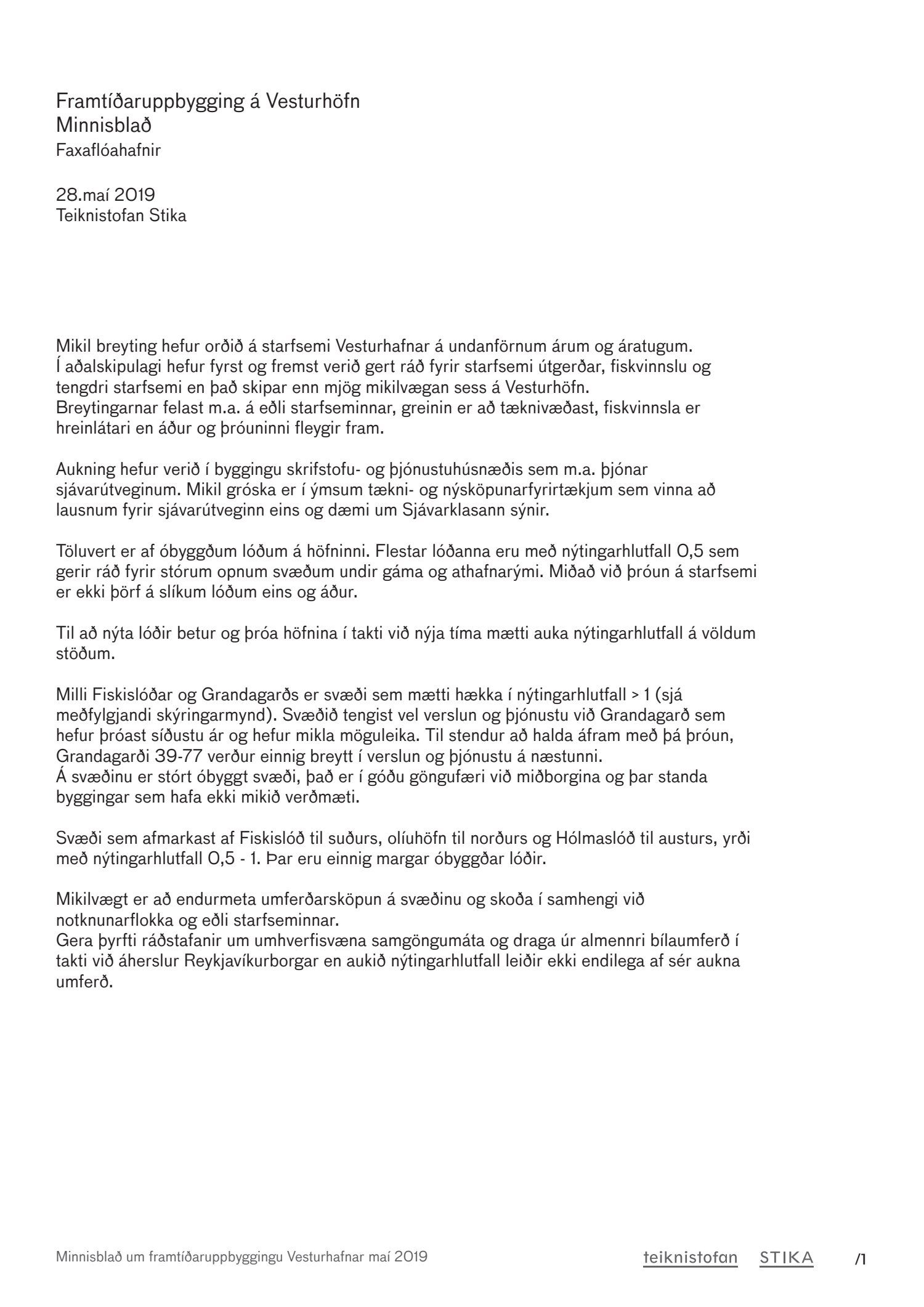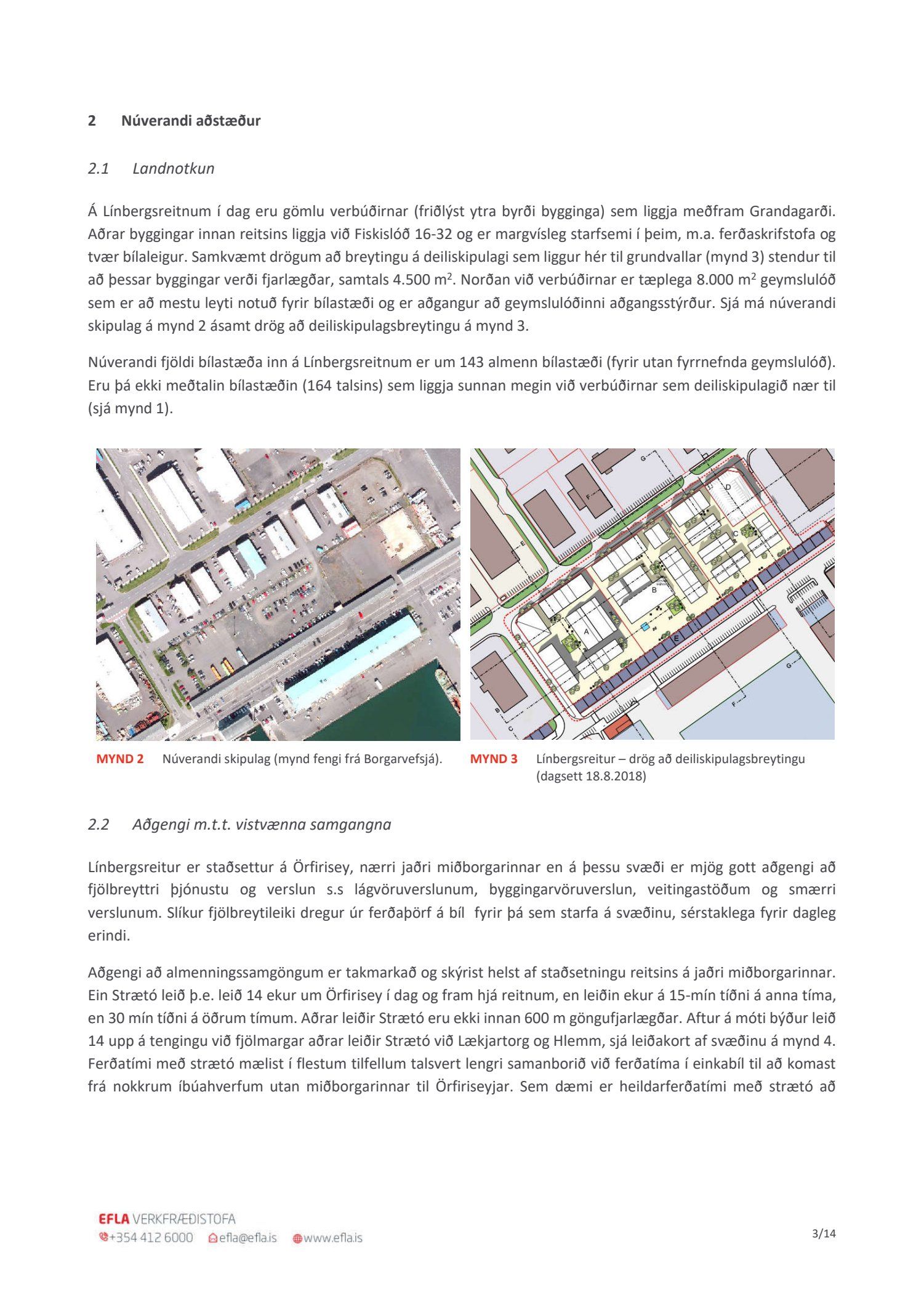 dags. 18. ágúst 2018. Einnig er lögð fram húsakönnun fyrir Örfirisey og Granda dags. 2009, minnisblað teiknistofunnar Stiku dags. 28. maí 2019, minnisblað Eflu dags. 20. júní 2019, tvær skýringamyndir teiknistofunnar Stiku ódags., og kynningarhefti