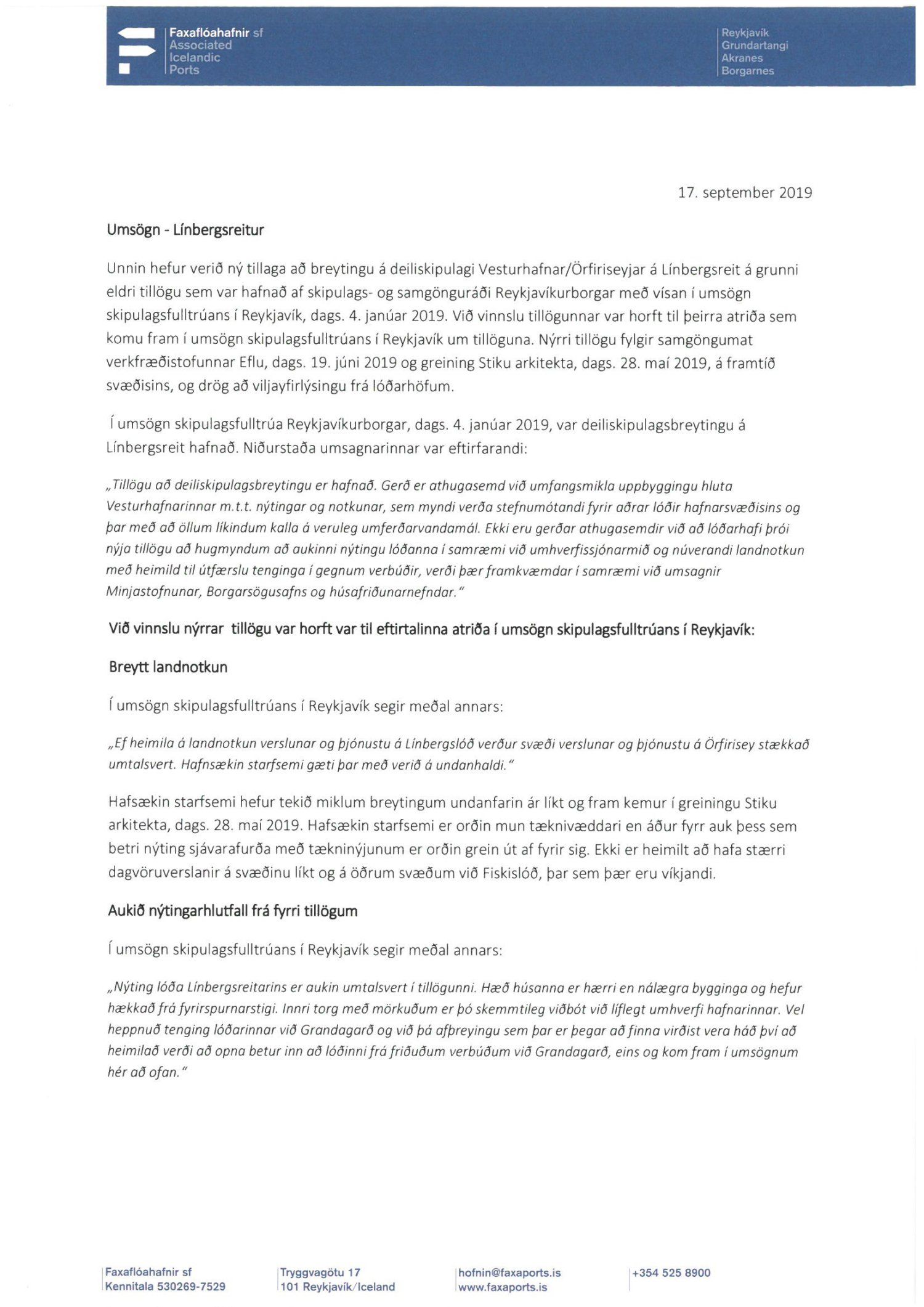 dags. 20. september 2019 og minnisblað Faxaflóahafna fs. dags. 25. maí 2020.