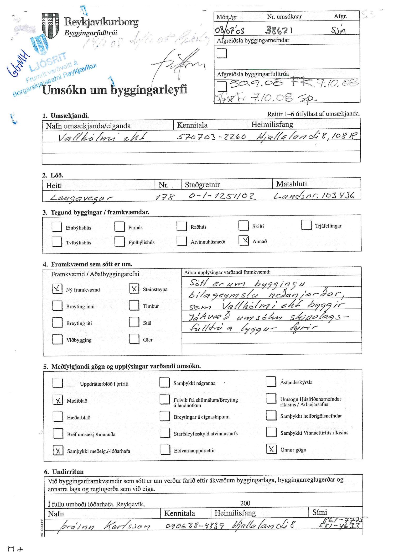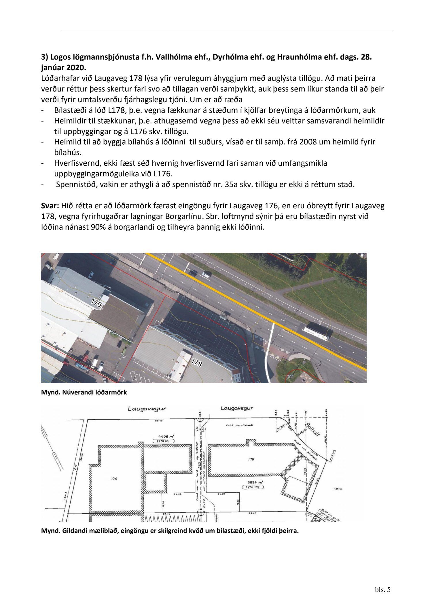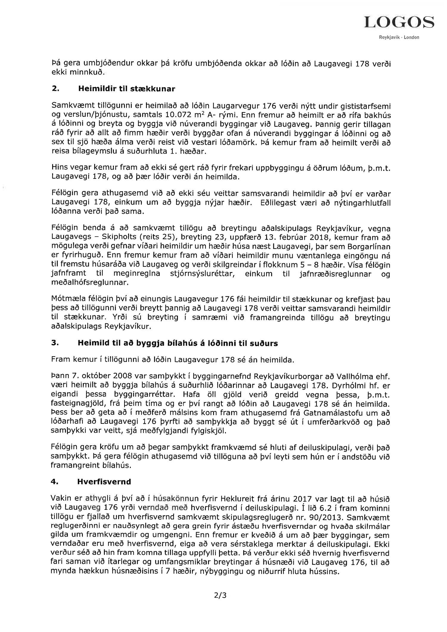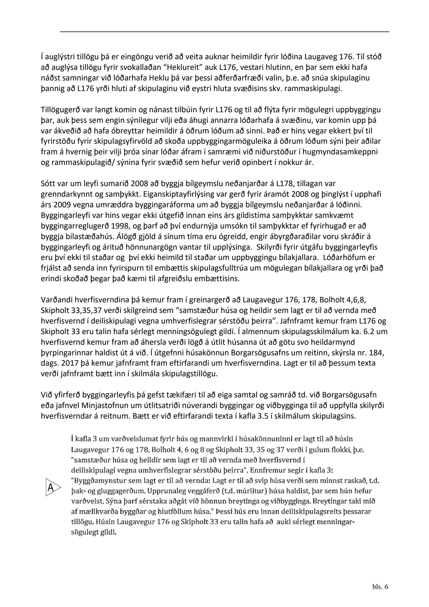 dags. 6. september 2019 br. 3. mars 2020. Tillagan var auglýst frá 16. desember 2019 til og með 29. janúar 2020. Eftirtaldir aðilar sendu athugasemdir/umsögn: Ingibergur Sigurðsson dags. 15. janúar 2020, Local lögmenn f.h. Tannlækninga ehf., Tannheils ehf., Laser-Tannlæknastofu ehf og Sigfúsar Haraldssonar dags. 24. janúar 2020, Logos lögmannsþjónusta f.h. Vallhólma ehf., Dyrhólma ehf. og Hraunhólma ehf. dags. 28. janúar 2020, Veitur dags. 28. janúar 2020 og Íbúaráð Miðborgar og Hlíða dags. 29. janúar 2020. Einnig er lögð fram eignaskiptayfirlýsingu vegna bílastæðahúss dags. 18. desember 2008 og framsal samkomulags frá Vallhólma til Dyrhólma til byggingar bílastæðahúss dags. 26. janúar 2009. Einnig er lögð fram umsögn skipulagsfulltrúa dags. 6. mars 2020.