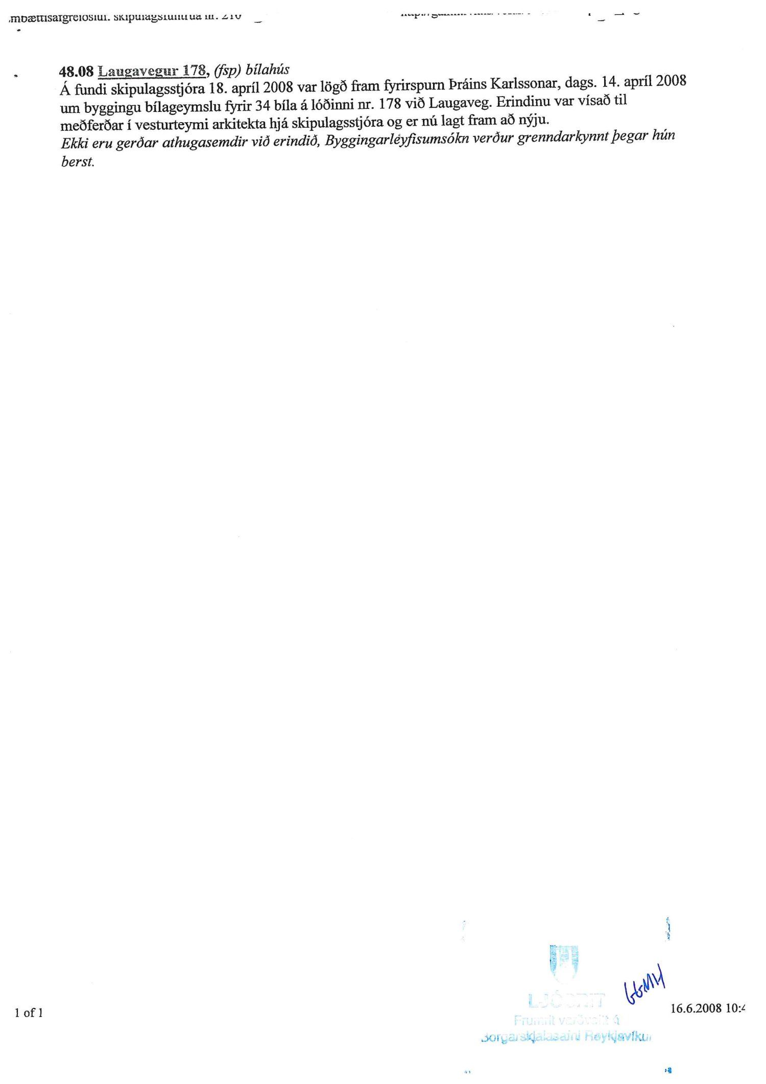 að nýju deiliskipulagi fyrir reit sem afmarkast af Laugavegi til norðurs, Bolholti til austurs, Skipholti til suðurs og Laugavegi 174 og Skipholti 31 til vesturs. Gert er ráð fyrir uppbyggingu á lóðinni Laugavegur 176 vegna fyrirhugaðs hótels, en aðrar lóðir á skipulagsreitnum verða skilgreindar sem óbreyttar lóðir þar sem núverandi ástand er óbreytt samkvæmt uppdráttum