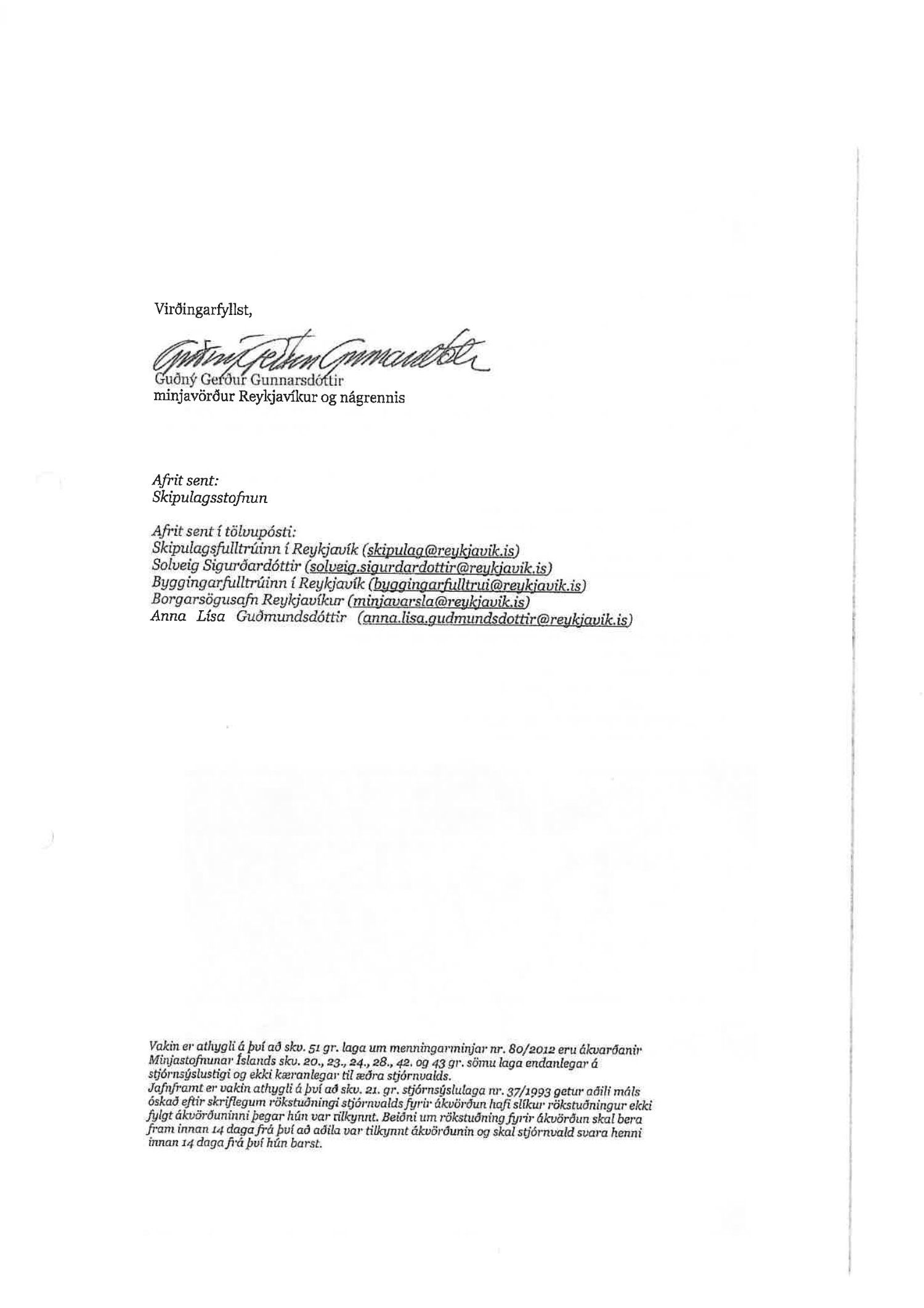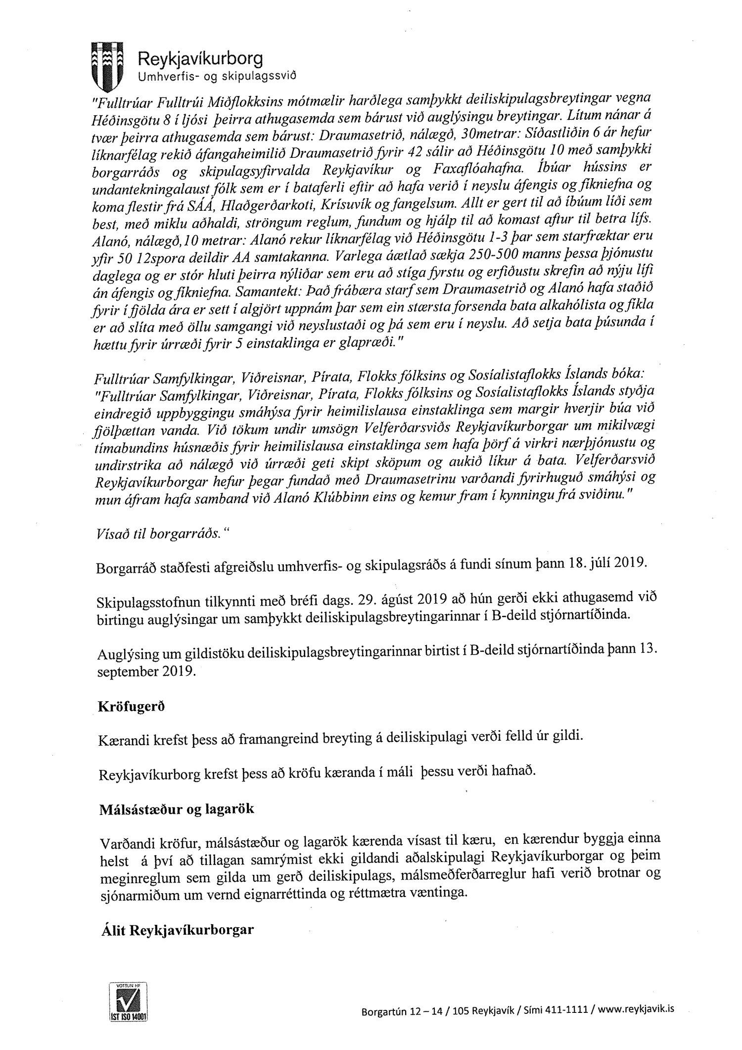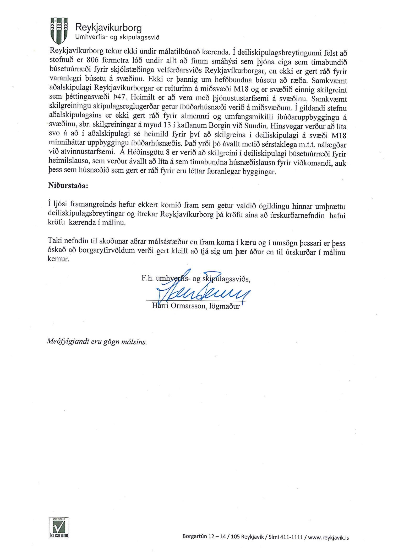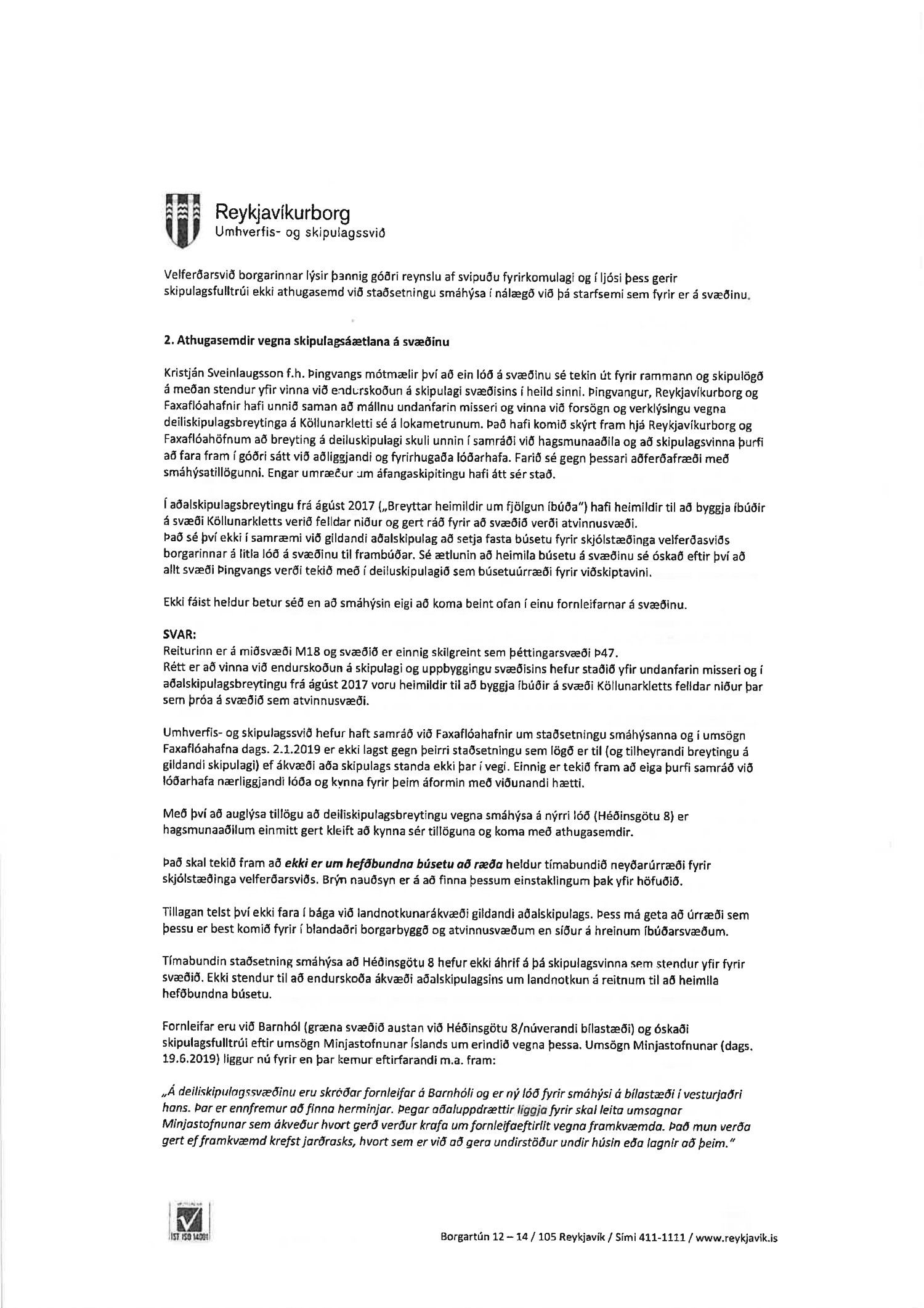 Lagt fram erindi úrskurðarnefndar umhverfis- og auðlindamála dags. 16. ágúst 2019 ásamt kæru dags. 15. ágúst 2019 þar sem kærð er samþykkt skipulags- og samgönguráðs frá 3. júlí 2019 á tillögu að breytingu á deiliskipulagi Köllunarkletts. Einnig er lögð fram umsögn skrifstofu sviðsstjóra dags. 28. október 2019.