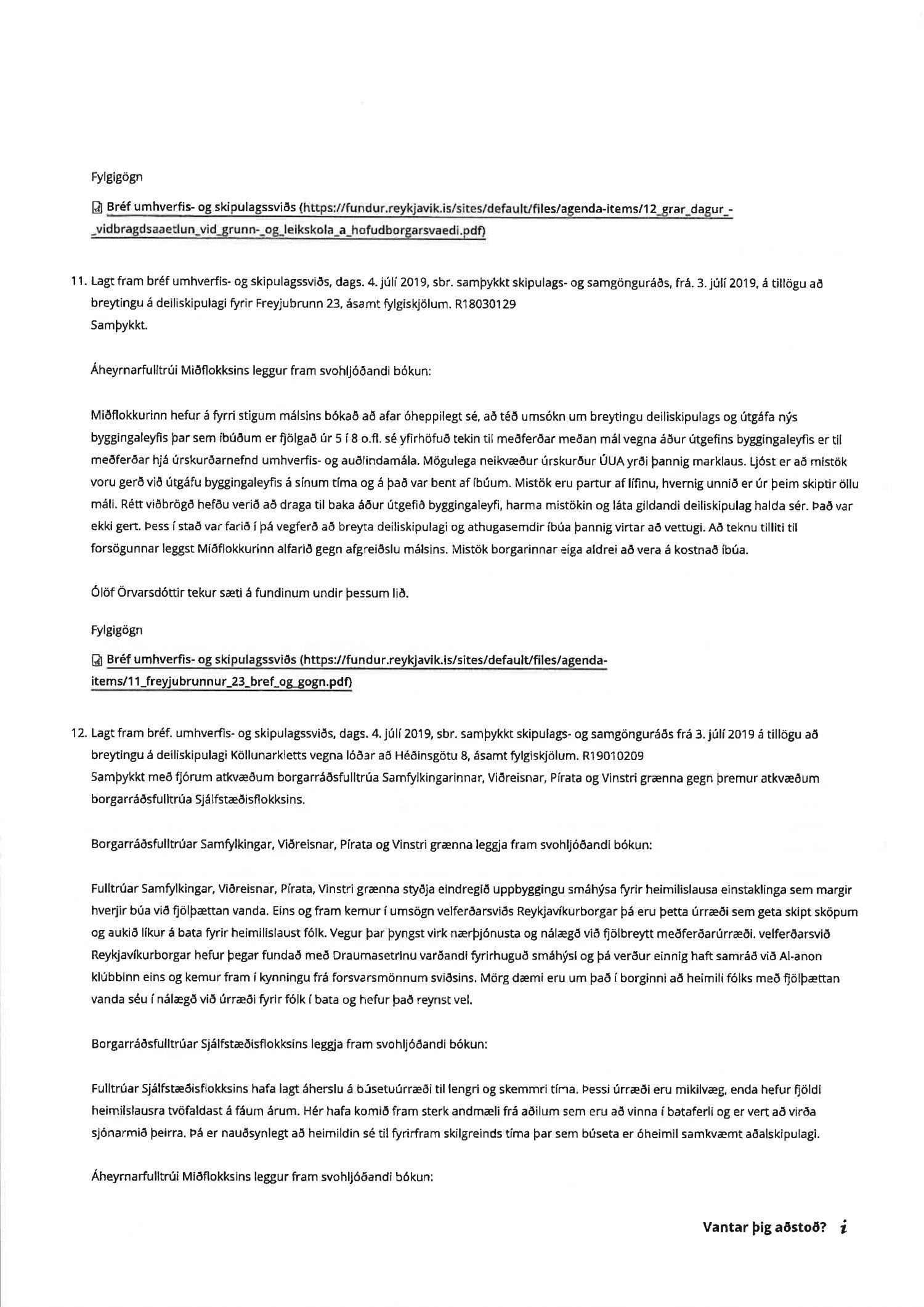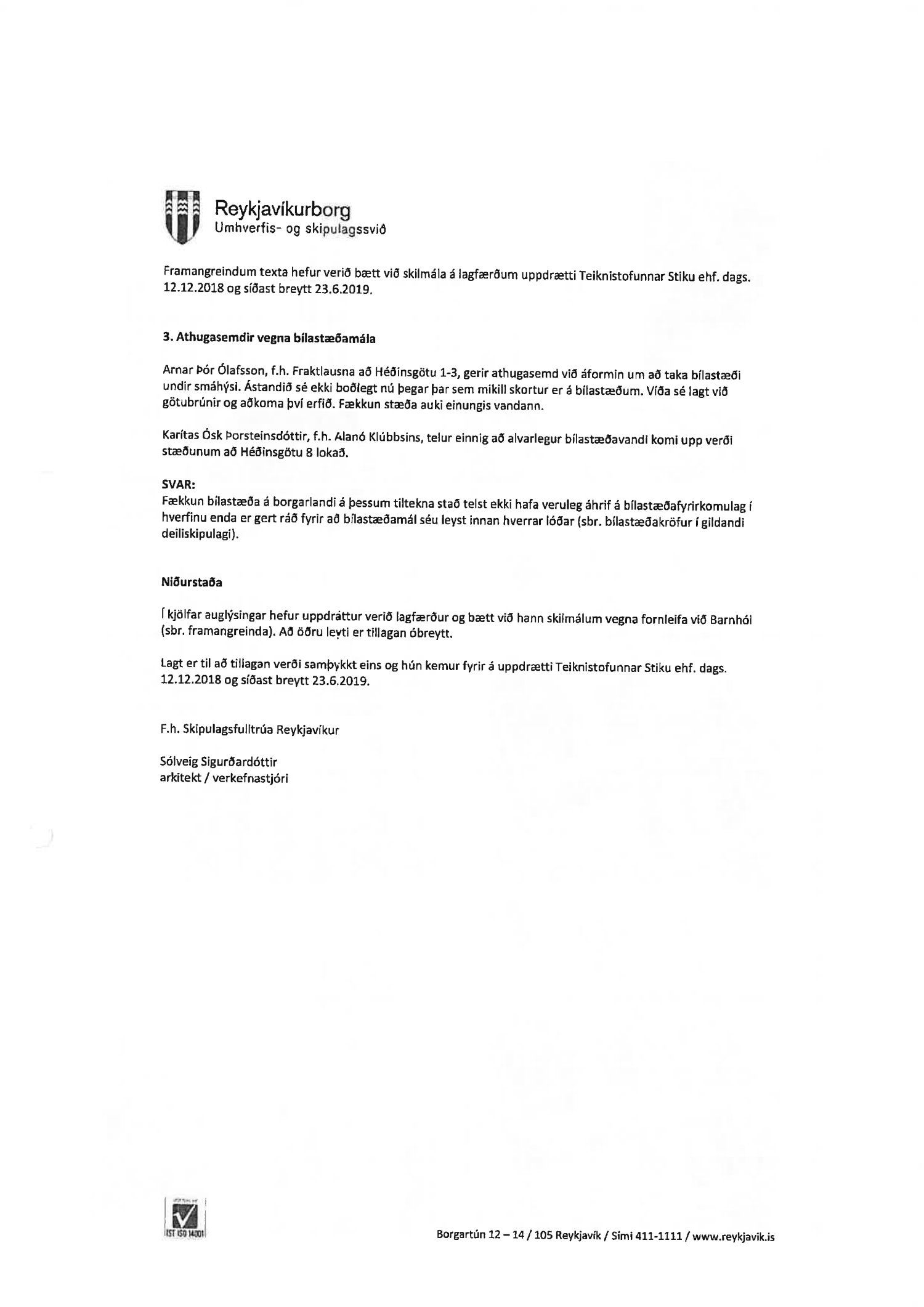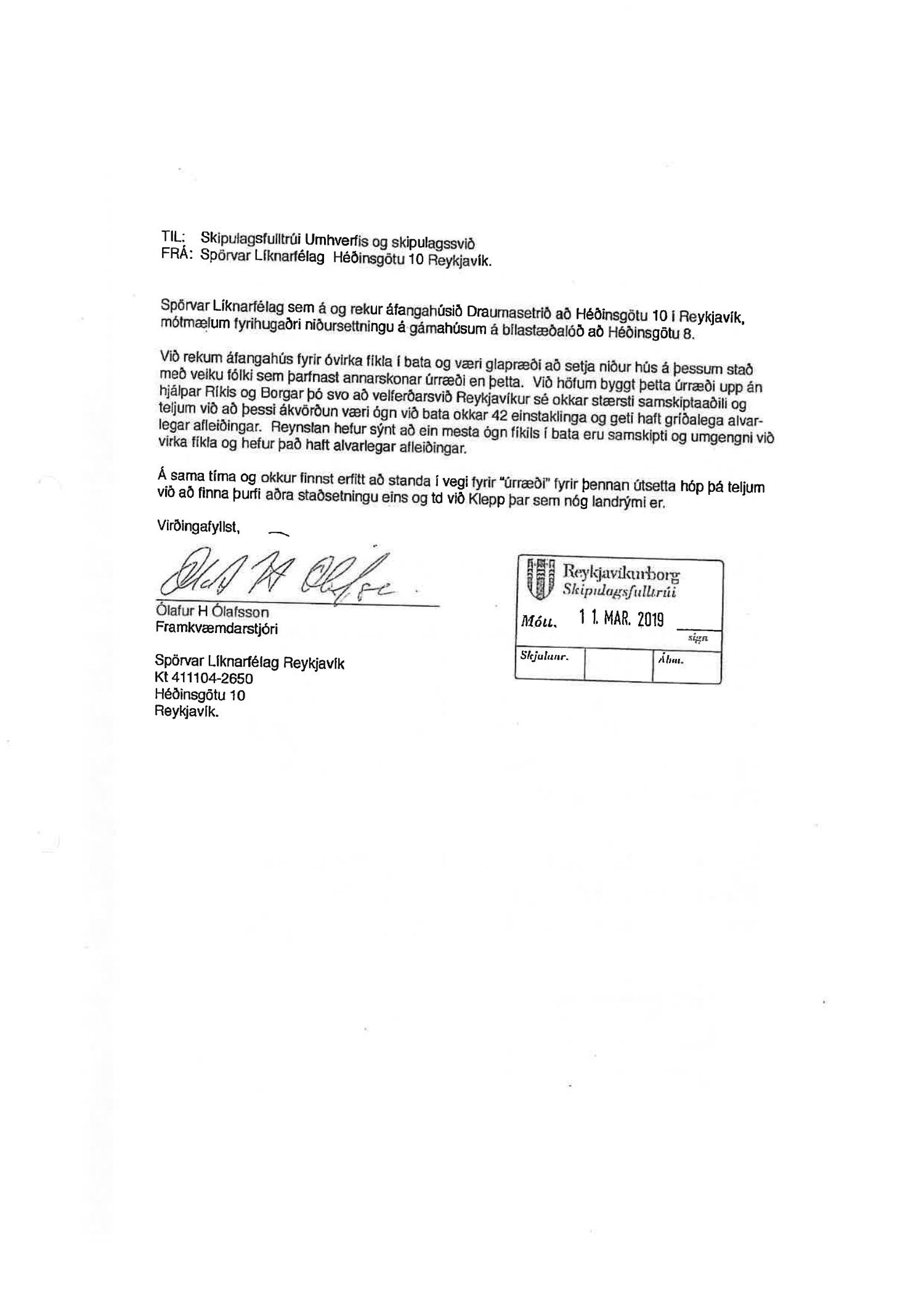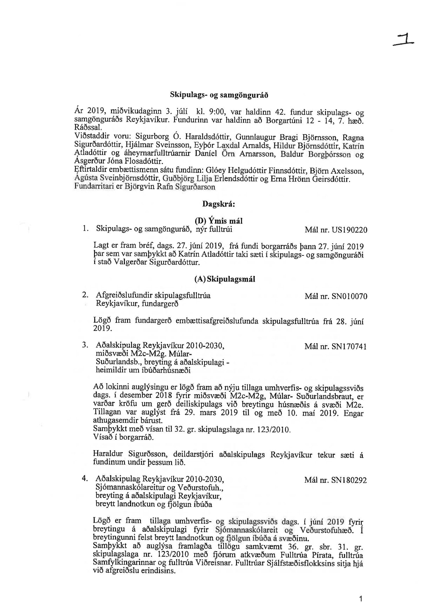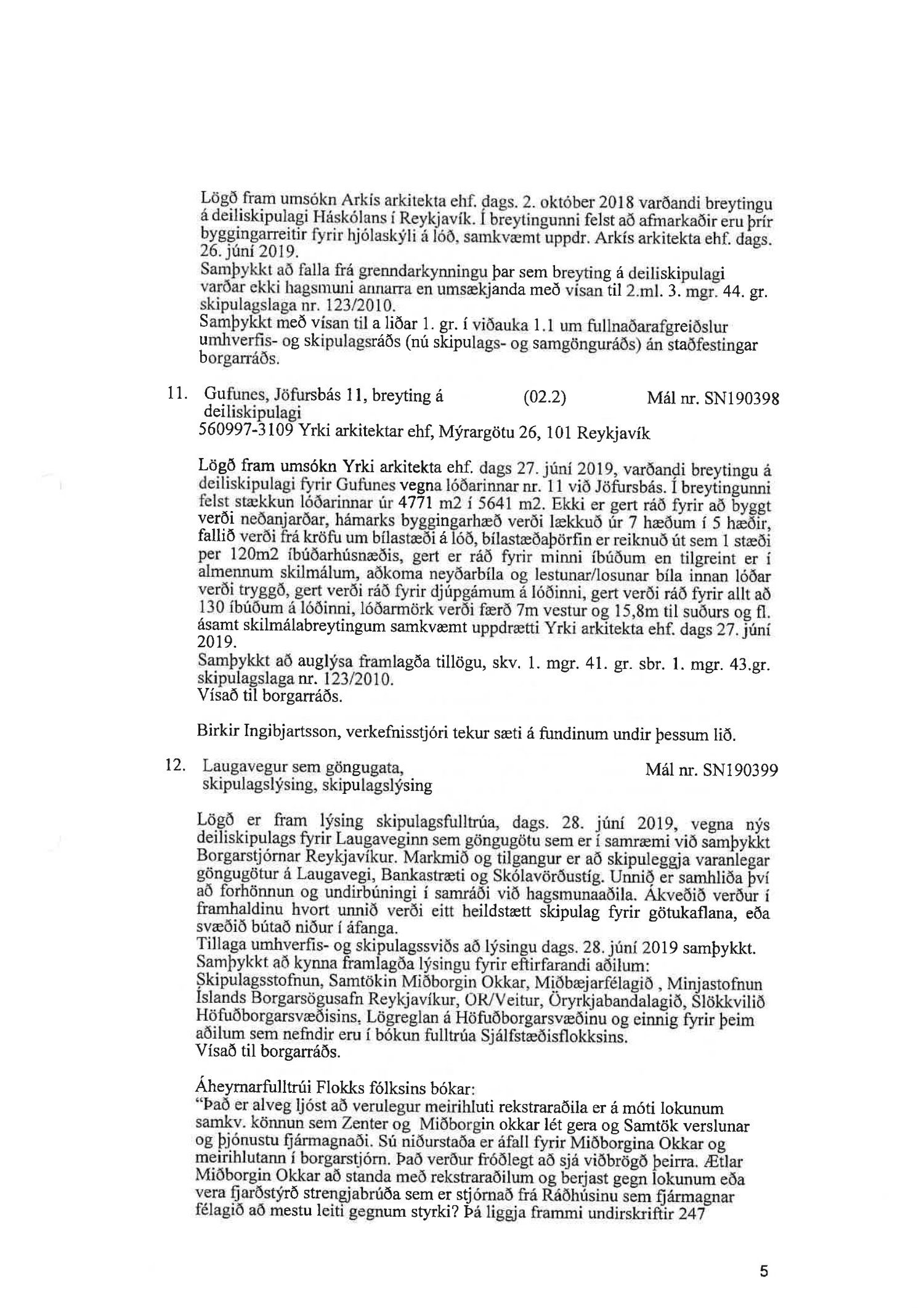 Lagt fram erindi úrskurðarnefndar umhverfis- og auðlindamála dags. 16. ágúst 2019 ásamt kæru dags. 15. ágúst 2019 þar sem kærð er samþykkt skipulags- og samgönguráðs frá 3. júlí 2019 á tillögu að breytingu á deiliskipulagi Köllunarkletts. Einnig er lögð fram umsögn skrifstofu sviðsstjóra dags. 28. október 2019.