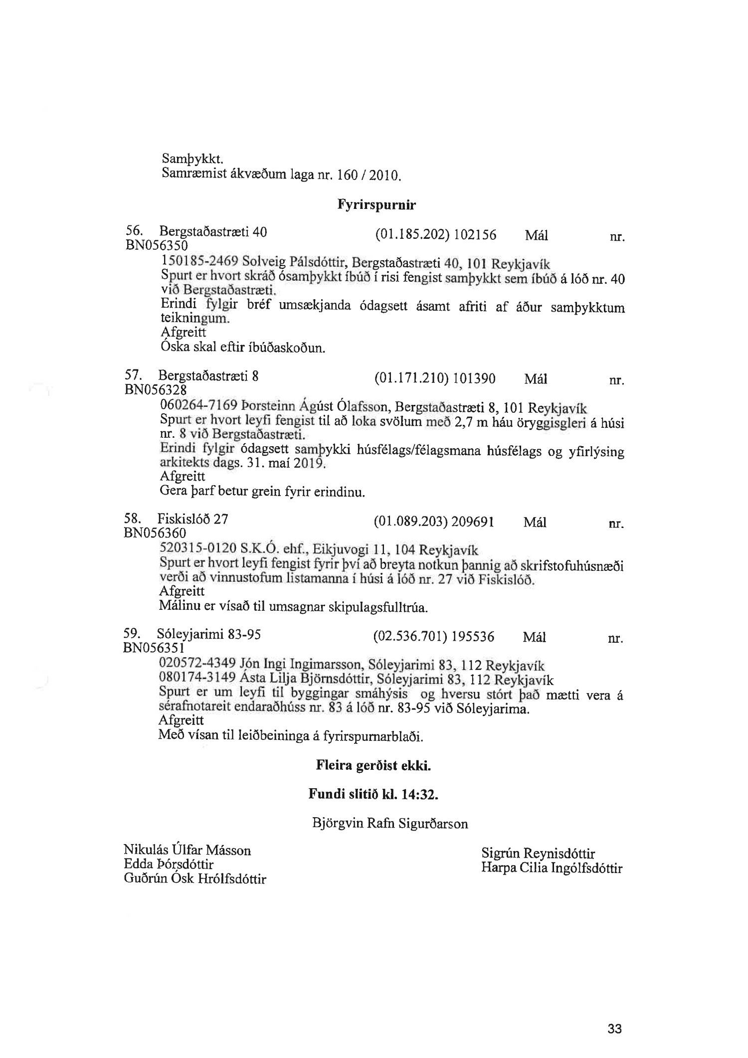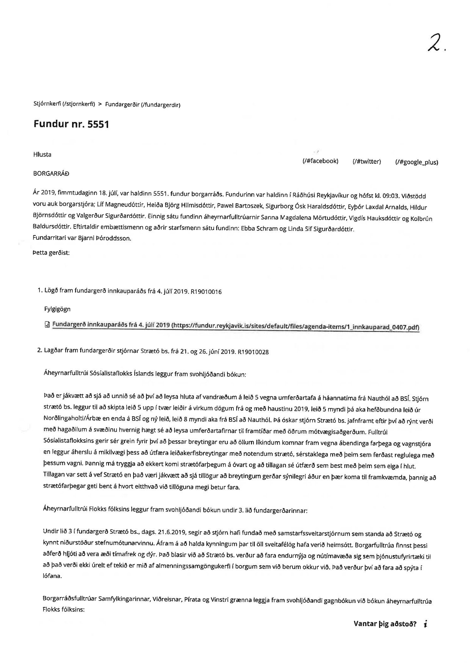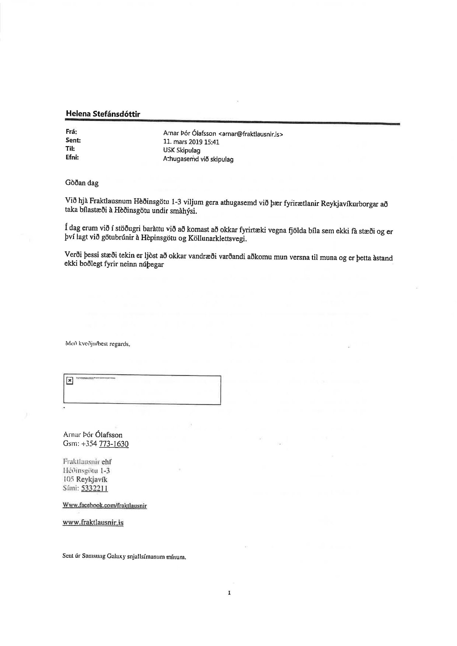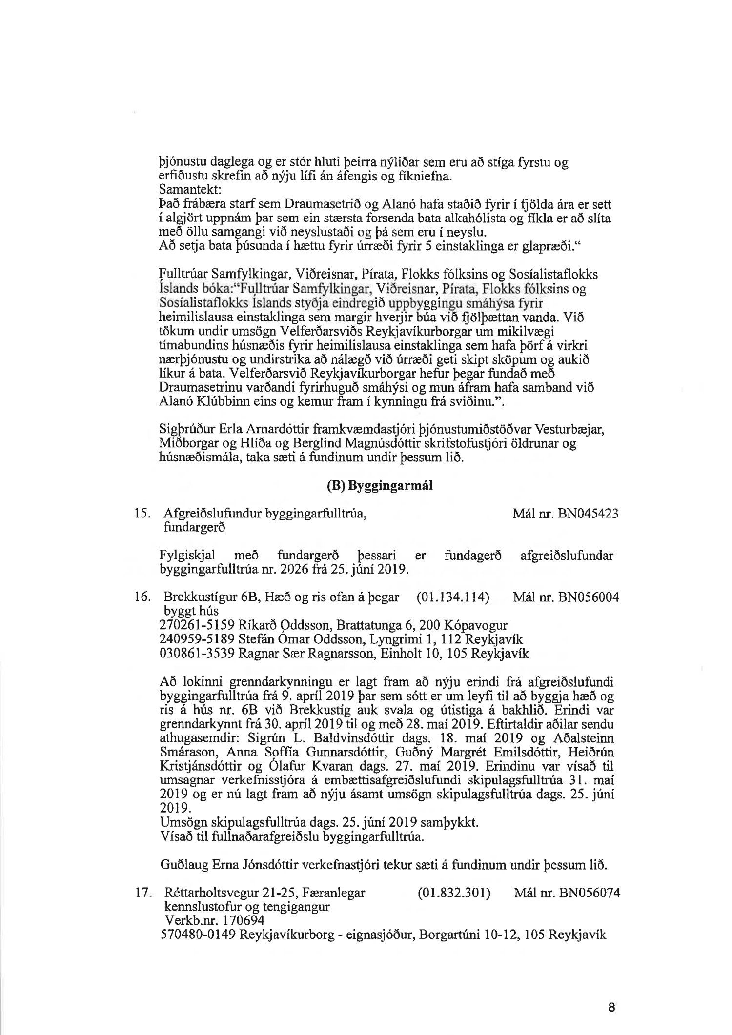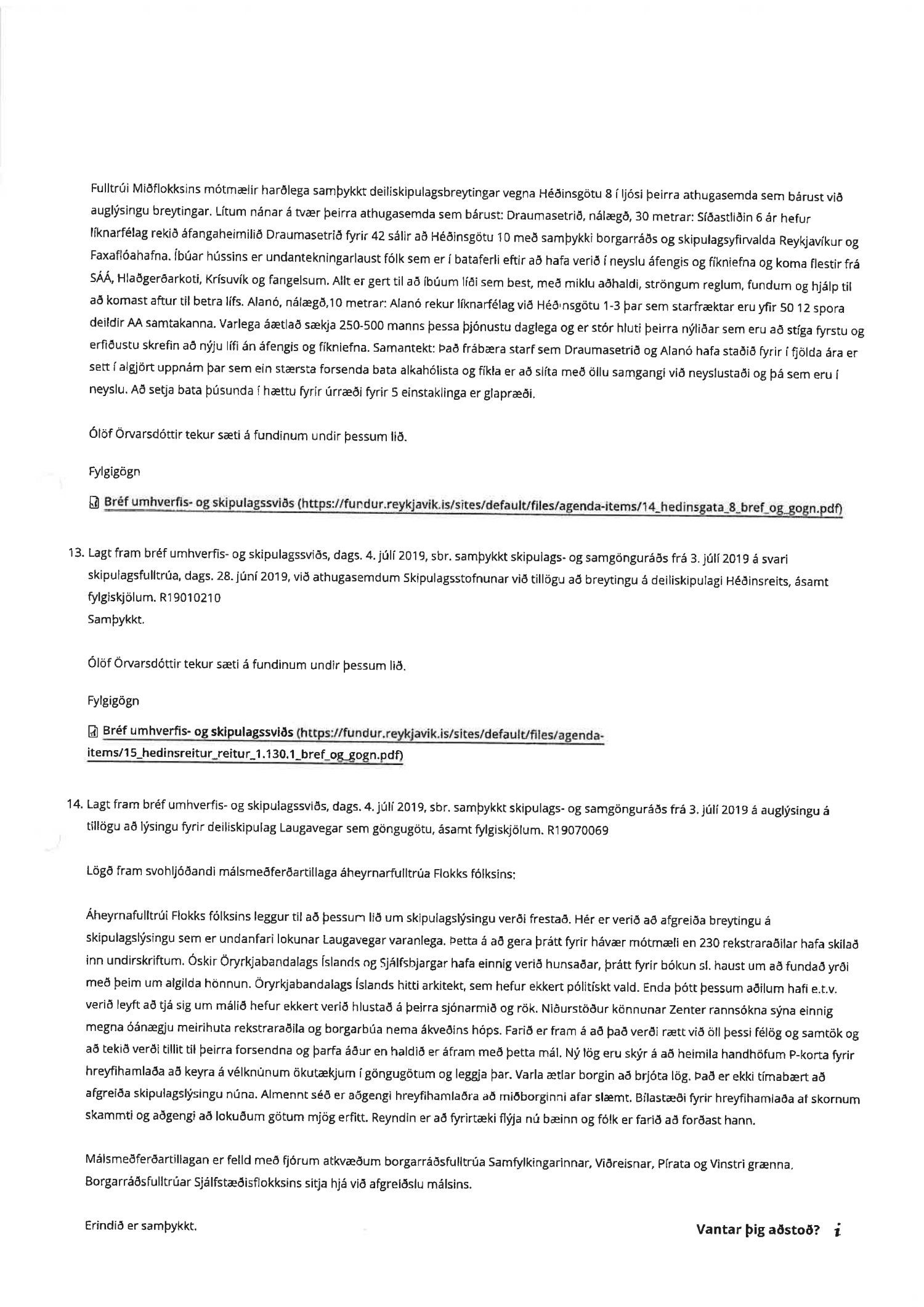 Lagt fram erindi úrskurðarnefndar umhverfis- og auðlindamála dags. 16. ágúst 2019 ásamt kæru dags. 15. ágúst 2019 þar sem kærð er samþykkt skipulags- og samgönguráðs frá 3. júlí 2019 á tillögu að breytingu á deiliskipulagi Köllunarkletts. Einnig er lögð fram umsögn skrifstofu sviðsstjóra dags. 28. október 2019.