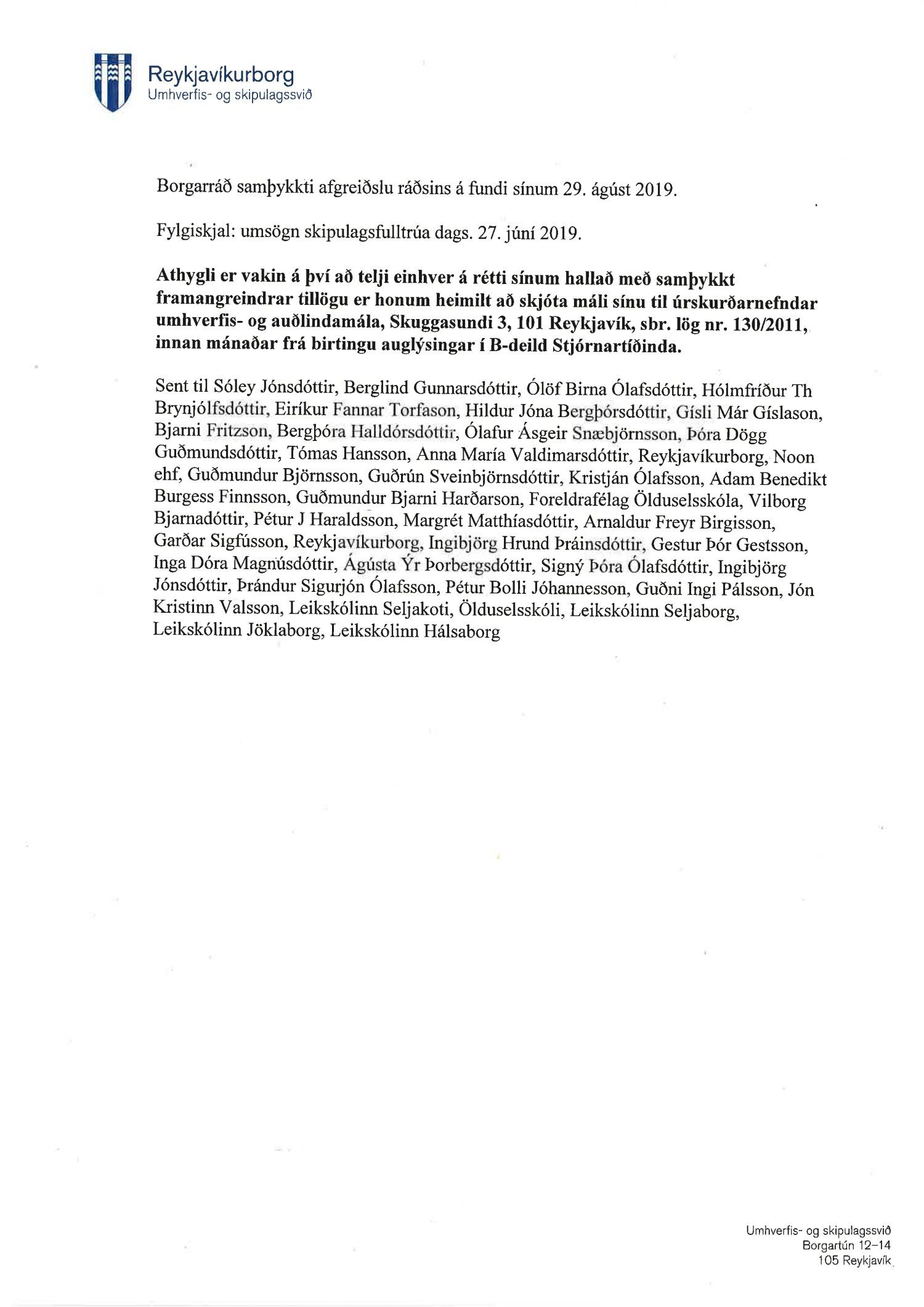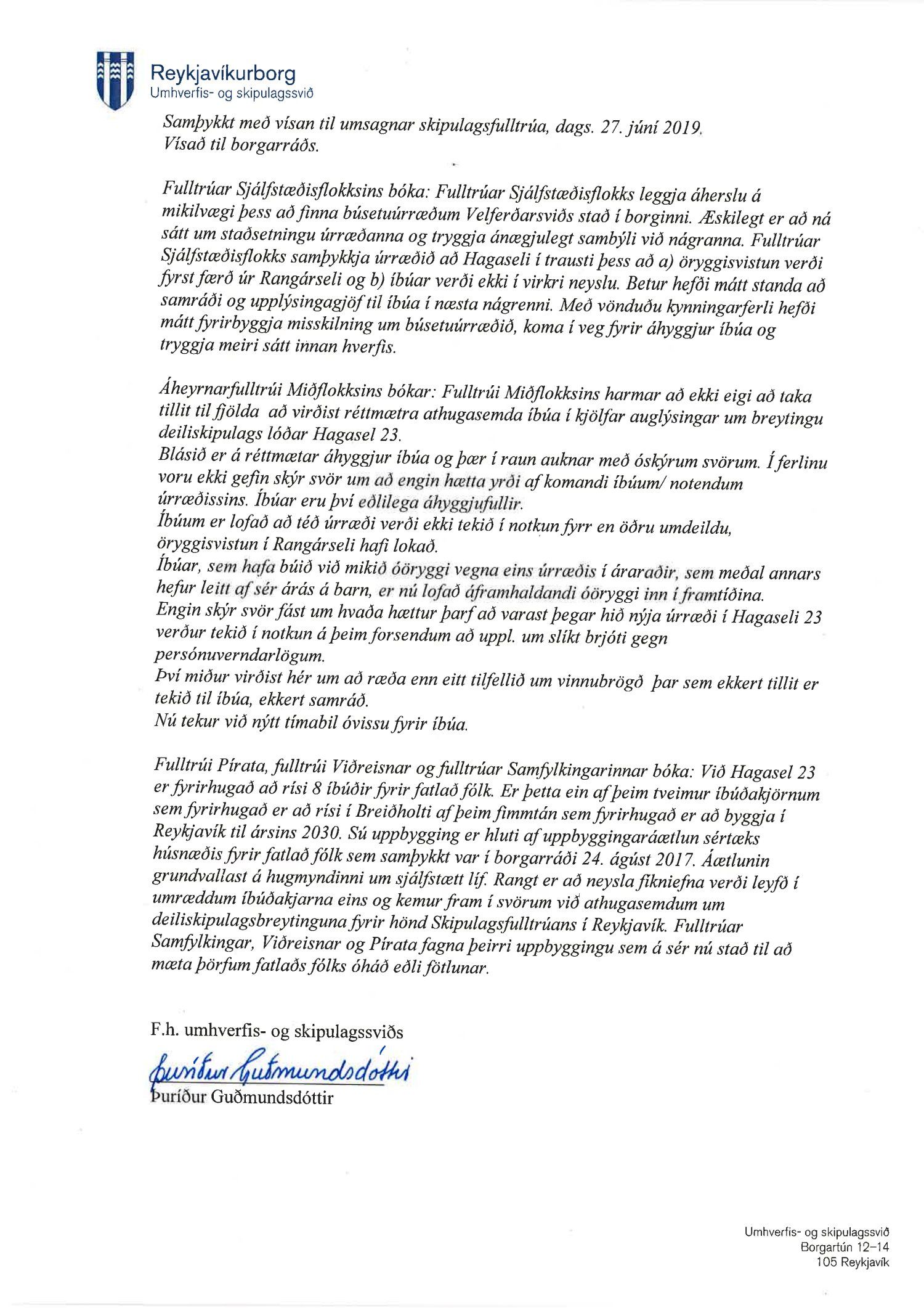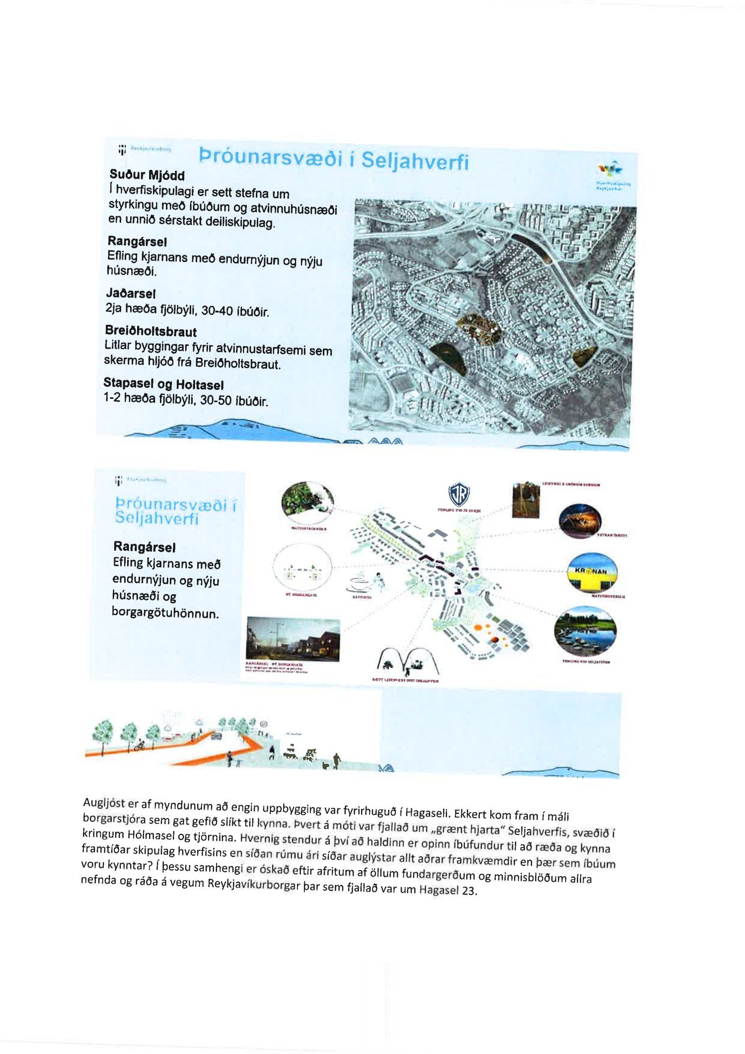 Lagt fram erindi úrskurðarnefnar umhverfis- og auðlindamála dags. 23. september 2019 ásamt kæru dags. 19. september 2019 þar sem kærð er samþykkt skipulags- og samgönguráðs frá 21. ágúst 2019 og borgarráðs frá 29. ágúst 2019 og málsmeðferð Reykjavíkurborgar á breytingu á deiliskipulagi Seljahverfis vegna lóðarinnar nr. 23 við Hagasel. Einnig er lögð fram umsögn skrifstofu sviðsstjóra dags. 25. október 2019.