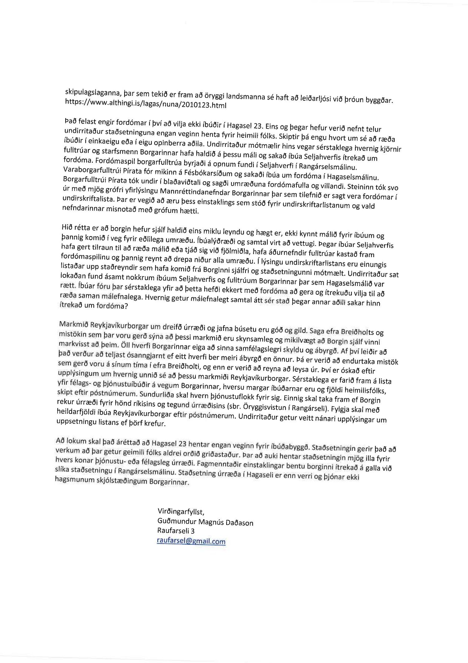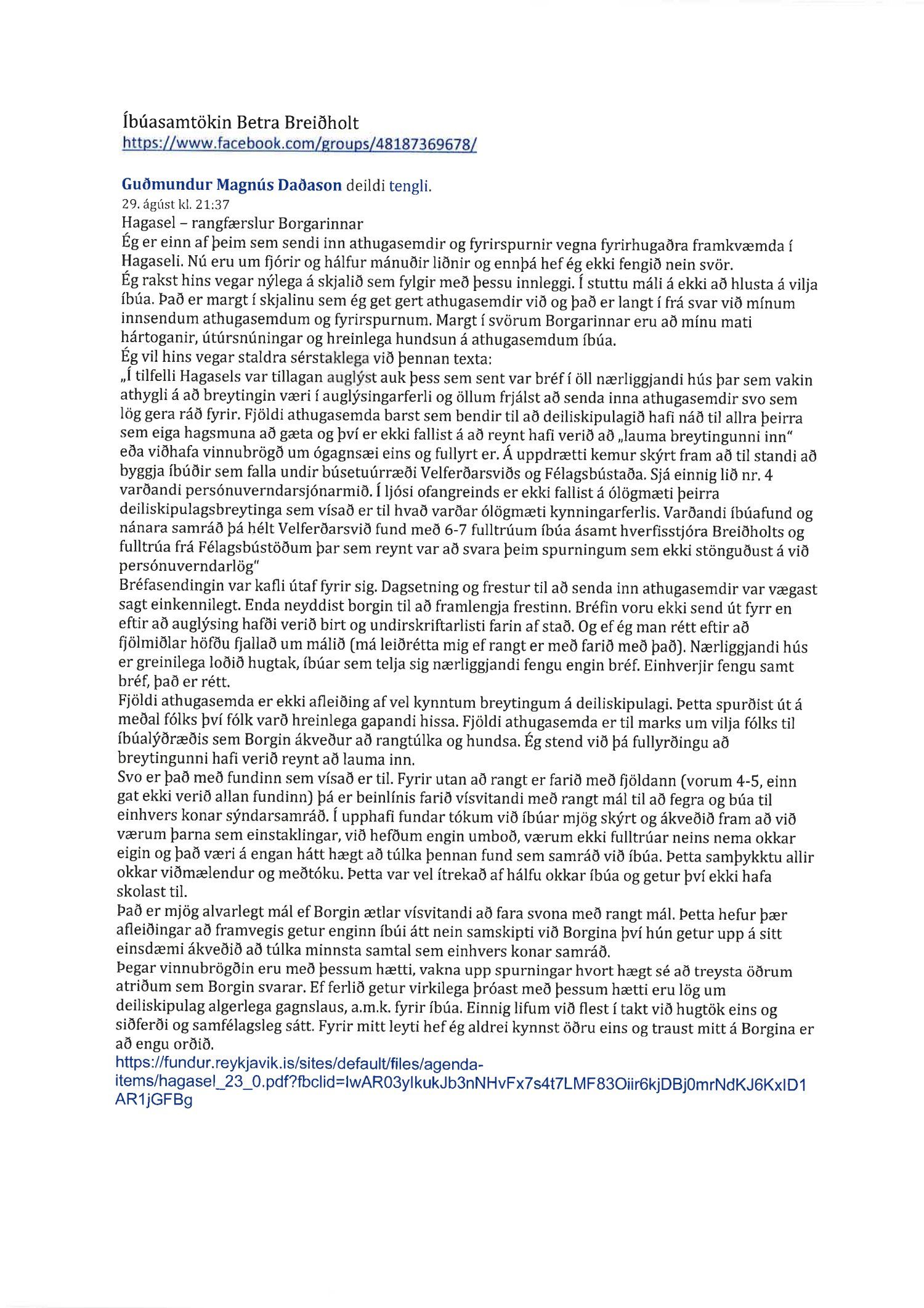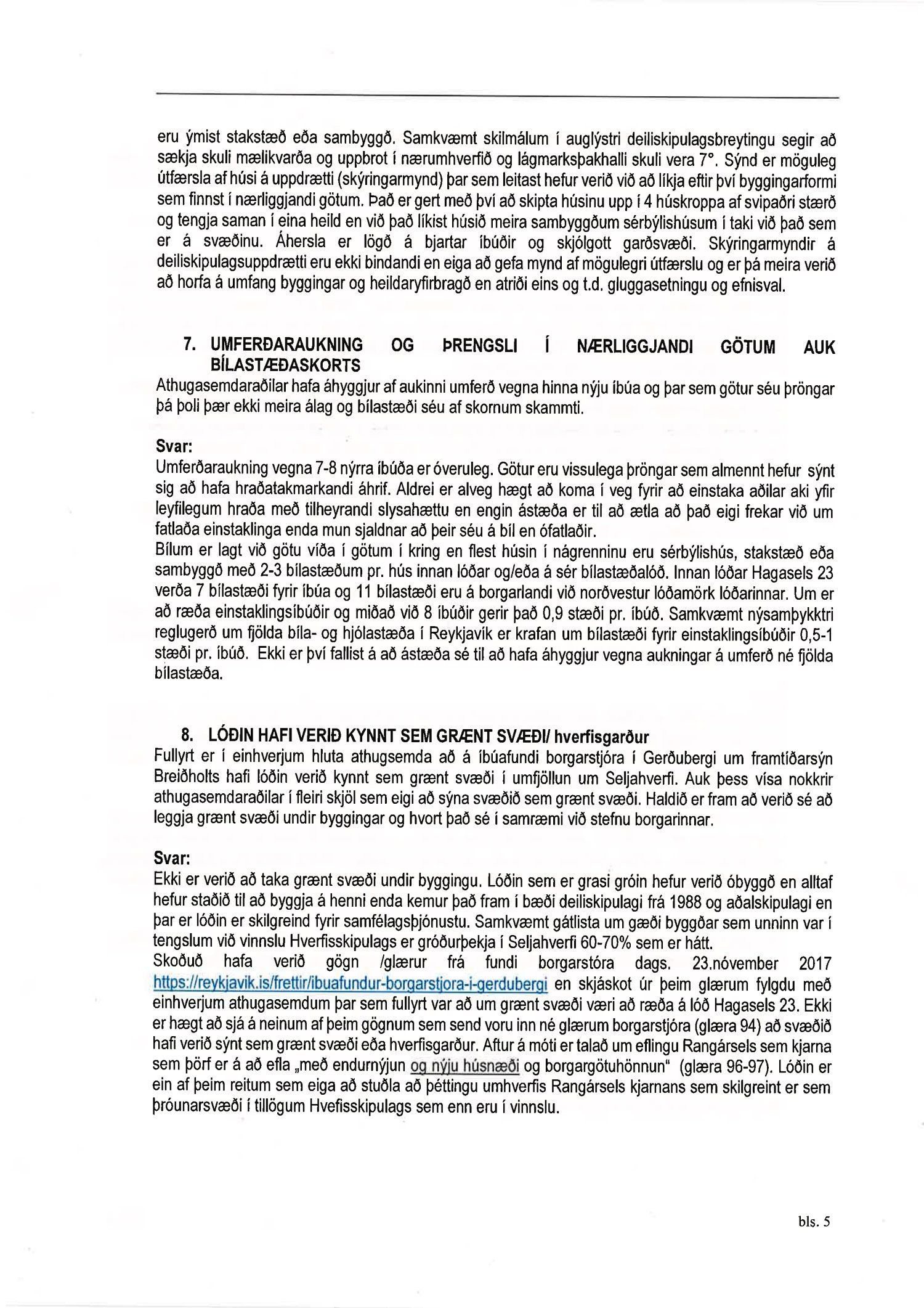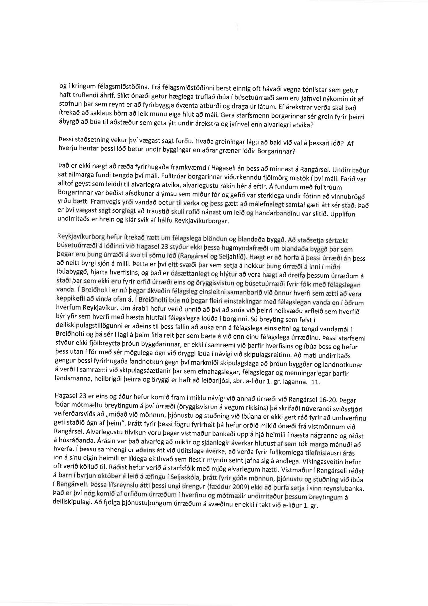 Lagt fram erindi úrskurðarnefnar umhverfis- og auðlindamála dags. 23. september 2019 ásamt kæru dags. 19. september 2019 þar sem kærð er samþykkt skipulags- og samgönguráðs frá 21. ágúst 2019 og borgarráðs frá 29. ágúst 2019 og málsmeðferð Reykjavíkurborgar á breytingu á deiliskipulagi Seljahverfis vegna lóðarinnar nr. 23 við Hagasel. Einnig er lögð fram umsögn skrifstofu sviðsstjóra dags. 25. október 2019.