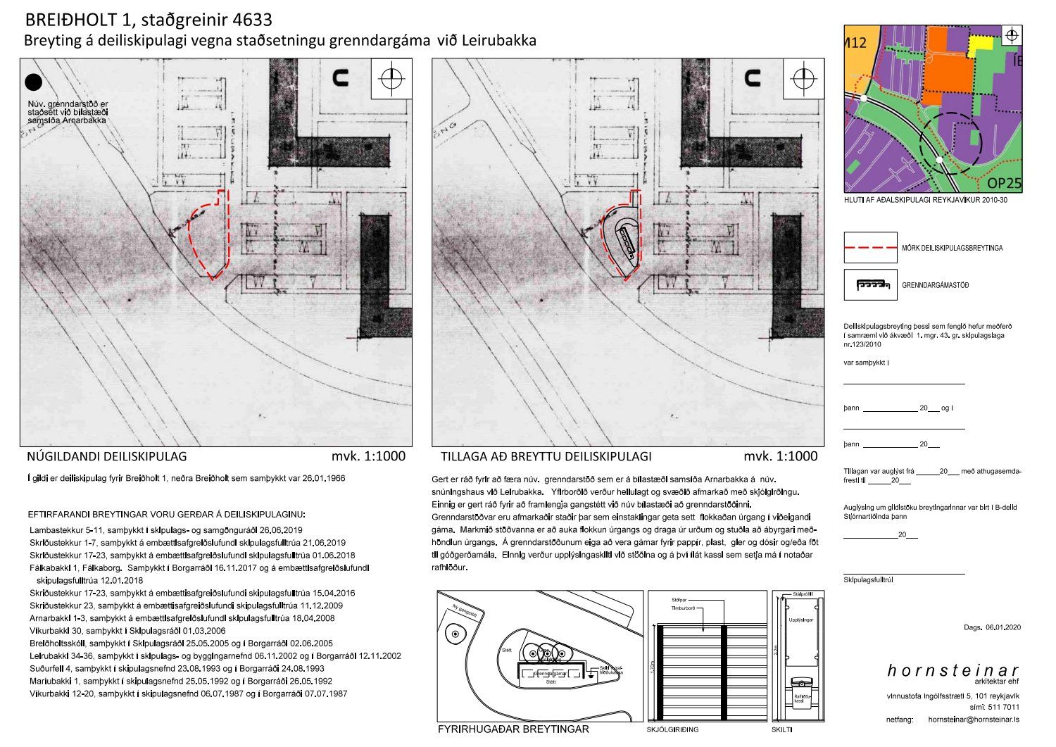 Lögð fram tillaga skrifstofu framkvæmda og viðhalds varðandi breytingu á deiliskipulagi Breiðholts 1, dagsett 06.01.2020. Í breytingunni felst að færa núverandi grenndarstöð sem er á bílastæði samsíða Arnarbakka á núverandi snúningshaus við Leirubakka, samkvæmt uppdr.