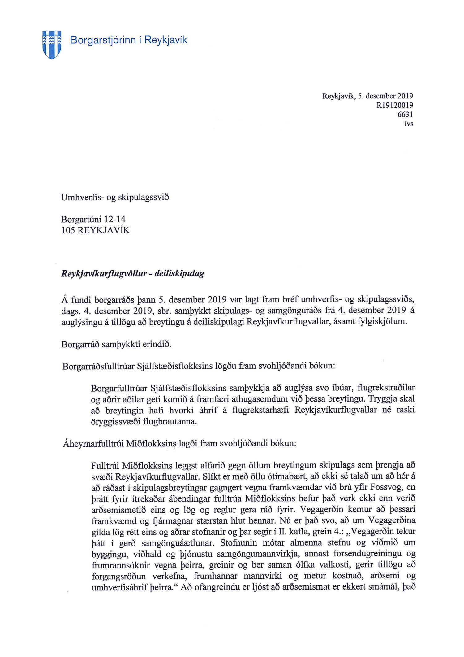 Bréf borgarstjóra - Reykjavíkurflugvöllur