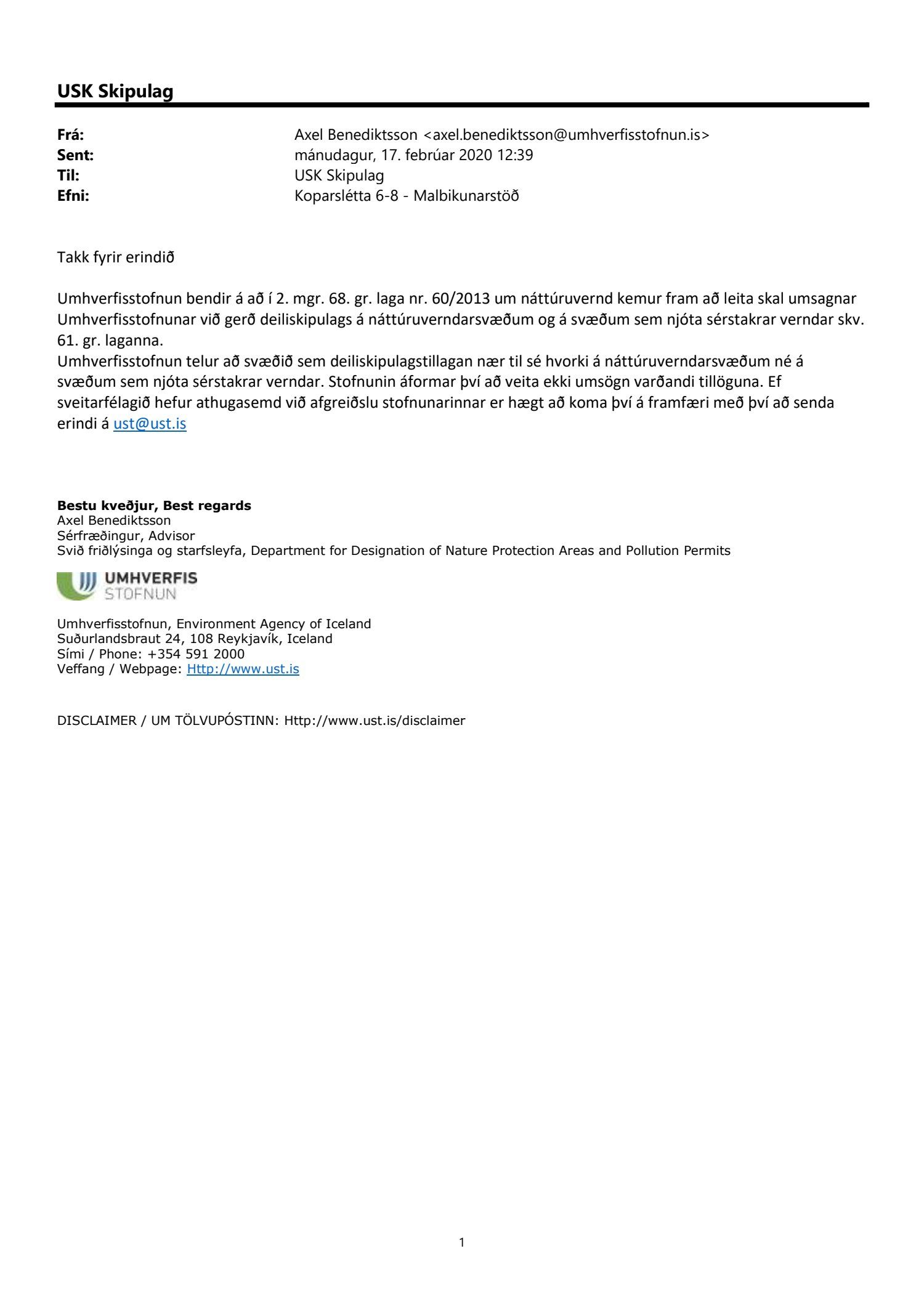 Samþykkt sbr. 3. mgr. 41. gr. skipulagslaga nr. 123/2010.