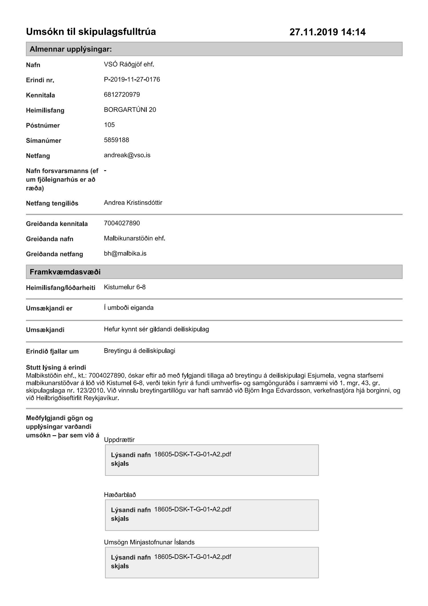 Að lokinni auglýsingu er lögð fram að nýju umsókn