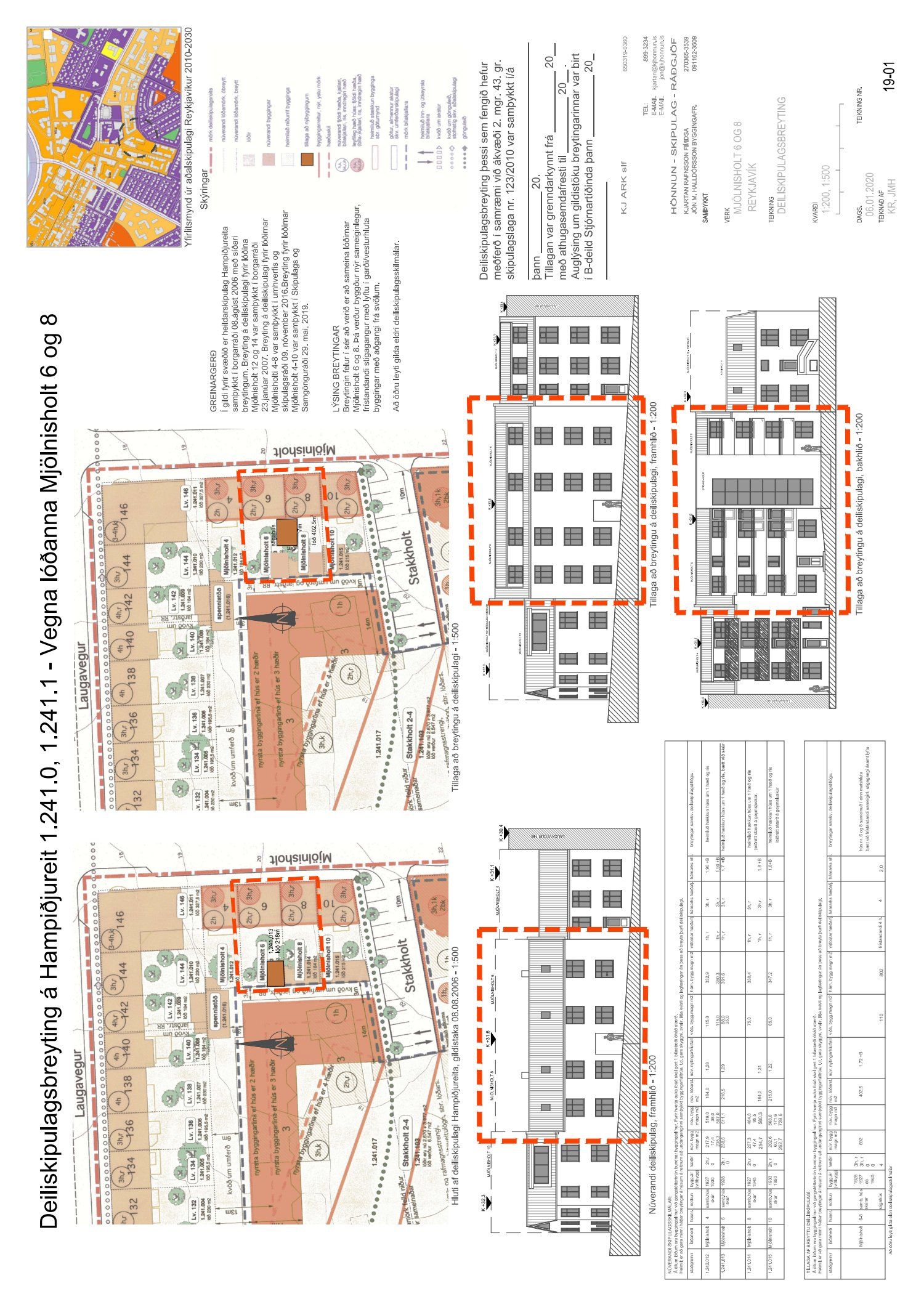 Lögð fram umsókn Kjartans Hafsteins Rafnssonar dags. 7. janúar 2020 varðandi breytingu á deiliskipulagi Hampiðjureits vegna lóðanna nr. 6 og 8 við Mjölnisholt. Í breytingunni felst að sameina lóðirnar og gera nýjan sameiginlegan, frístandandi stigagang með lyftu í garði/vesturhluta byggingar með aðgangi frá svölum, samkvæmt uppdr. K.J.