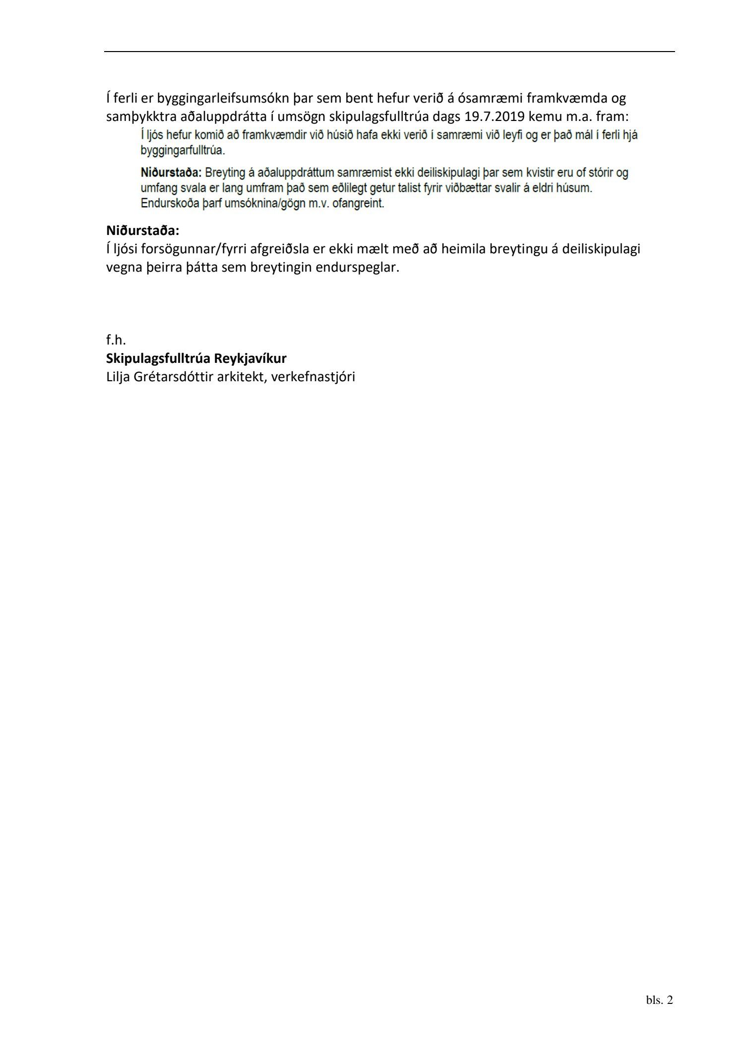 dags. 6. janúar 2020. Einnig er lögð fram umsögn skipulagsfulltrúa dags. 17. janúar 2020.
