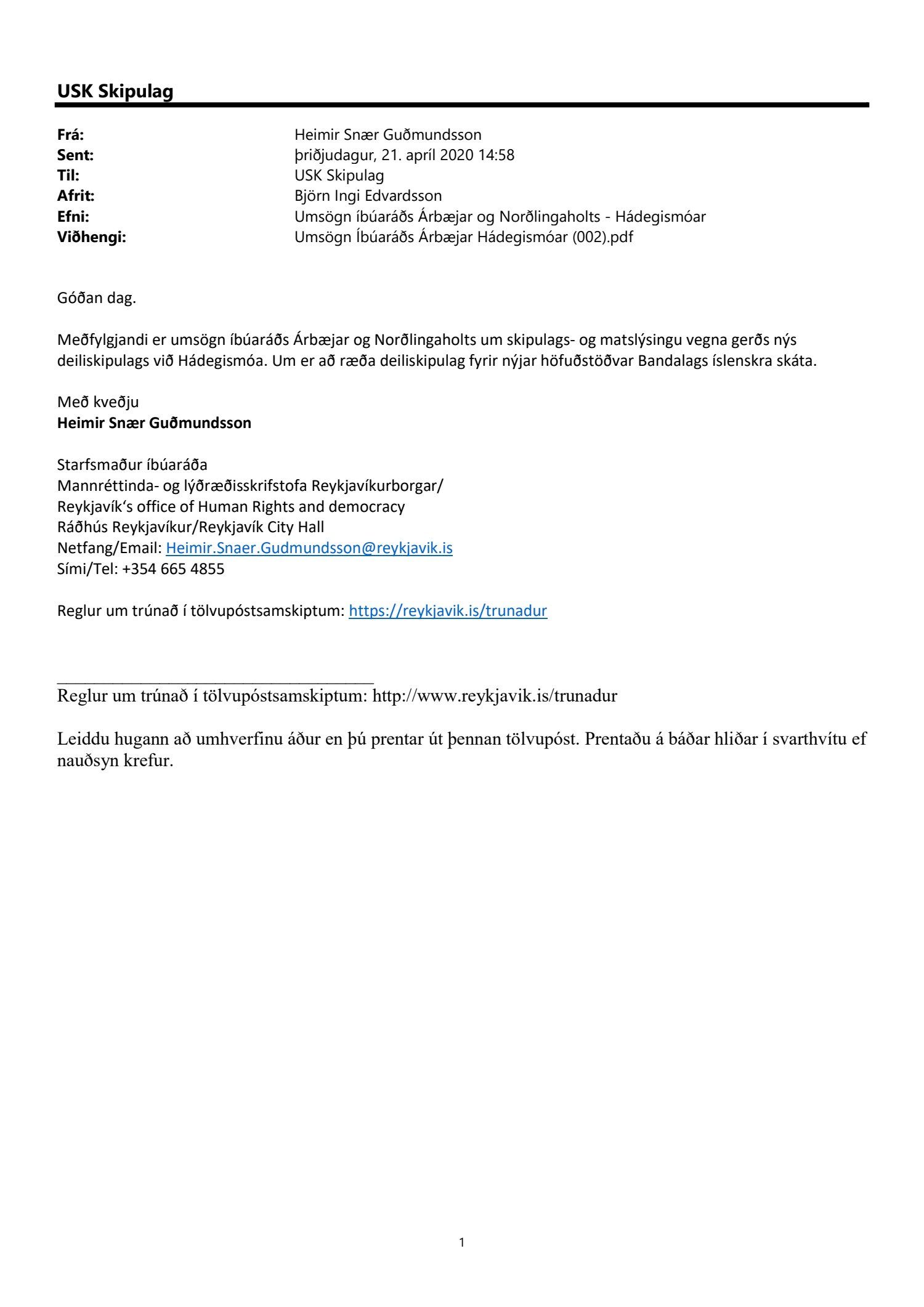 Að lokinni kynningu er lögð er fram að nýju umsókn f.h. Bandalags íslenskra skáta, dags. 22. janúar, ásamt skipulags- og matslýsingu ódags. vegna gerðs nýs deiliskipulags við Hádegismóa. Um er að ræða deiliskipulag fyrir nýjar höfuðstöðvar Bandalags íslenskra skáta. Eftirtaldir sendu inn athugasemdir/umsögn: Sigrún Helgadóttir og Ólafur S. Andrésson dags. 13. apríl 2020, Skipulagsstofnun dags. 8. apríl 2020 og íbúaráð Árbæjar og Norðlingaholts dags. 21. apríl 2020.