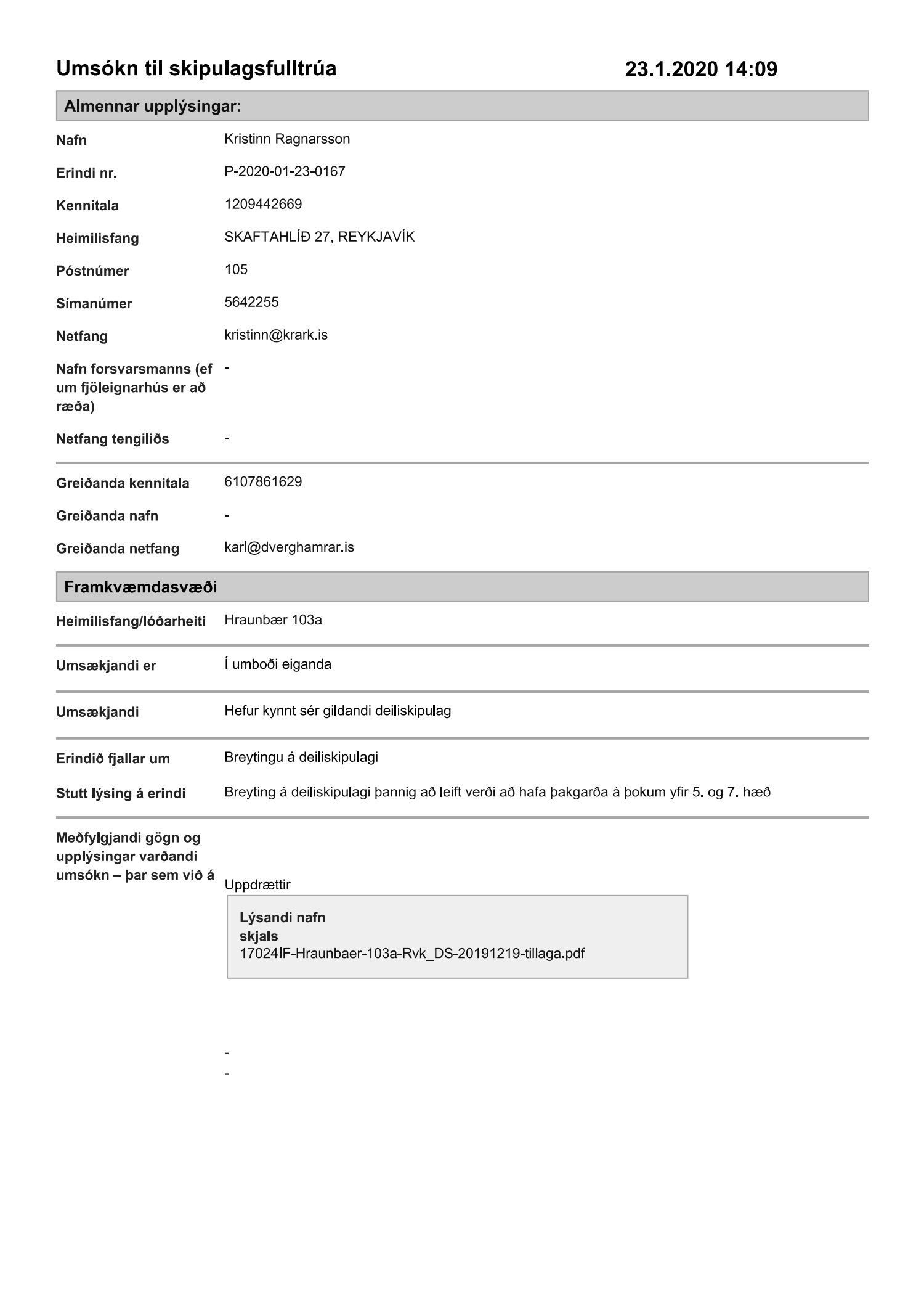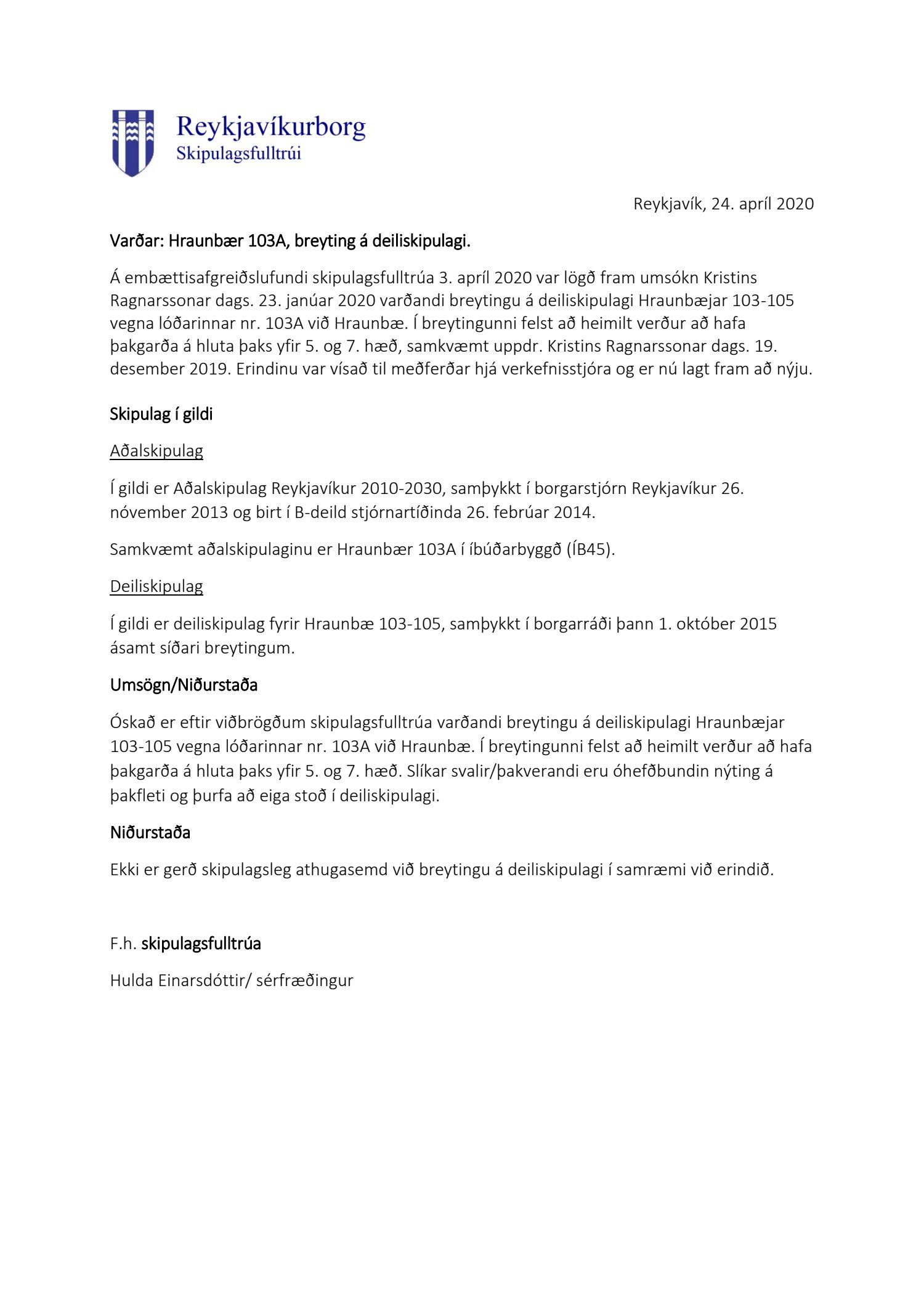 Samþykkt að falla frá kynningu þar sem breyting á deiliskipulagi varðar ekki hagsmuni annarra en umsækjanda með vísan til 2. ml. 3. mgr. 44. gr. skipulagslaga nr. 123/2010. Samþykkt með vísan til a liðar 1. gr. í viðauka 1.1 um fullnaðarafgreiðslur nú skipulags- og samgönguráðs án staðfestingar borgarráðs.