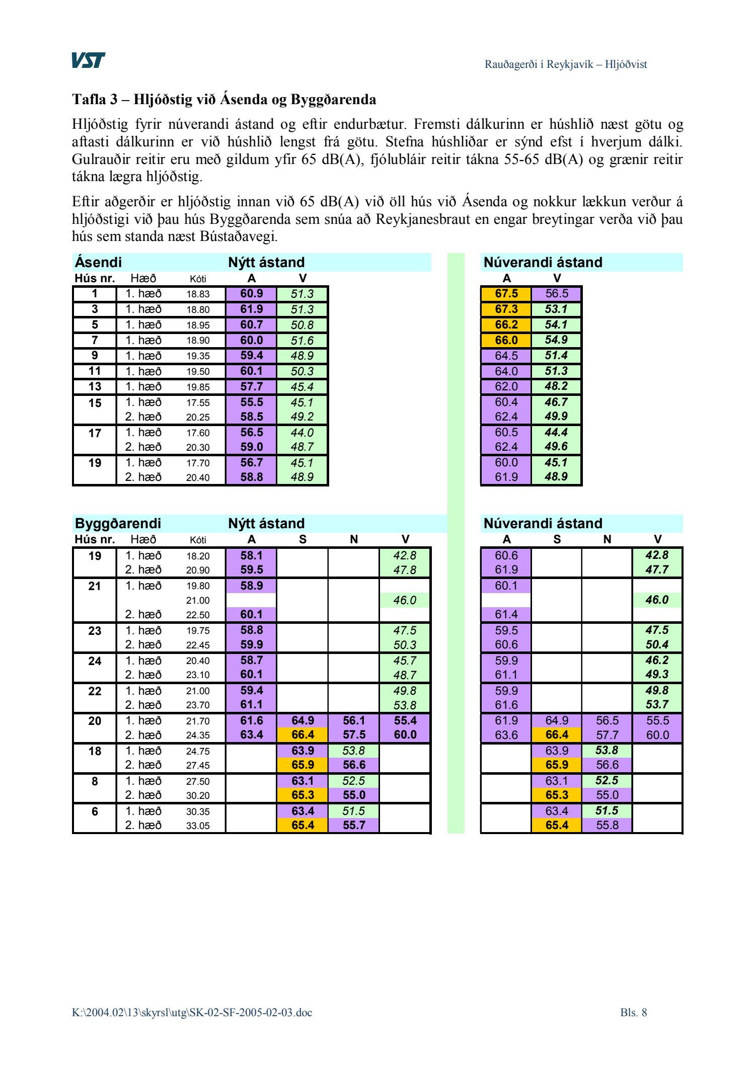 Jafnframt er lagt fram fylgiskjal með þremur sneiðmyndum í hljóðvegg og lóðir Ásenda nr. 1, 3 og 5 dags. 29. janúar 2020, hljóðvistarskýrsla Verkfræðistofu Sigurðar Thoroddsen hf. dags. í febrúar 2005 og hljóðkort (dynlínukort) Mannvits dags. í nóvember 2019.