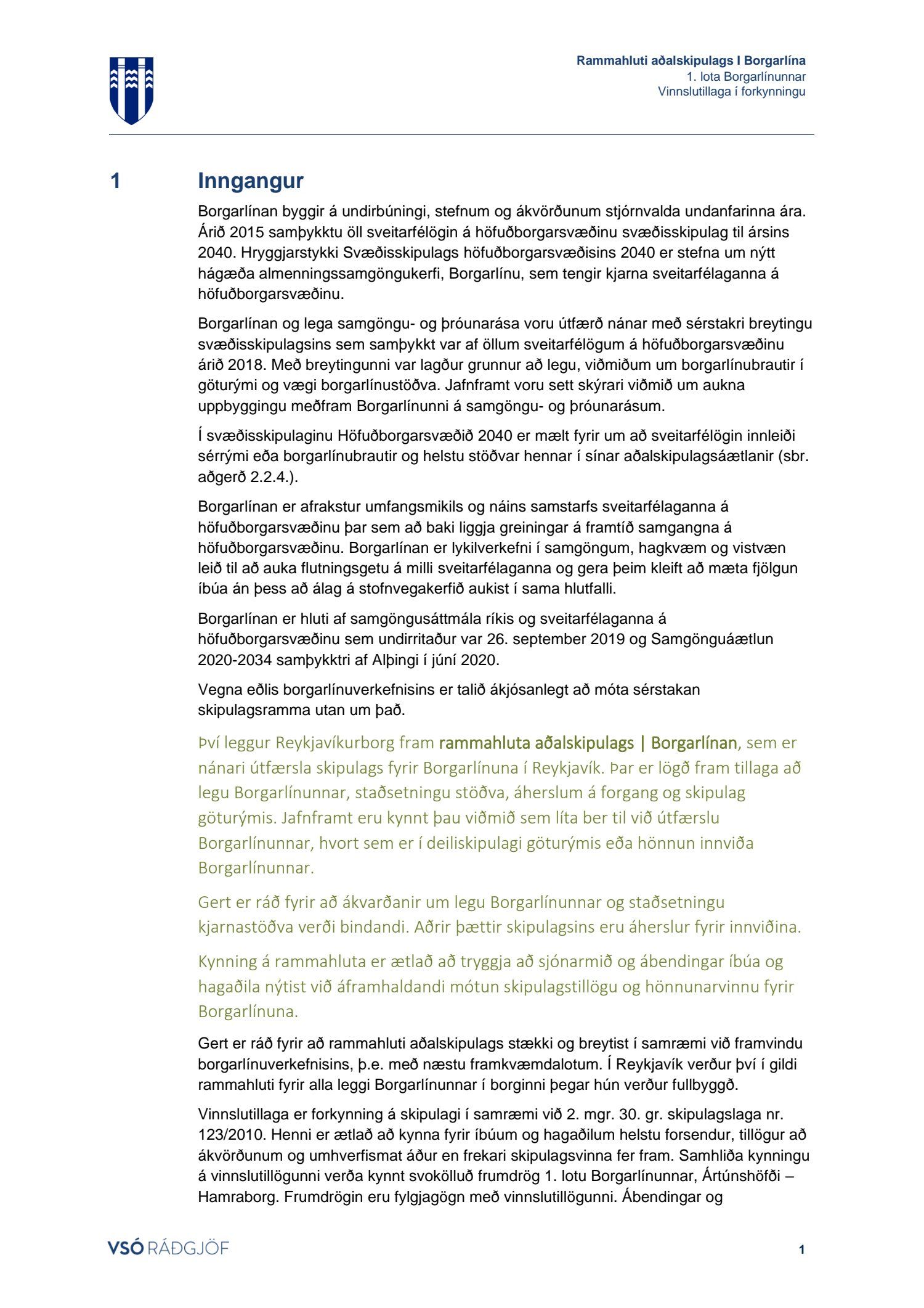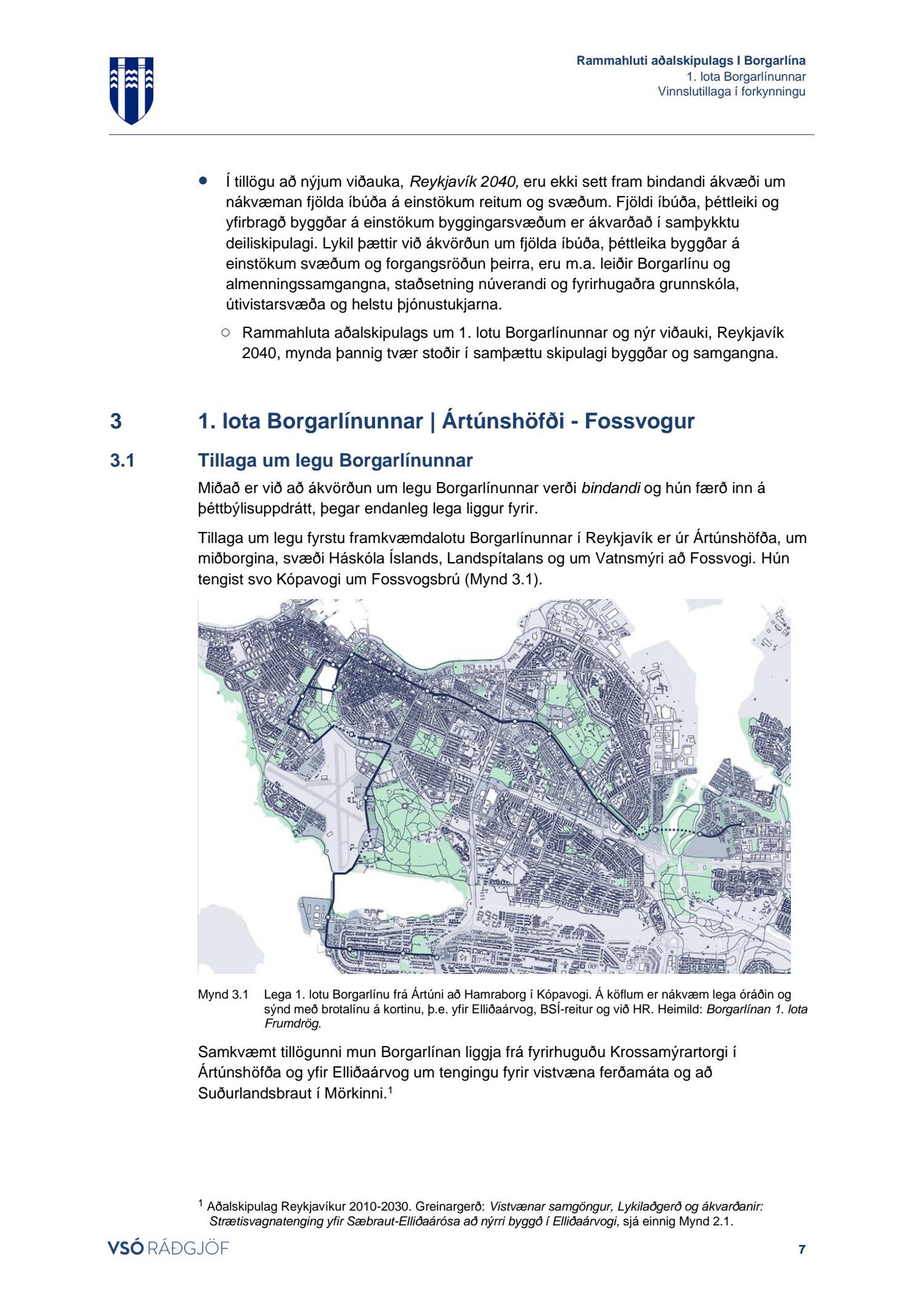 Lögð fram tillaga umhverfis- og skipulagssviðs, ásamt umhverfisskýrslu sbr. lög nr. 105/2006 um umhverfismat áætlana, að breytingu á Aðalskipulagi Reykjavíkur 2010-2030 vegna fyrstu lotu Borgarlínu, sem liggur á milli Ártúnshöfða í Reykjavík og Hamraborgar í Kópavogi. Eftirfarandi gögn eru lögð fram: greinargerðin Rammahluti Aðalskipulags Reykjavíkur 2010-2030/40, Borgarlínan í Reykjavík. 1. lota Borgarlínunnar | Ártún - Fossvogsbrú og vinnslutillaga í forkynningu, unnin af VSÓ-ráðgjöf, dags. janúar 2021. Einnig lagt fram trúnaðarmerkt fylgiskjal Borgarlína - 1. lota, frumdrög og forsendur. Forsendur og frumdrög, dags. janúar 2021.