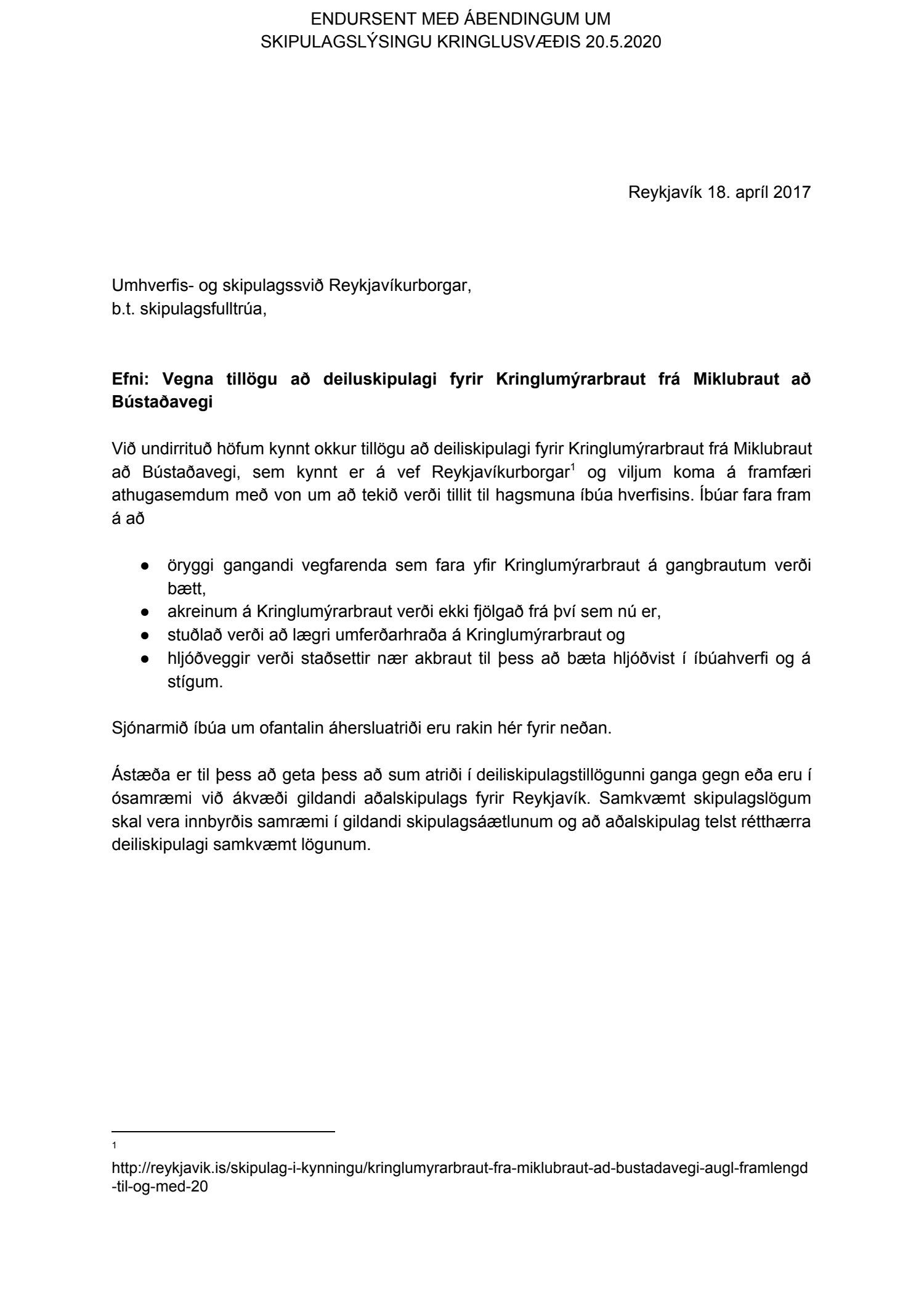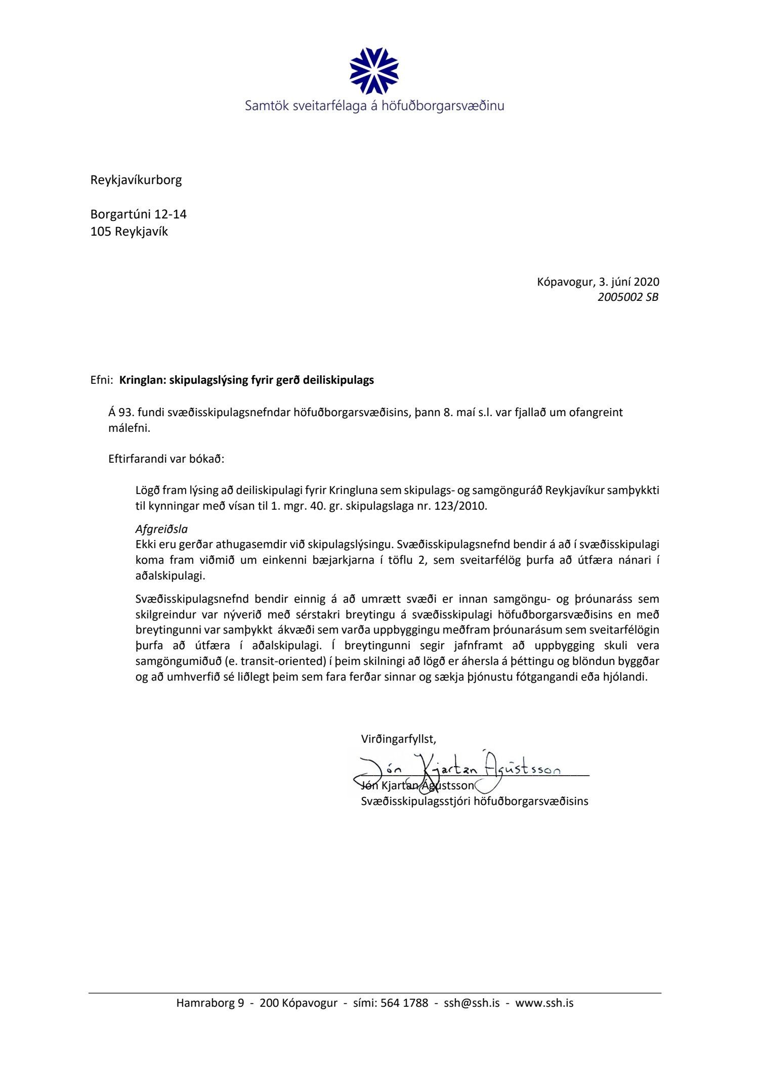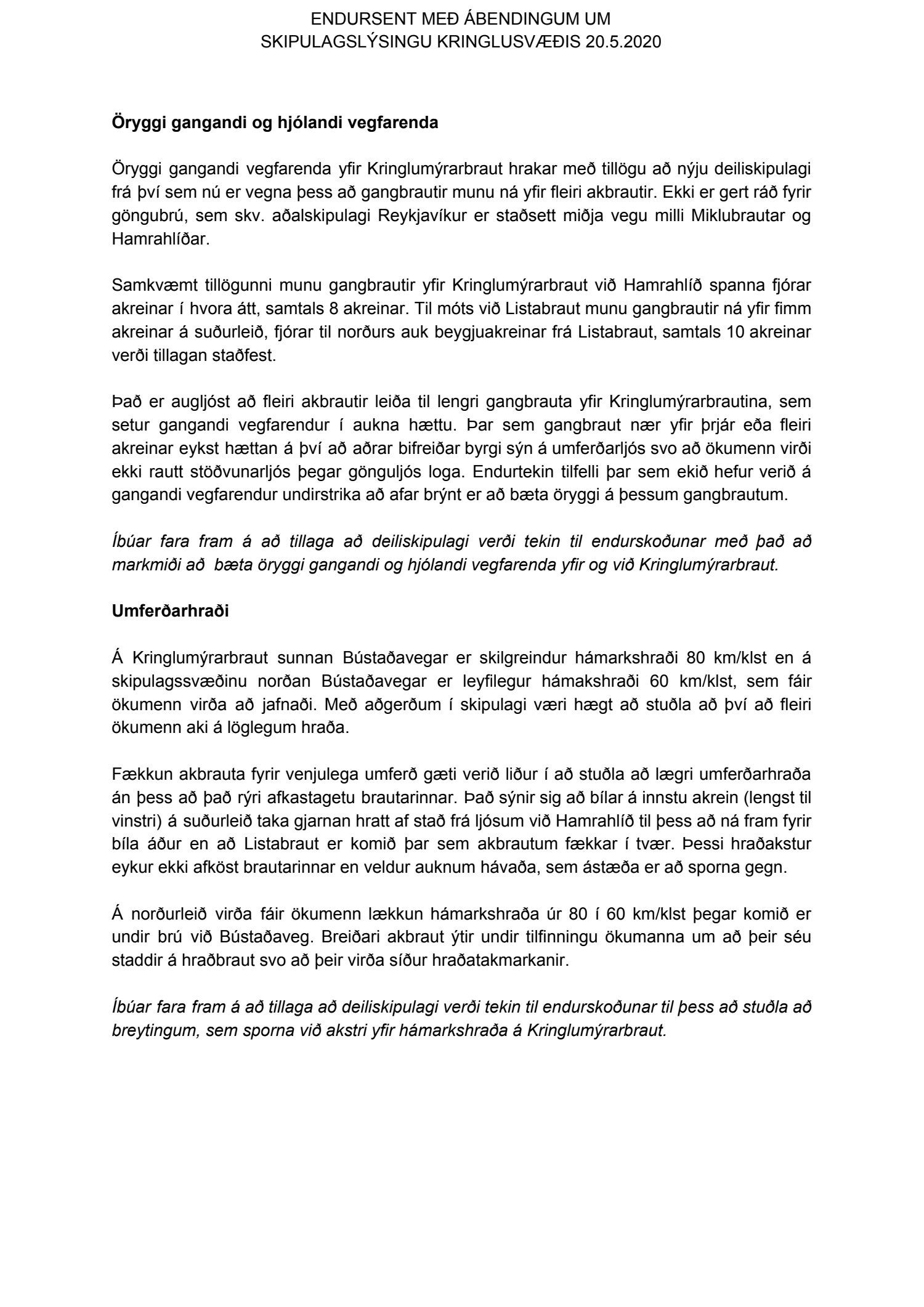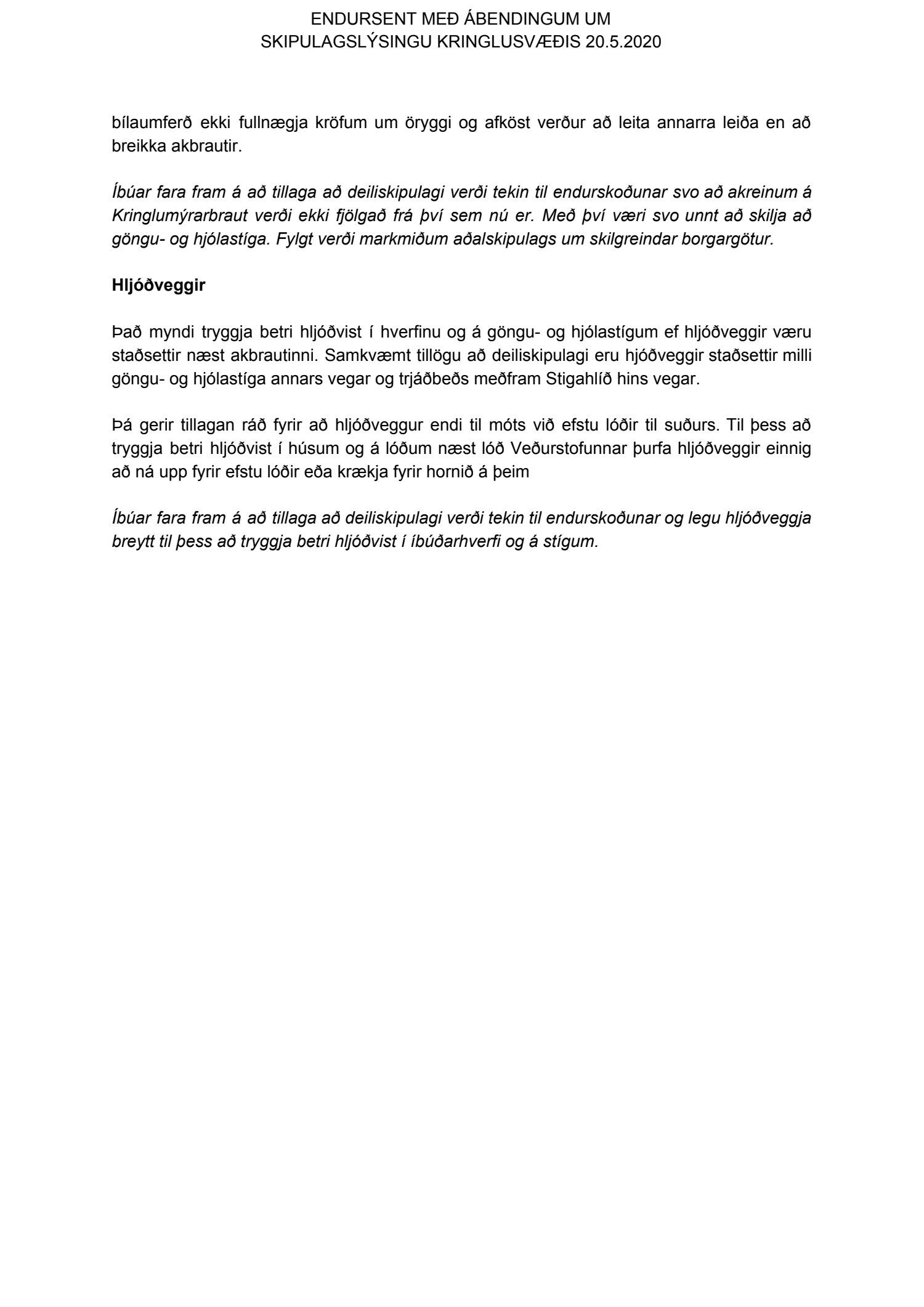 Að lokinni kynningu er lögð fram að nýju skipulagslýsing, Kanon arkitekta og VSÓ ráðgjafar dags 18. mars 2020, vegna skipulagsgerðar og umhverfismats "Kringlusvæðisins". Kynning stóð yfir frá 8. apríl 2020 til og með 20. maí 2020. Eftirtaldir sendu athugasemdir/umsögn: Borgarsögusafn Reykjavíkur dags. 5. maí 2020, Veðurstofa Íslands dags. 12. maí 2020, Minjastofnun Íslands dags. 19. maí 2020, Vegagerðin dags. 19. maí 2020, Finnur Magnússon lögmaður f.h. Hús verslunarinnar sf., Kringlunnar 7 húsfélag og þinglýstra eigendur fasteigna í Kringlunni 7 dags. 19. maí 2020, Jón Ævar Pálmason og Þórhildur Kristinsdóttir dags. 20. maí 2020, íbúaráð Miðborgar og Hlíða dags. 20. maí 2020, María Hjaltalín f.h. íbúasamtaka 3. hverfis dags. 20. maí 2020, Heilbrigðiseftirlit Reykjavíkur dags 20. maí 2020. Veitur dags. 22. maí 2020, íbúaráð Miðborgar og Hlíða dags. 27. maí 2020, íbúaráð Háaleitis- og Bústaðahverfis dags. 29. maí 2020, Svæðisskipulagsnefnd höfuðborgarsvæðisins dags. 3. júní 2020. Einnig er lagður fram tölvupóstur Umhverfisstofnunar dags. 30. apríl 2020. Erindinu var vísað til meðferðar hjá verkefnisstjóra á embættisafgreiðslufundi skipulagsfulltrúa 29. maí 2020 og er nú lagt fram að nýju.