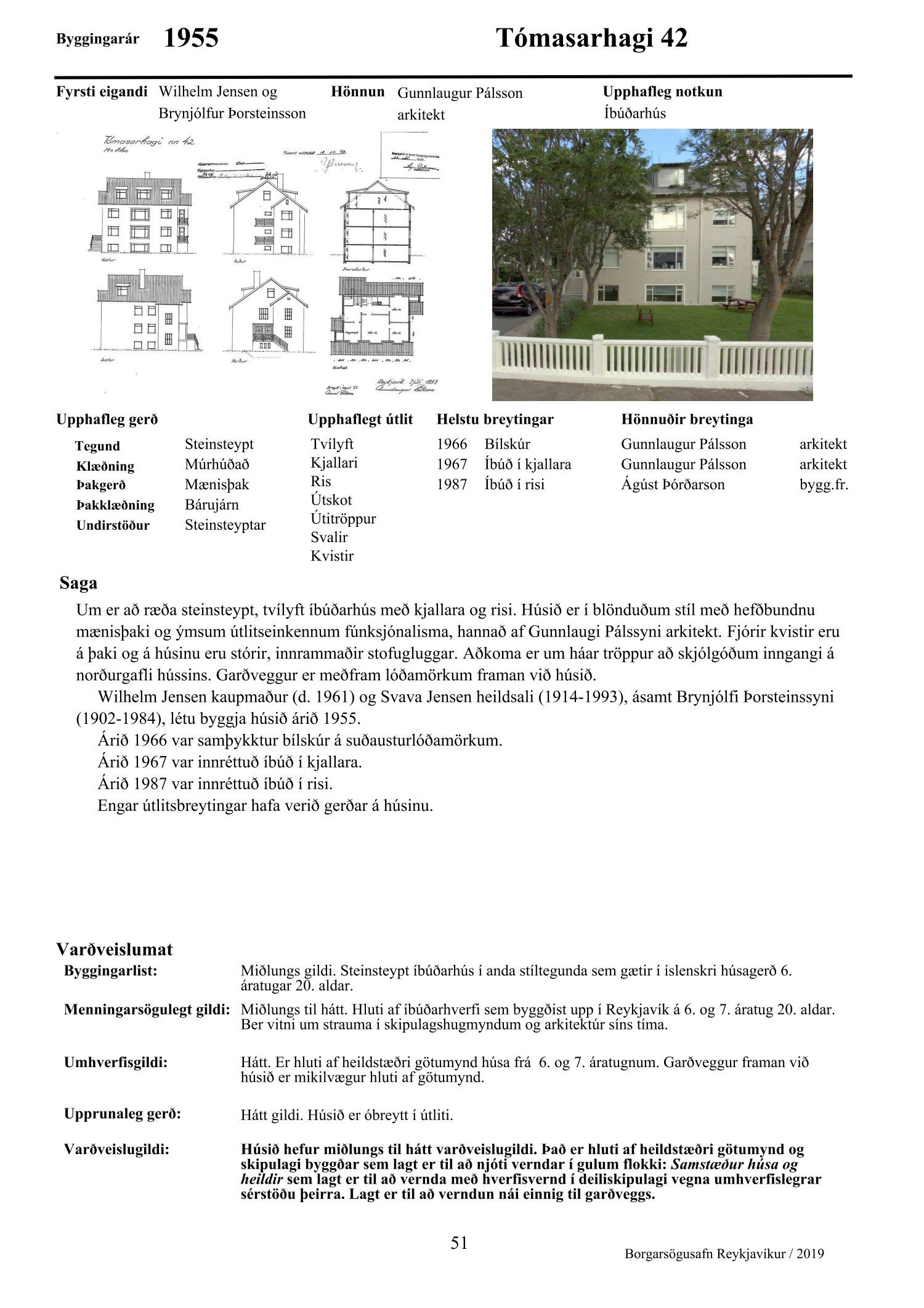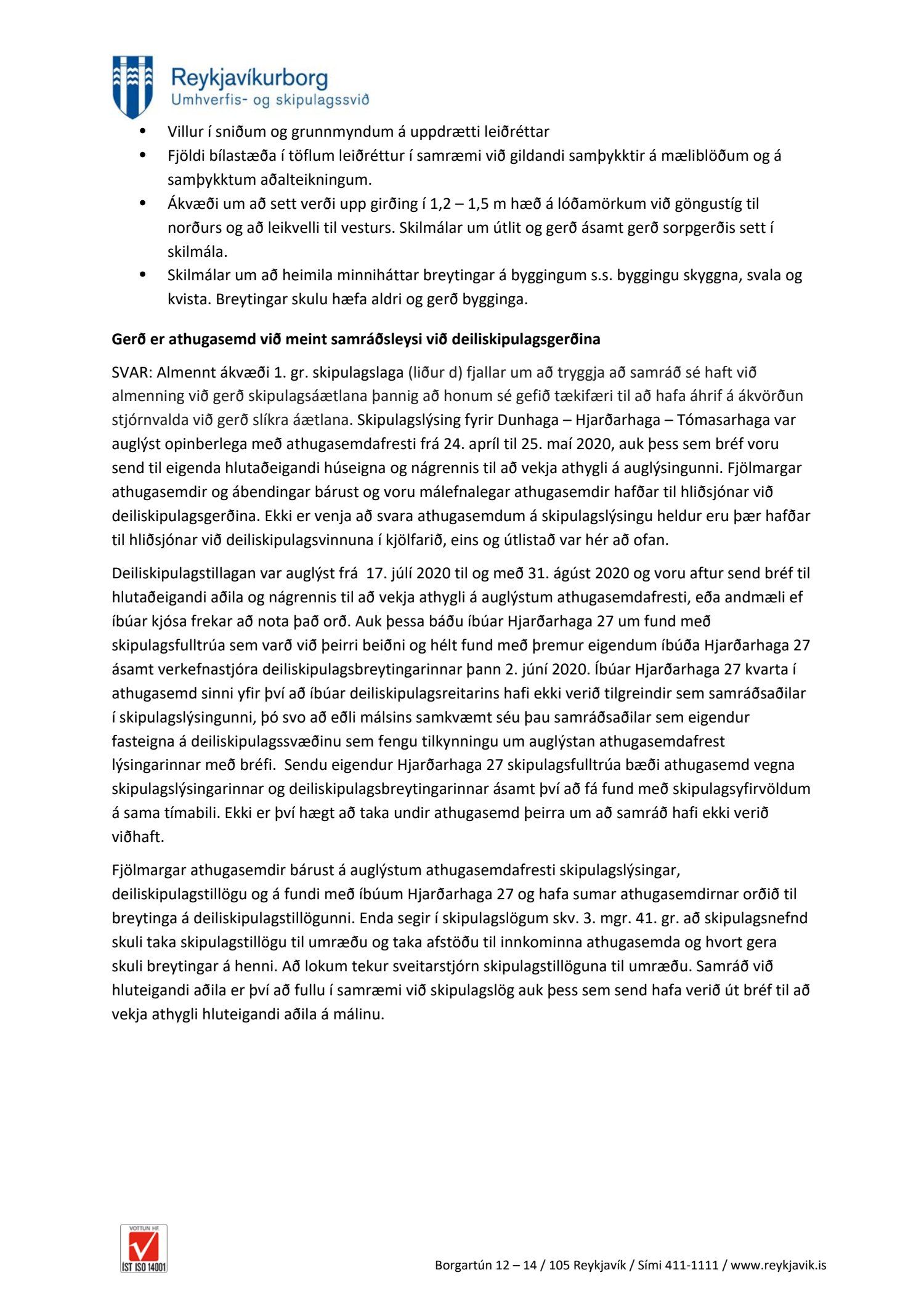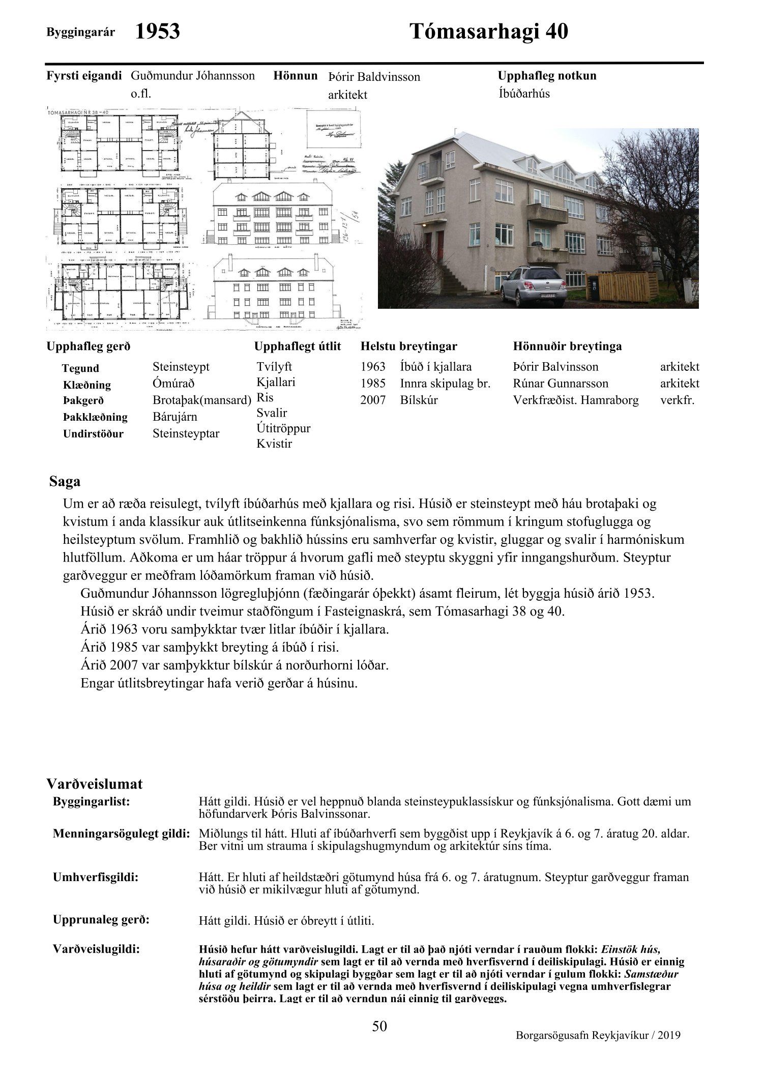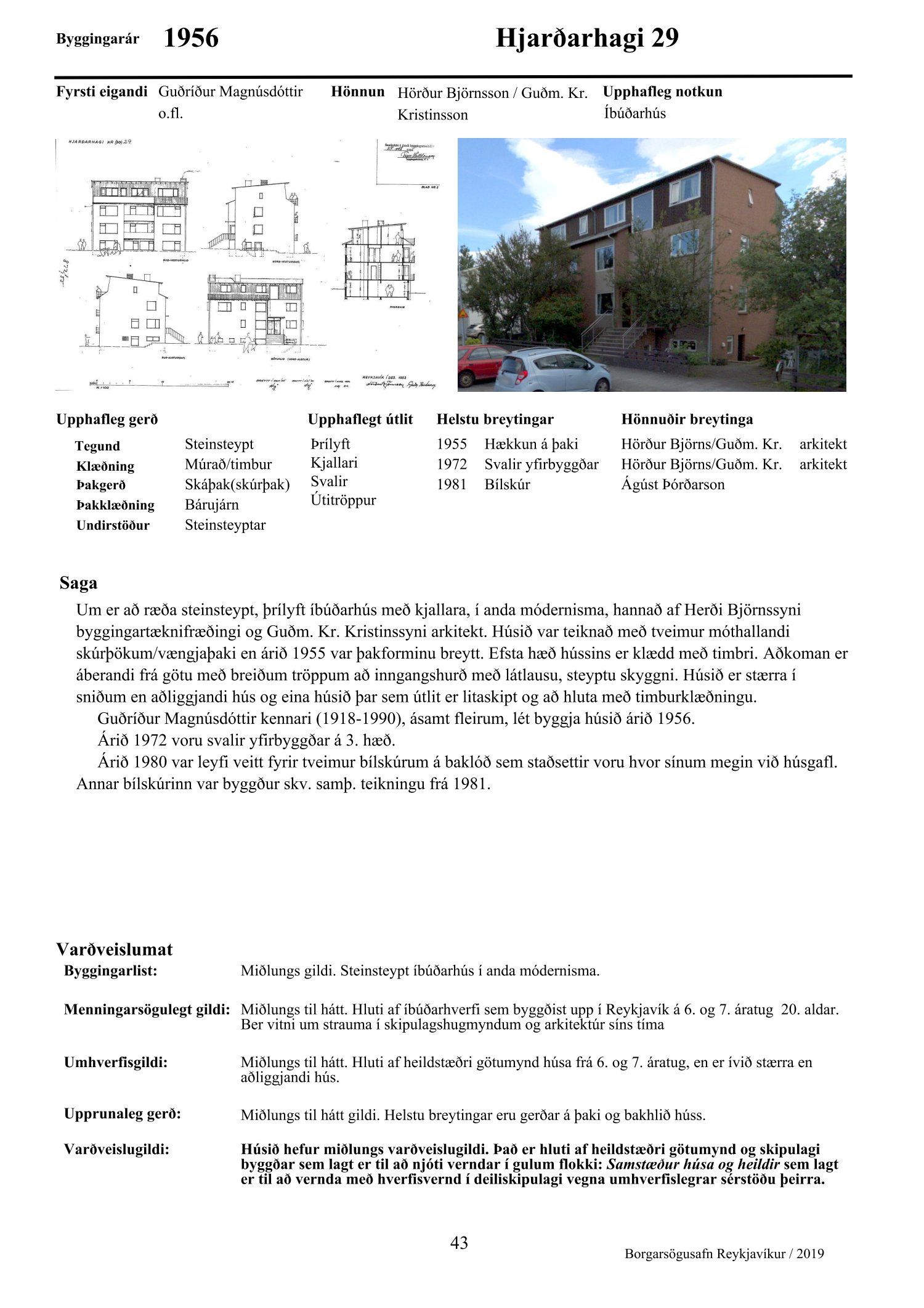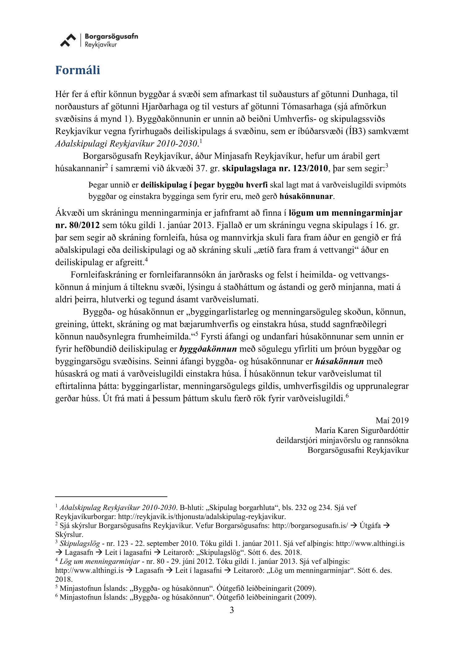 dags. 25. júní 2020. Einnig er lögð fram húsakönnun Borgarsögusafns Reykjavíkur, skýrsla nr. 196 frá 2019. Tillagan var auglýst frá 17. júlí 2020 til og með 31. ágúst 2020. Eftirtaldir sendu athugasemdir: Anna Guðmundsdóttir dags. 20. ágúst 2020, Sigríður Anna Ásgeirsdóttir, Salvör Jónsdóttir, Jón Atli Árnason og Jóhann Friðriksson dags. 28. ágúst 2020, Sólveig Jónsdóttir, Sigurður Á. Þráinsson, Halldór Árnason, Anna Björg Eyjólfsdóttir, Friðrik Árni Halldórsson, Marta María Halldórsdóttir og Ingibjörg Jóna Halldórsdóttir dags. 30. ágúst 2020, Eyvindur Árni Sigurðarson dags. 30. ágúst 2020, Snjólaug Árnadóttir dags. 31. ágúst 2020, Soffía Óladóttir dags. 31. ágúst 2020, Einar Ólafsson dags. 31. ágúst 2020 og Bjarki Már Baxter hjá Málþingi lögmannsstofu f.h. sjálf síns, Einars Ólafssonar, Gunnhildar Stefánsdóttur, Arnars Vilmundarsonar og Signýjar Sifjar Sigurðardóttur dags. 31. ágúst 2020. Einnig er lögð fram umsögn skipulagsfulltrúa dags. 18. sept. 2020.